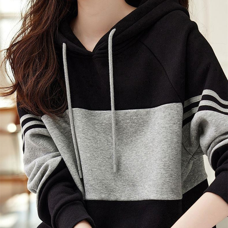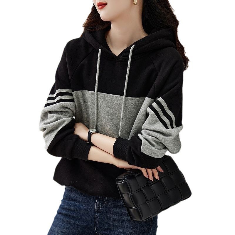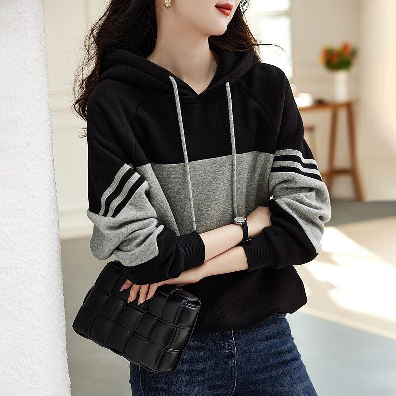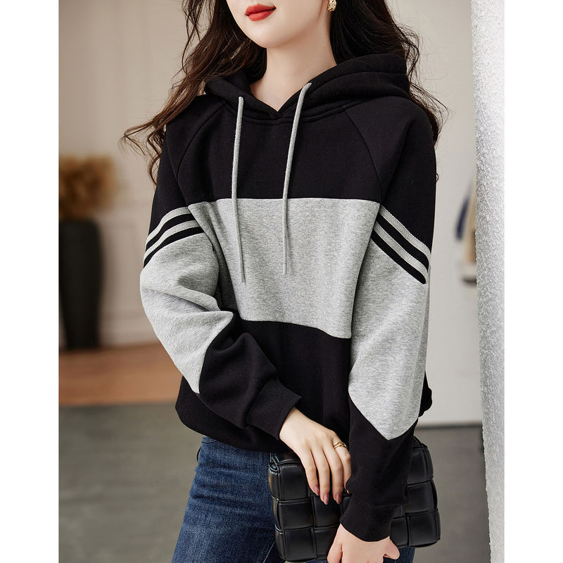 6535 хлопковый свитер с капюшоном женский элегантный пуловер с капюшоном в европейском и американском стиле на весну осень и зиму, Новый Свободный пуловер в полоску с капюшоном
