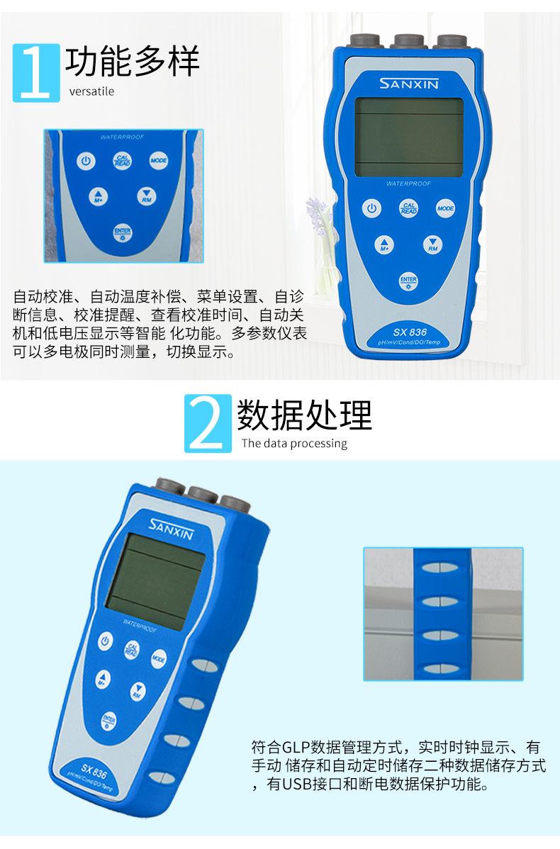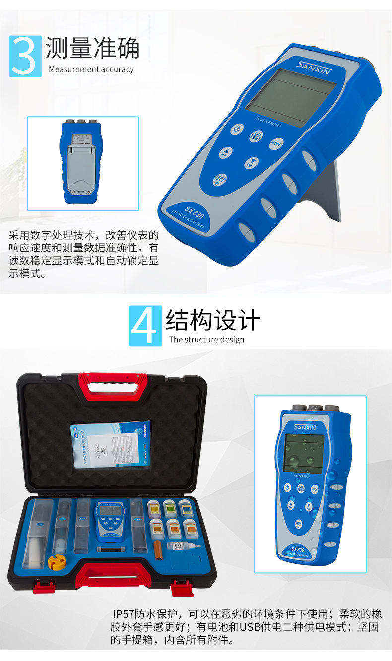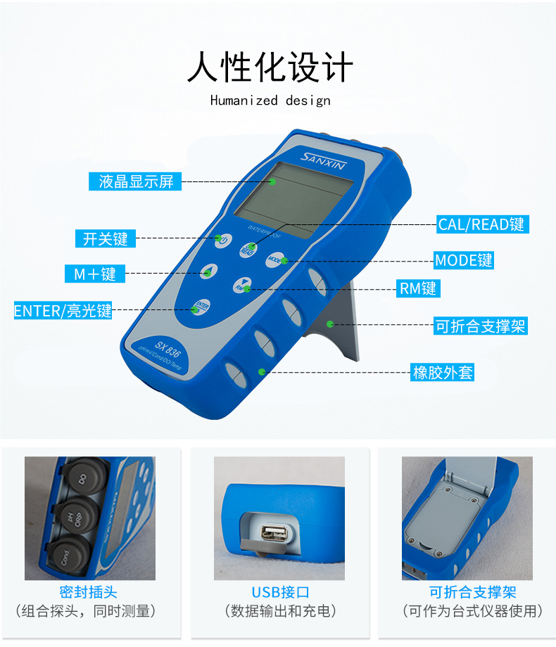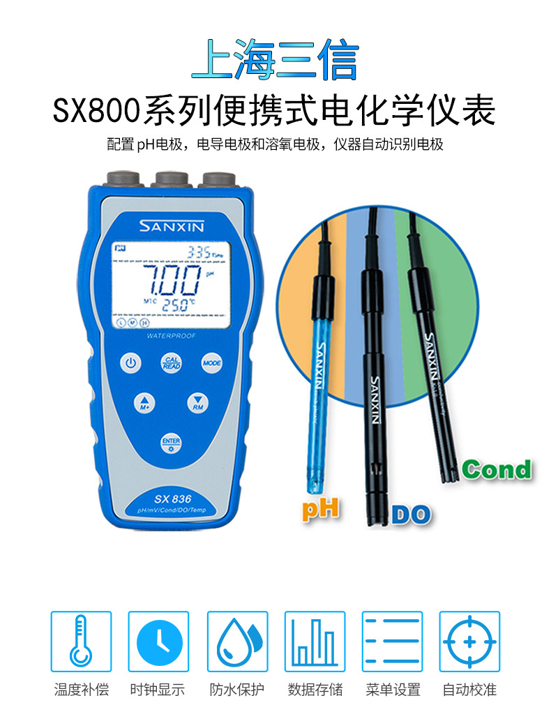 Портативный Измеритель pH/проводимости/растворенного кислорода Shanghai Sanxin SX836, многопараметрический прибор для анализа качества воды