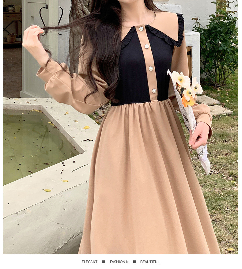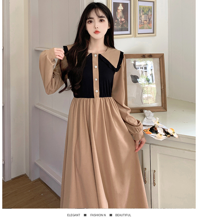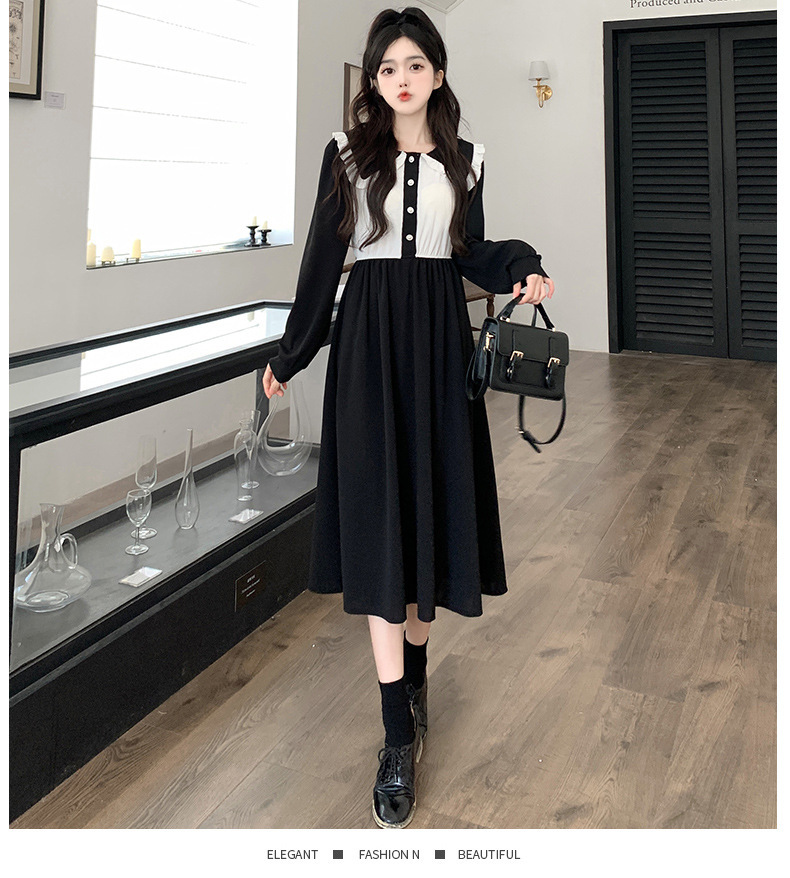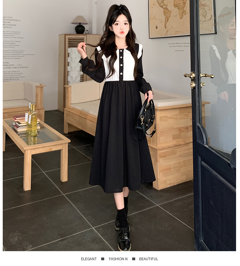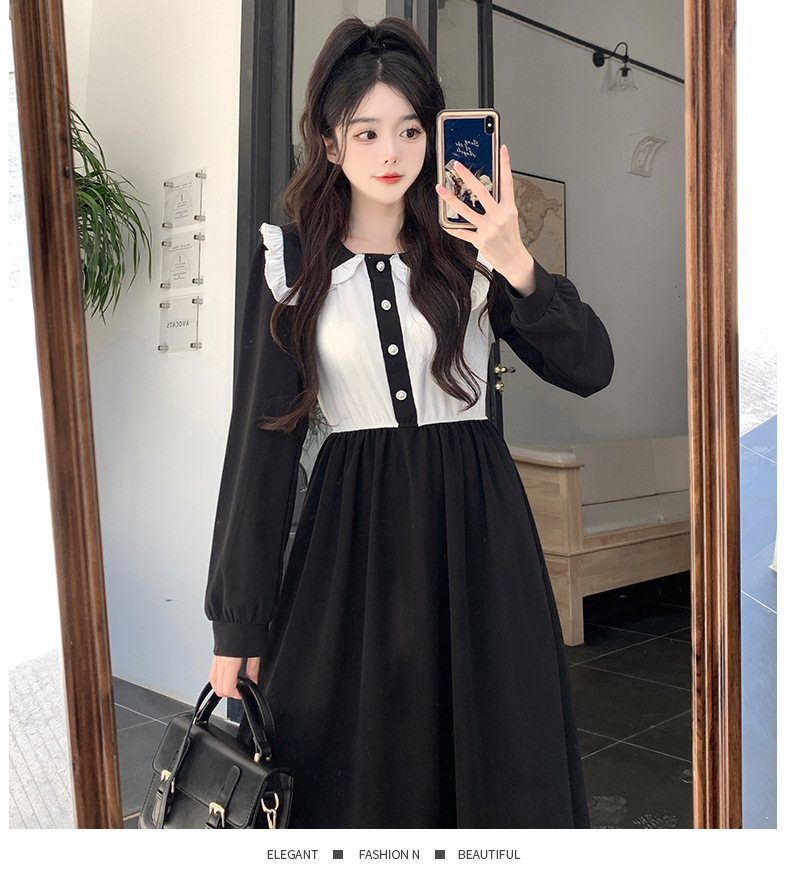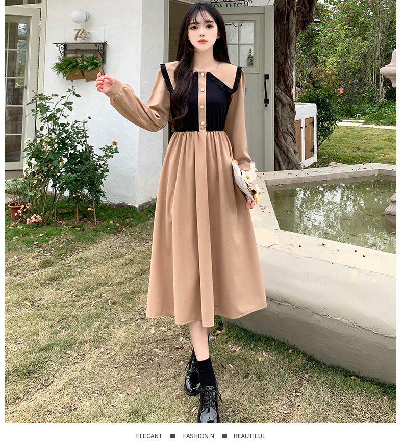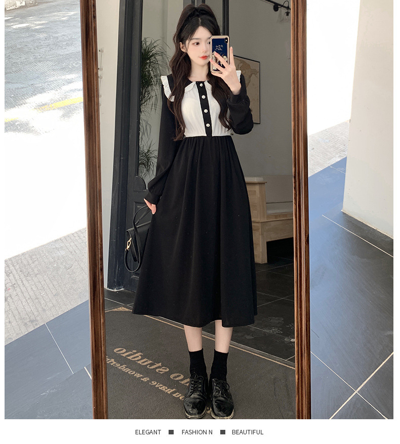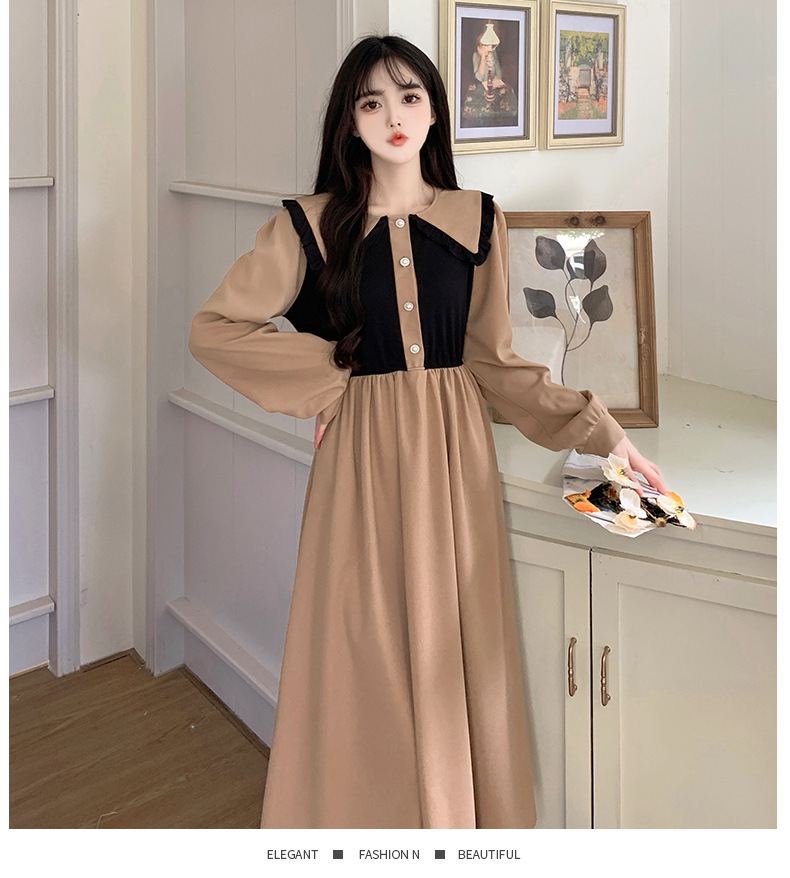 Оптовая продажа весны и осени в корейском стиле, самая популярная для сочетания дизайна, контрастного цвета, женское платье 2025 года, новое модное и клетчатое длинное платье