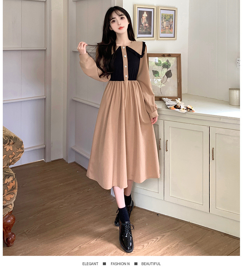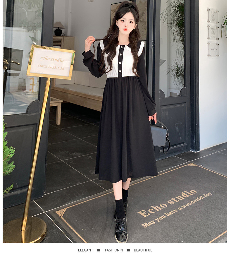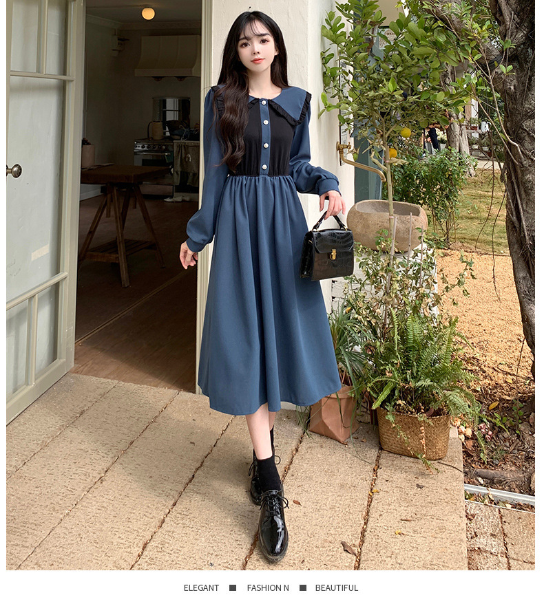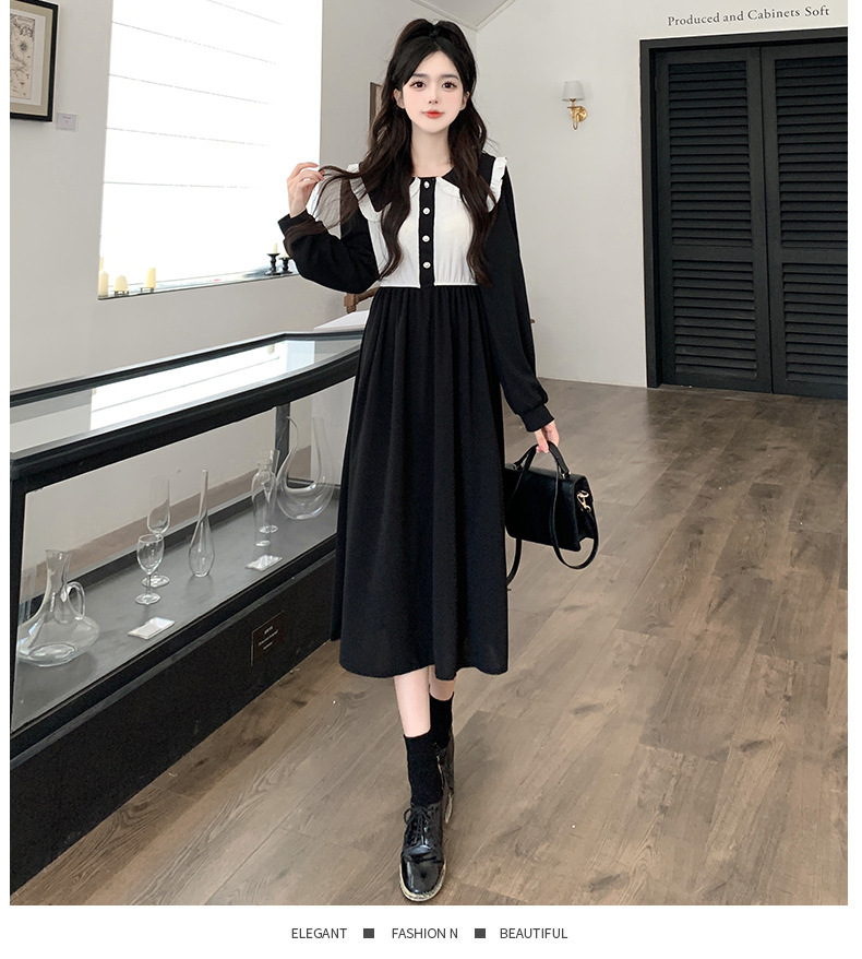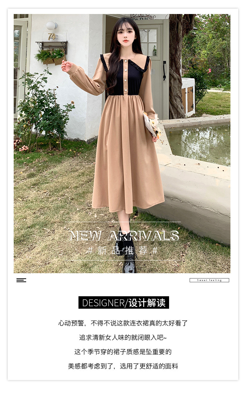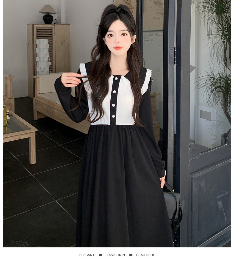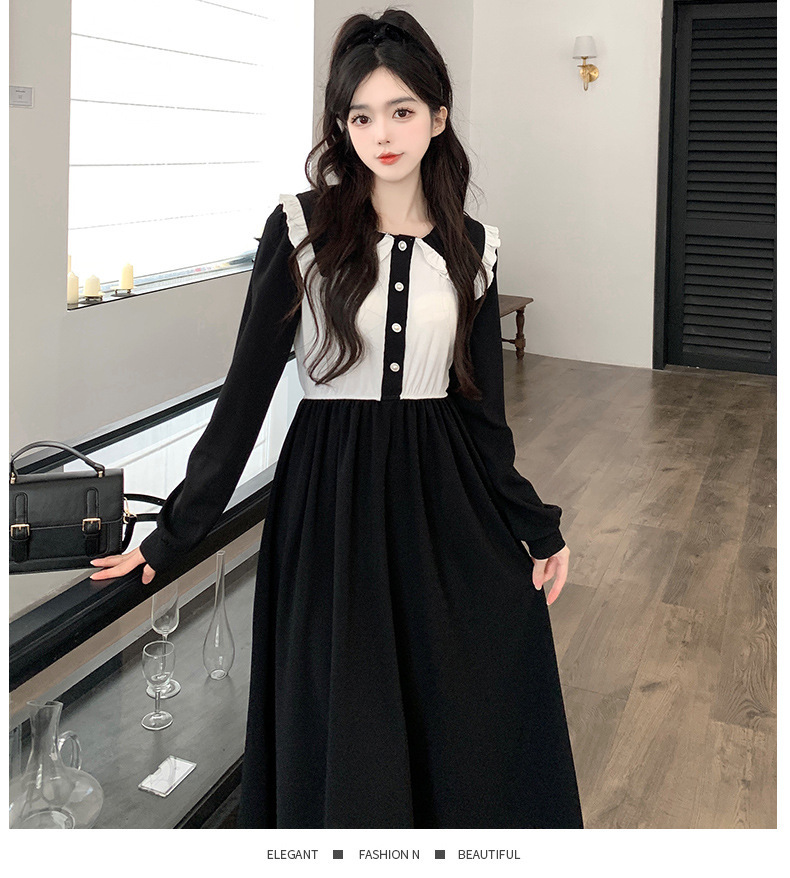 Оптовая продажа весны и осени в корейском стиле, самая популярная для сочетания дизайна, контрастного цвета, женское платье 2025 года, новое модное и клетчатое длинное платье