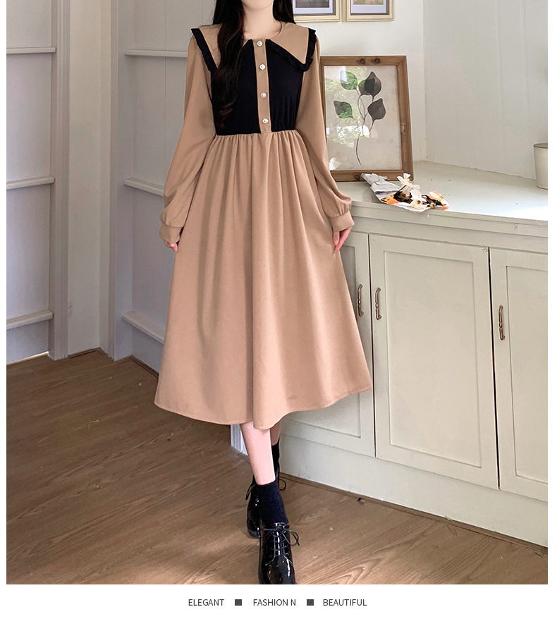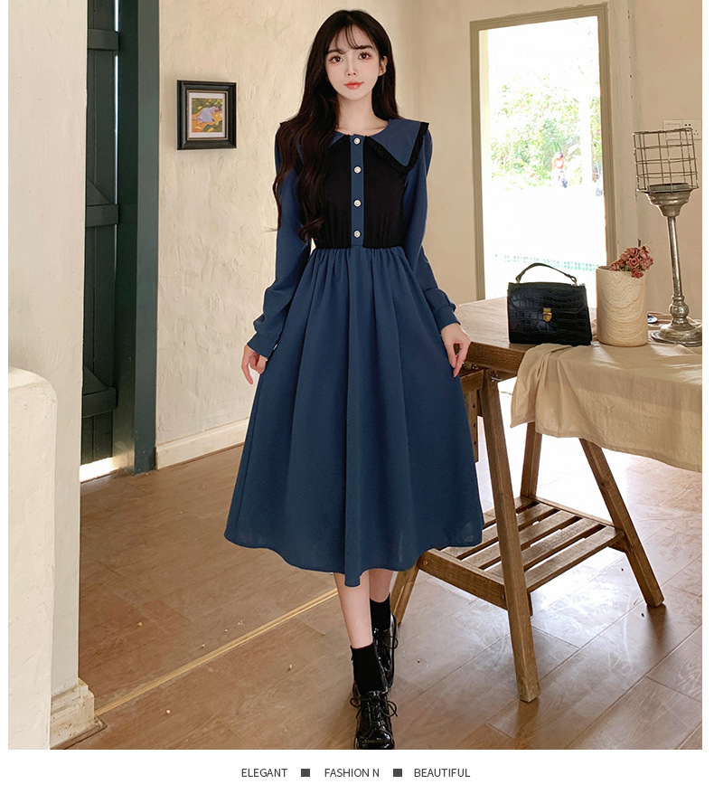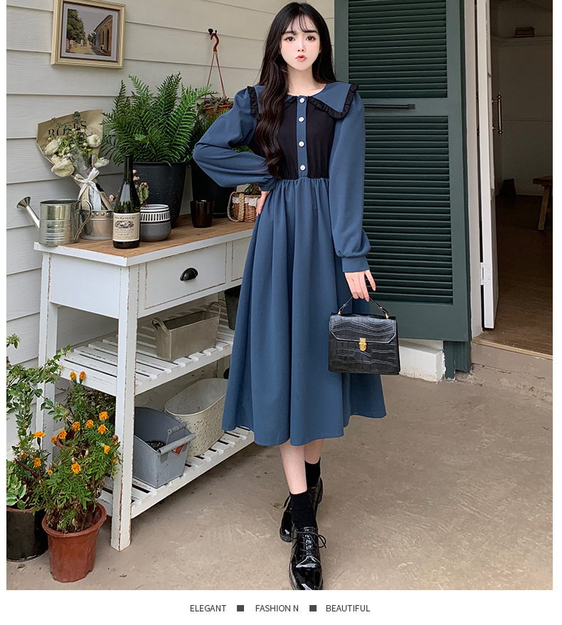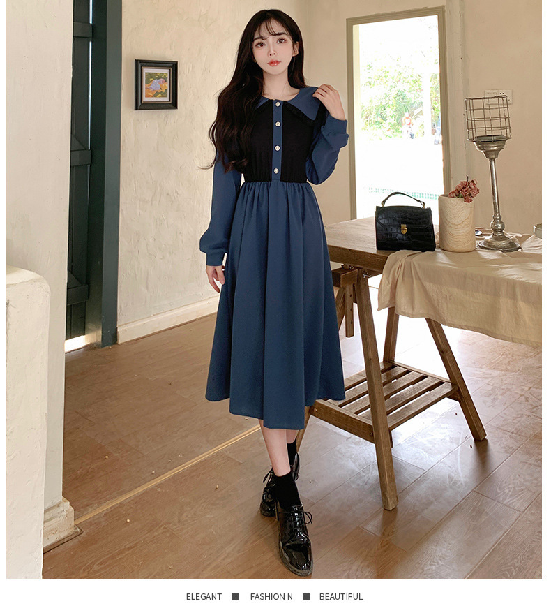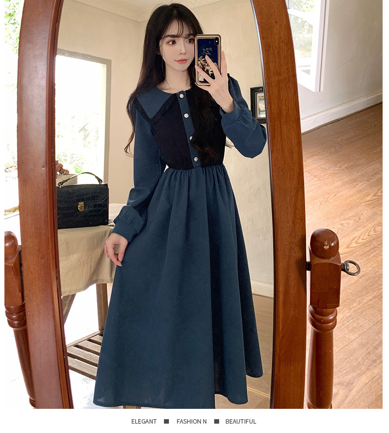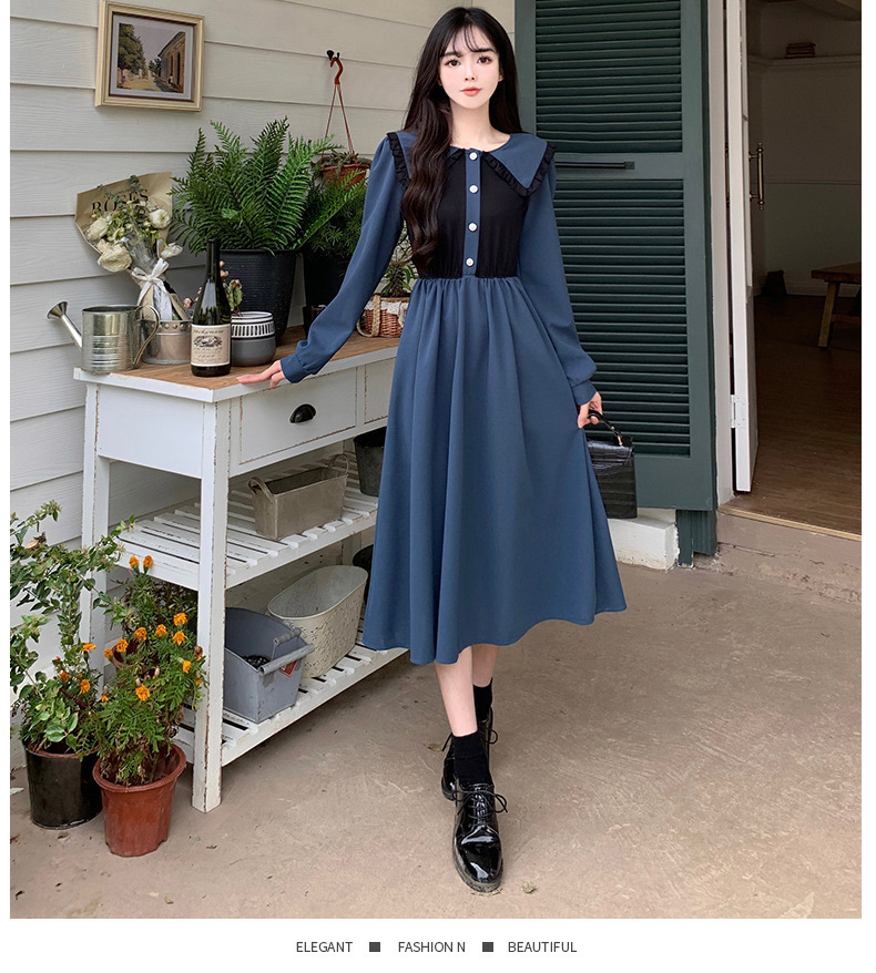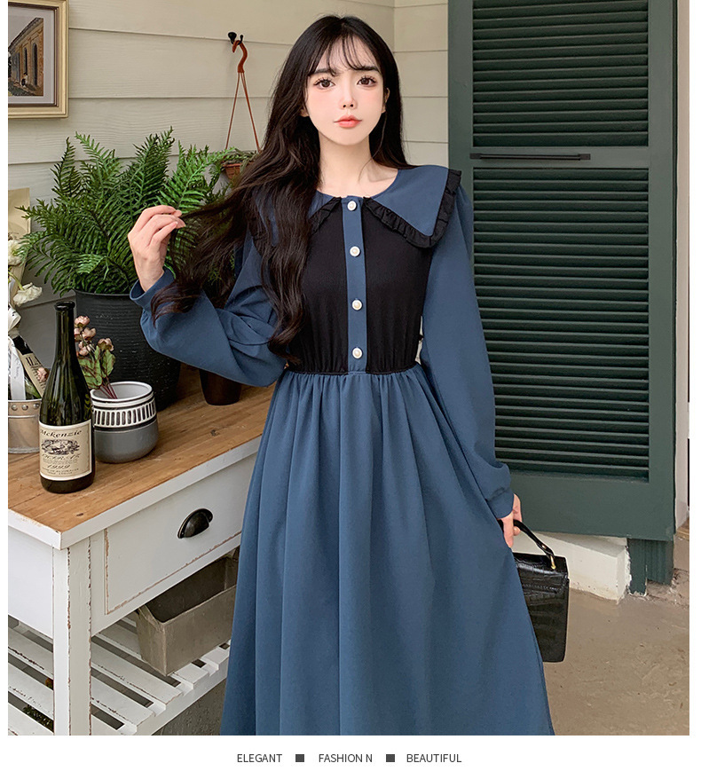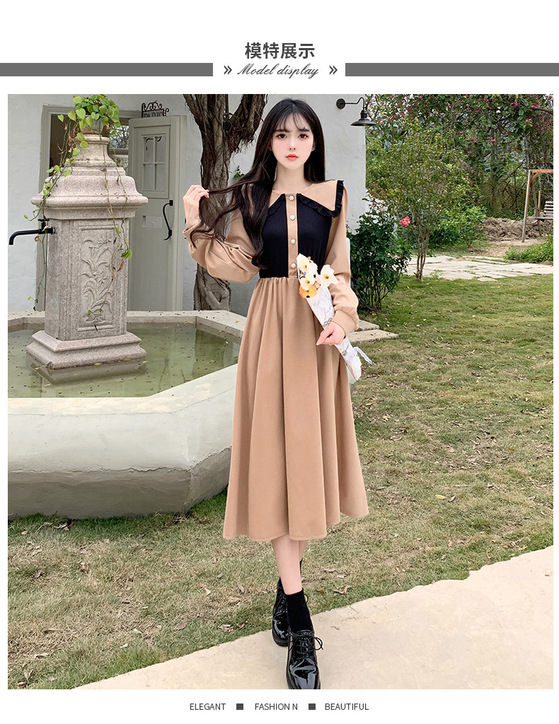 Оптовая продажа весны и осени в корейском стиле, самая популярная для сочетания дизайна, контрастного цвета, женское платье 2025 года, новое модное и клетчатое длинное платье