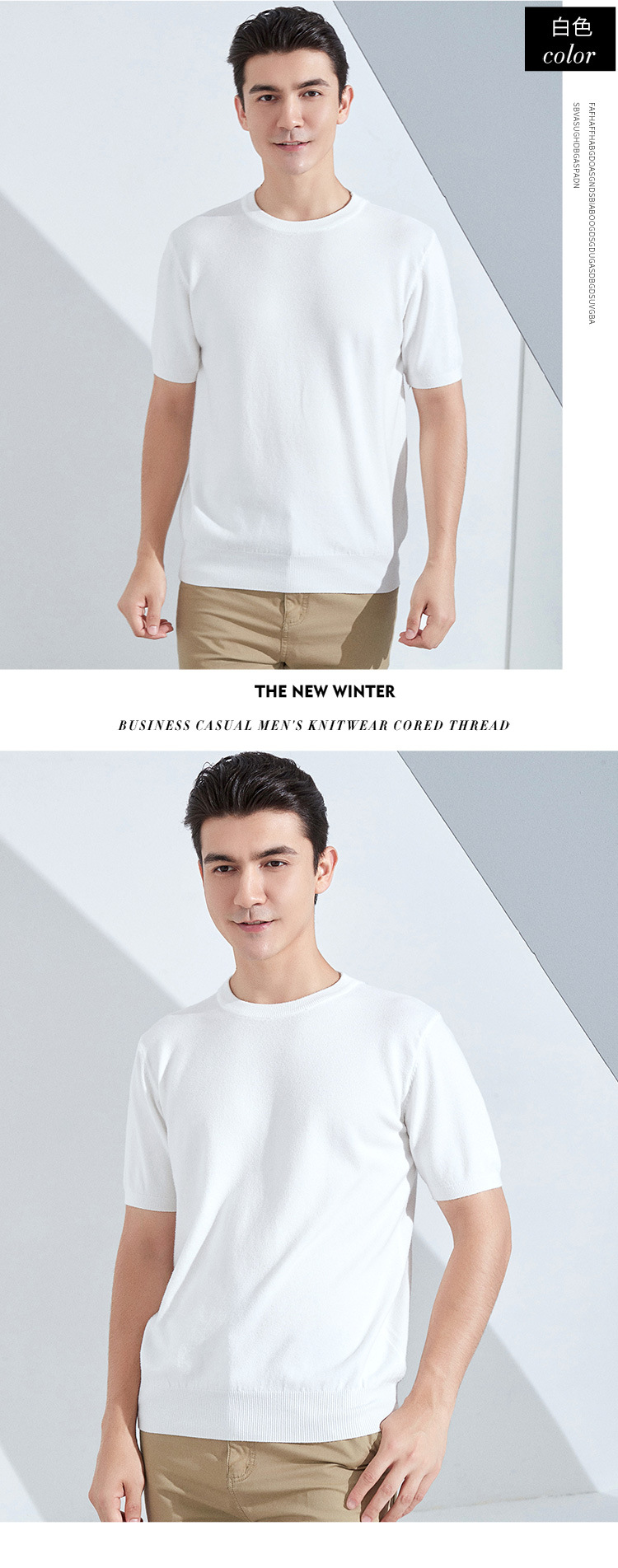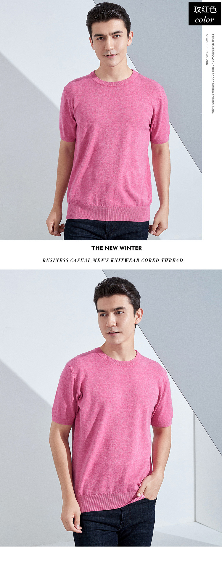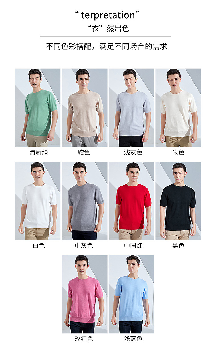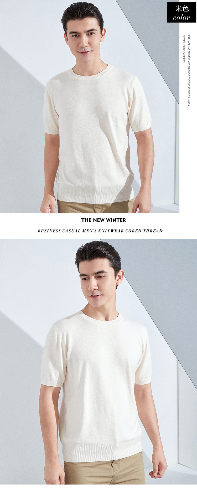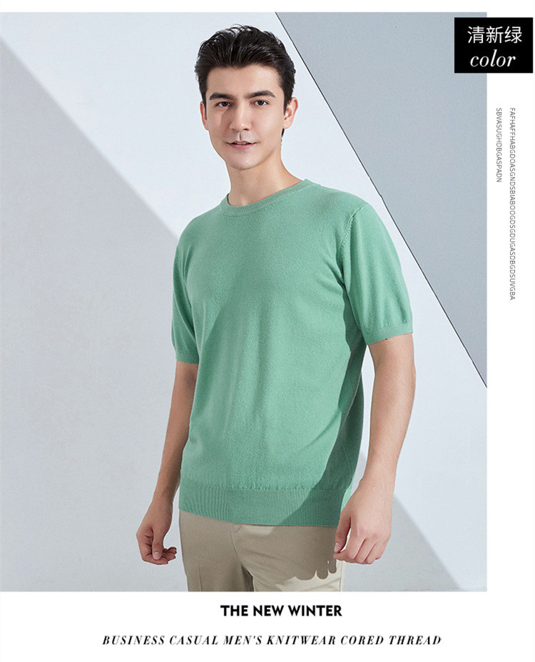 Мужская вязаная рубашка с короткими рукавами сплошного цвета повседневная свободная футболка с рукавом полрукава весна и лето тонкий свитер