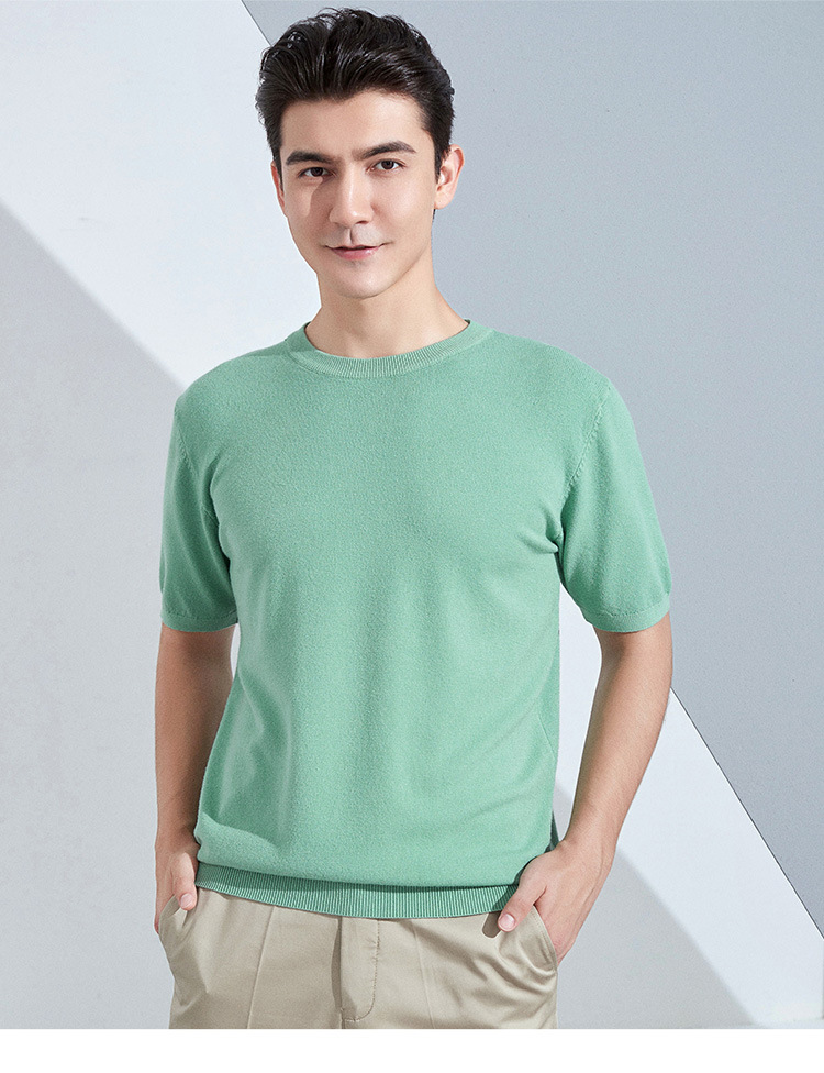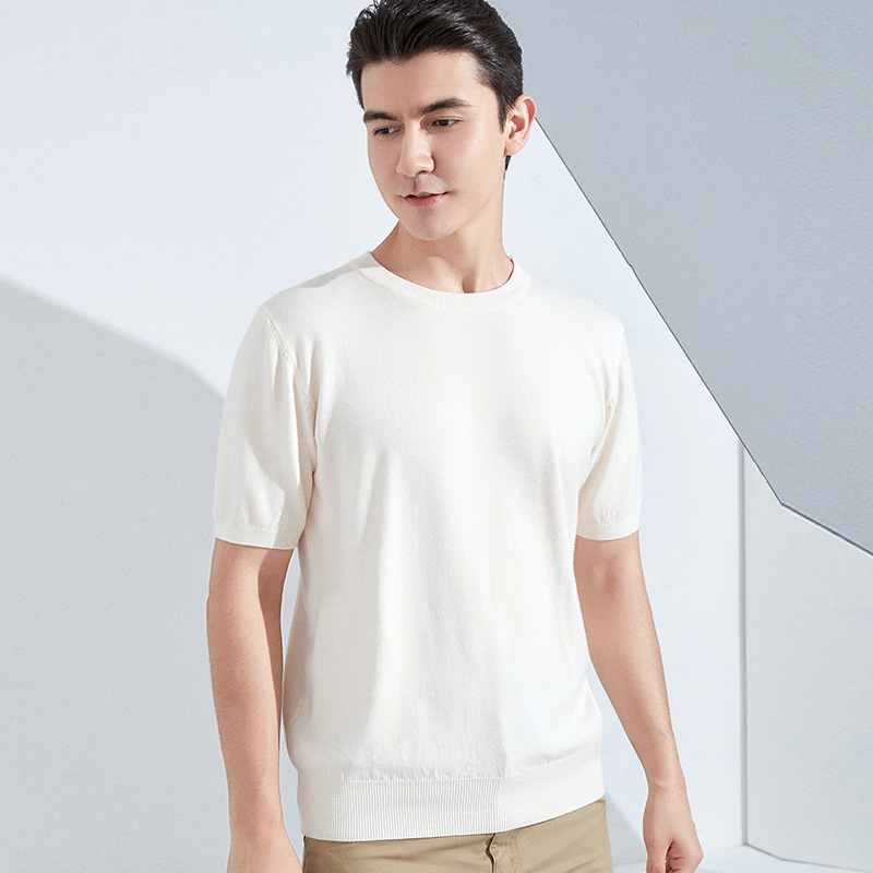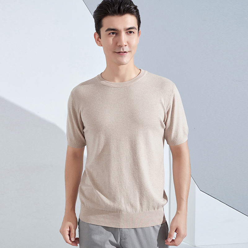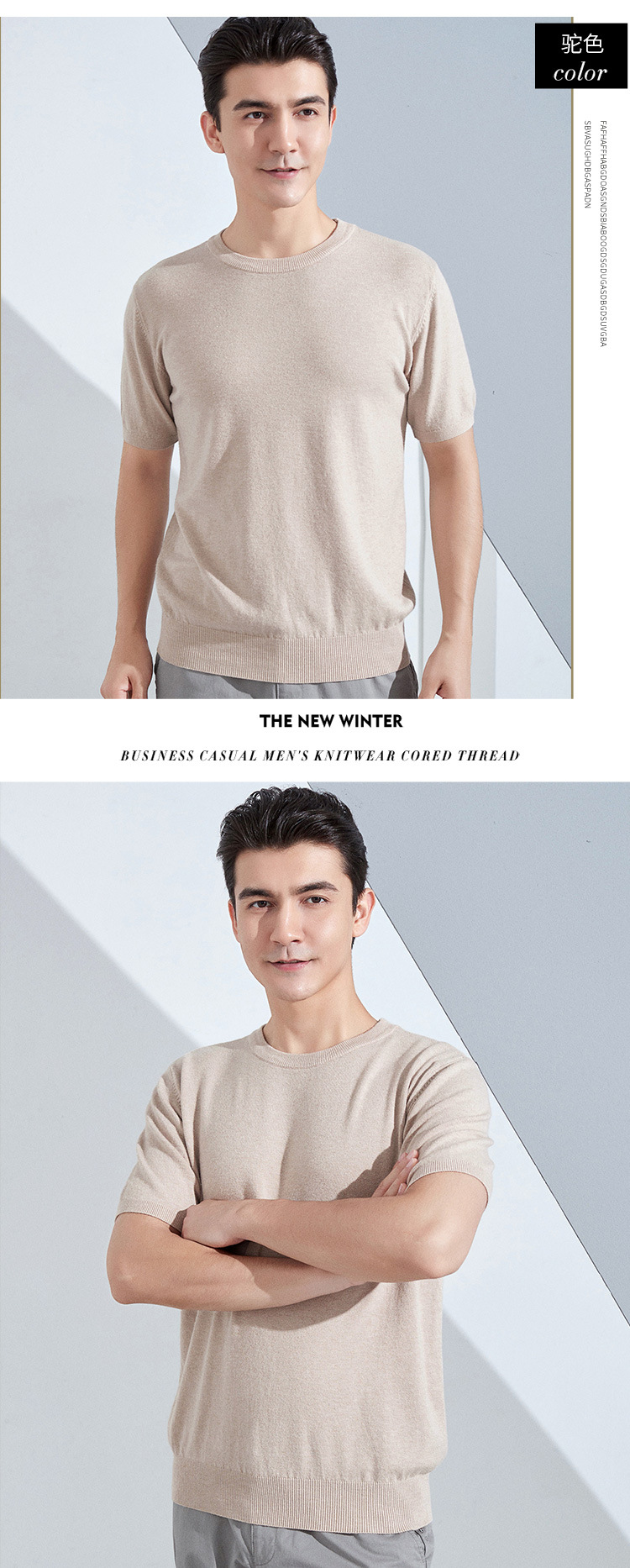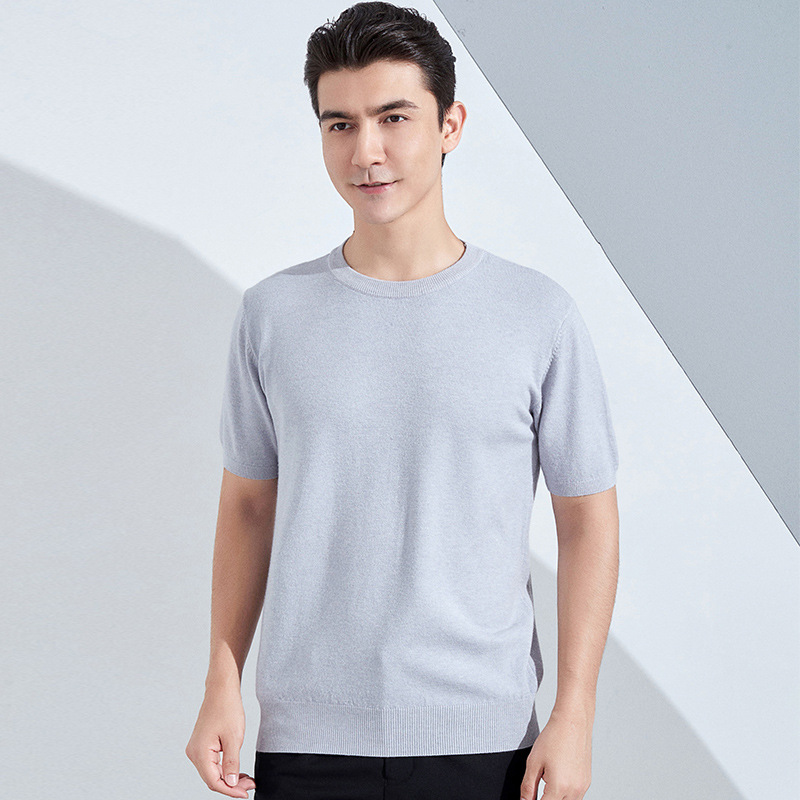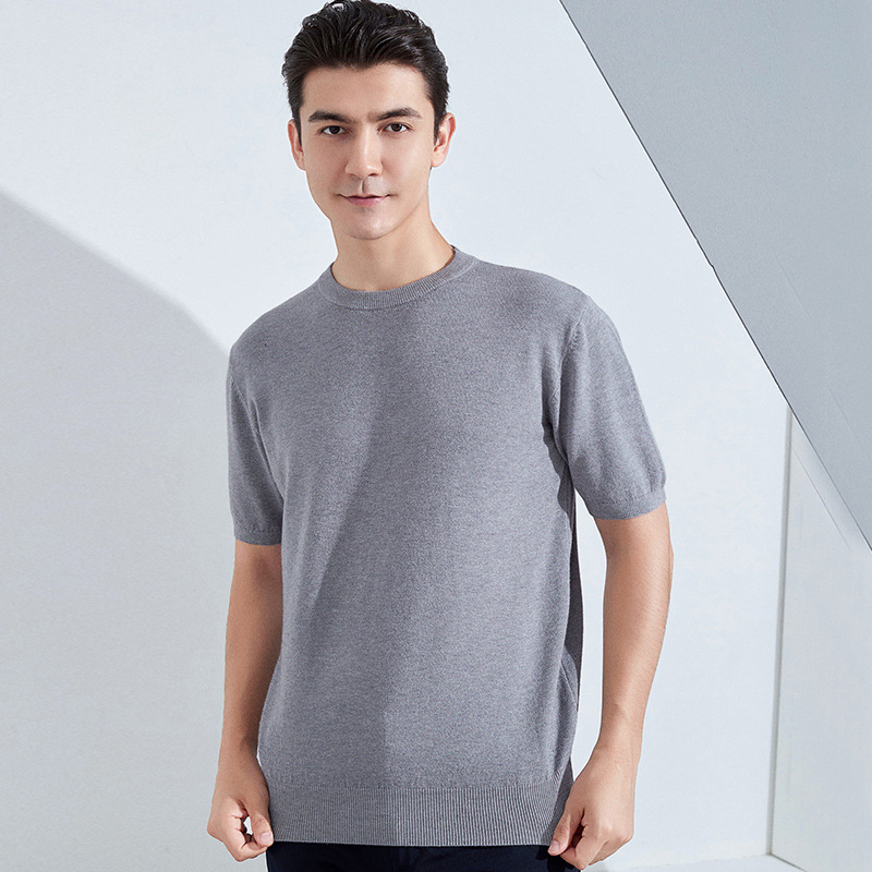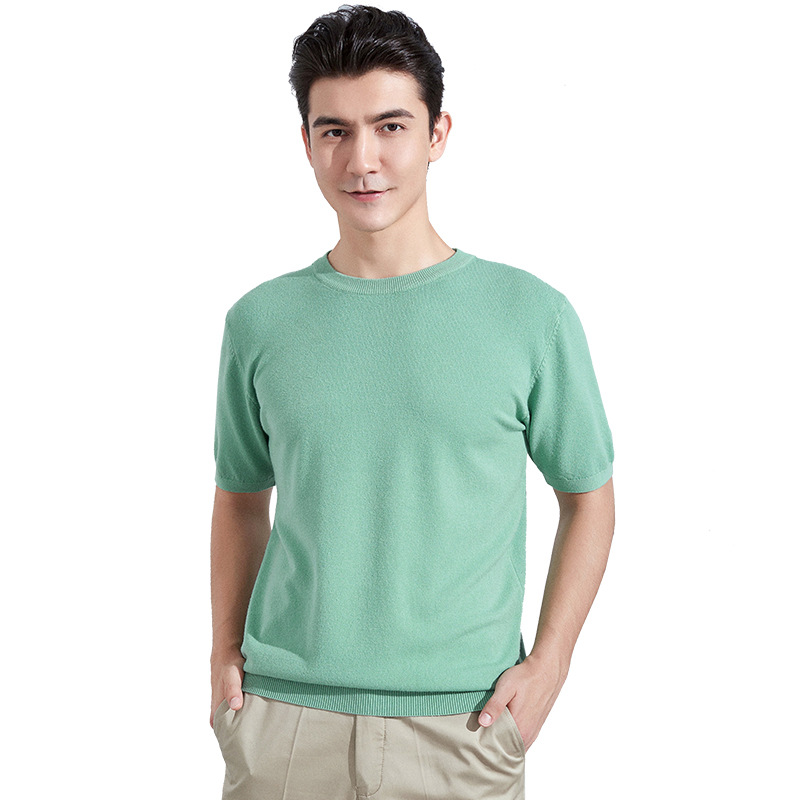 Мужская вязаная рубашка с короткими рукавами сплошного цвета повседневная свободная футболка с рукавом полрукава весна и лето тонкий свитер