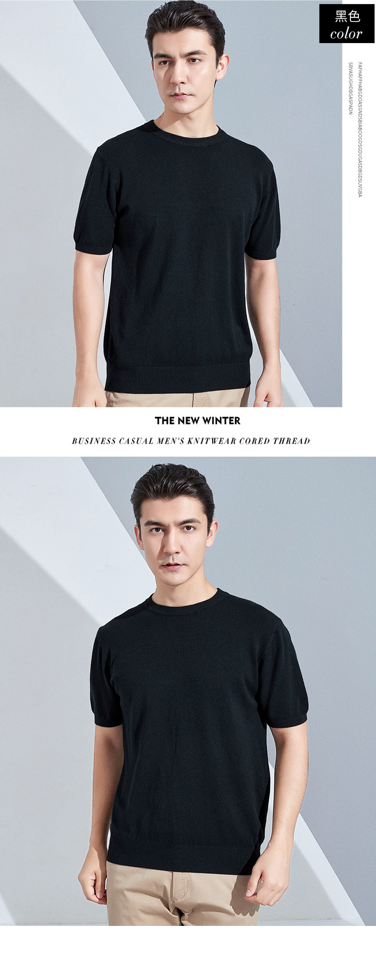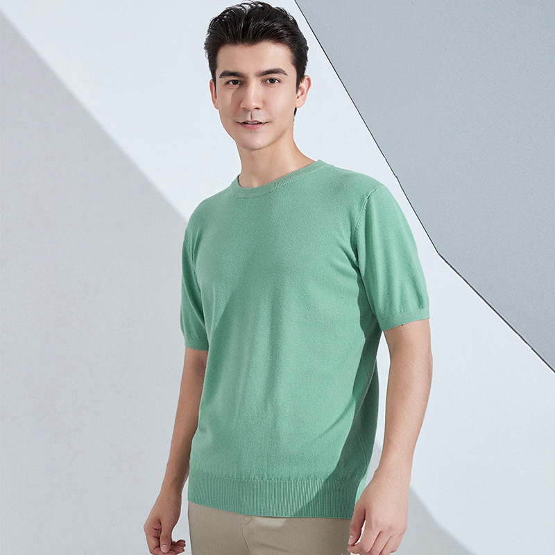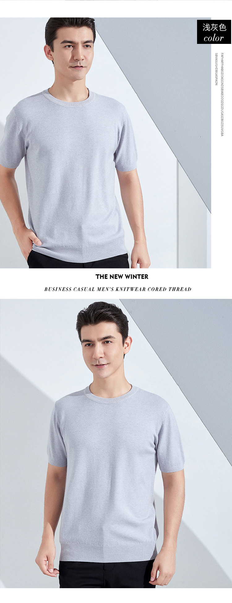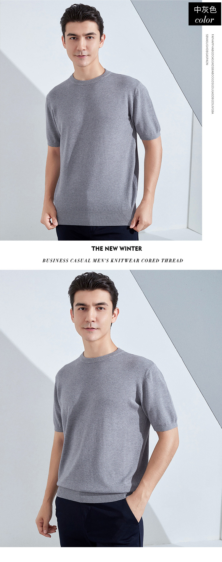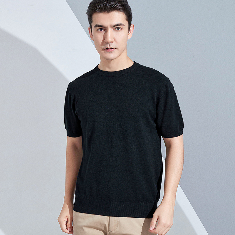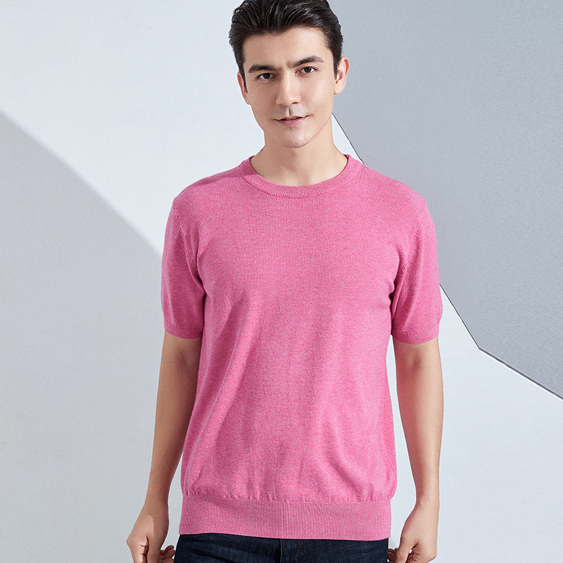 Мужская вязаная рубашка с короткими рукавами сплошного цвета повседневная свободная футболка с рукавом полрукава весна и лето тонкий свитер