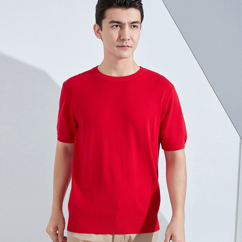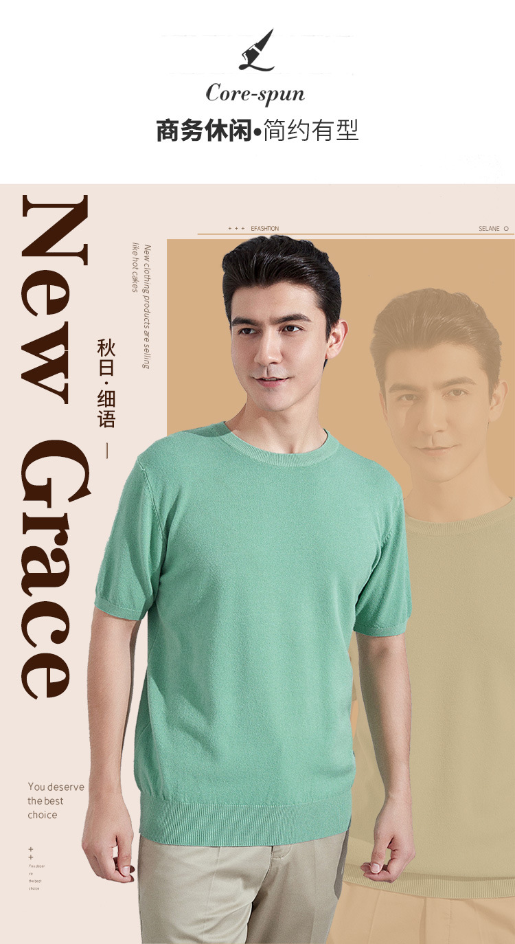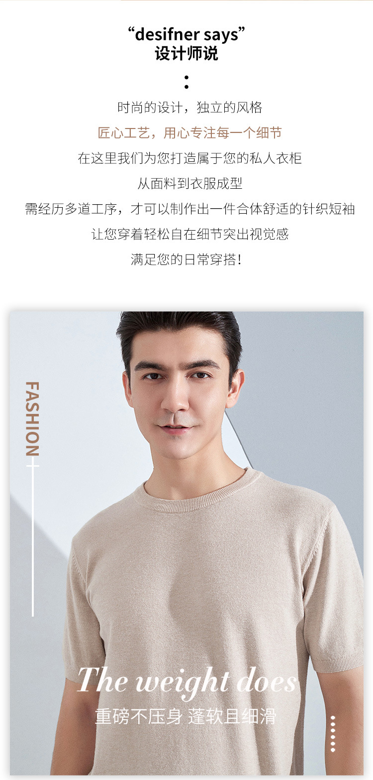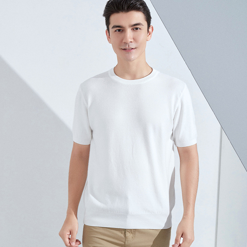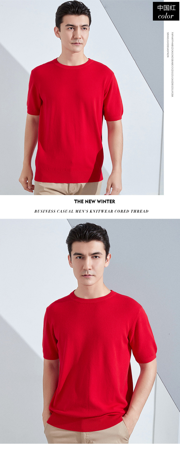 Мужская вязаная рубашка с короткими рукавами сплошного цвета повседневная свободная футболка с рукавом полрукава весна и лето тонкий свитер