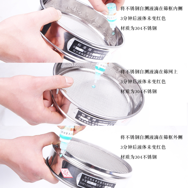 4-8 меш (5-2.5mm) одиночный; 10 меш (2 мм); 20 меш (0,9 мм); 40 меш (0.45mm); 60 меш (0.3mm); 80 меш (0,2 мм); 100 меш (0.154mm); 120 меш (0.125mm); 140 меш (0.106mm); 160 меш (0.098mm); 180 меш (0.088mm); 200 меш (0.075mm); 10-200 кум другие одиночные выстрелы; 220 меш (0.07mm); 250 меш (0.063mm); 280 меш (0.052mm); 300 меш (0.05mm); 350 меш (0.041mm); 400 меш (0.0385mm); 500 меш (0.03mm); 600 меш (0.025mm); 800 меш (0.015mm); Нержавеющая сталь нижняя крышка; Сертификат обнаружения