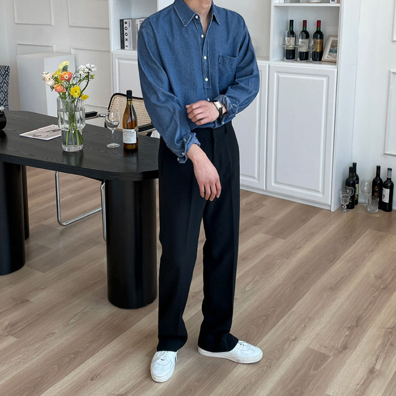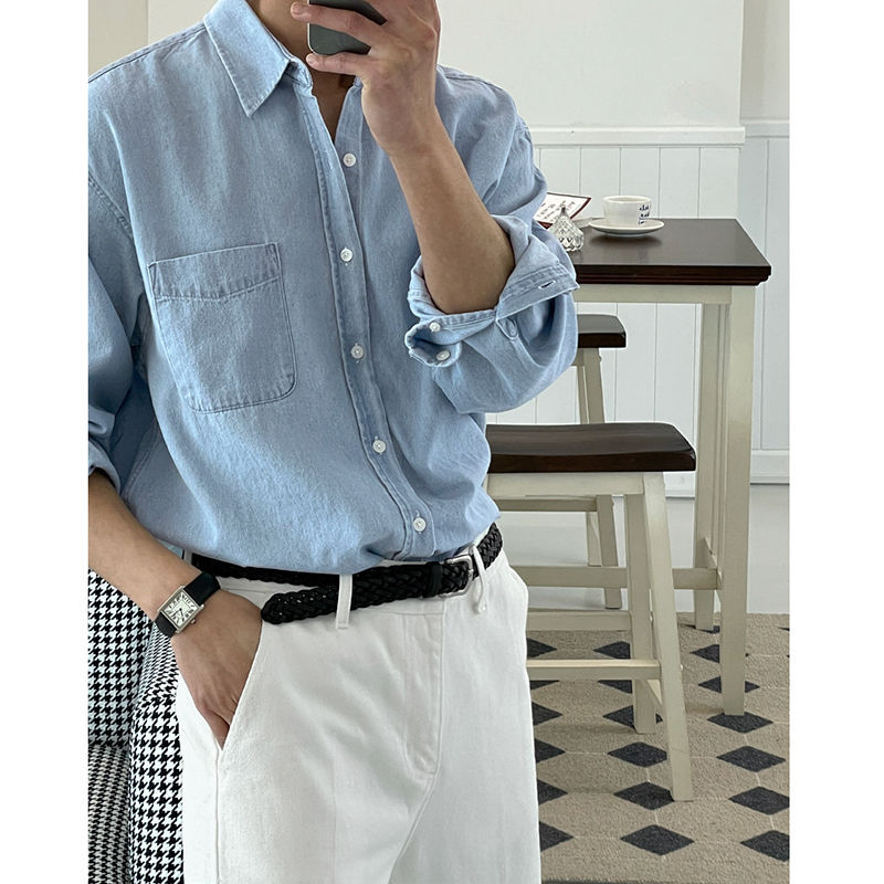 Выстиранная старая джинсовая рубашка MYQ, Мужская Весенняя свободная Высококачественная Рабочая Рубашка с длинными рукавами в Корейском стиле, куртка