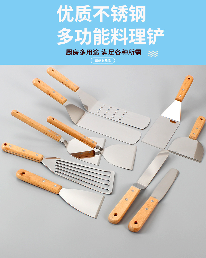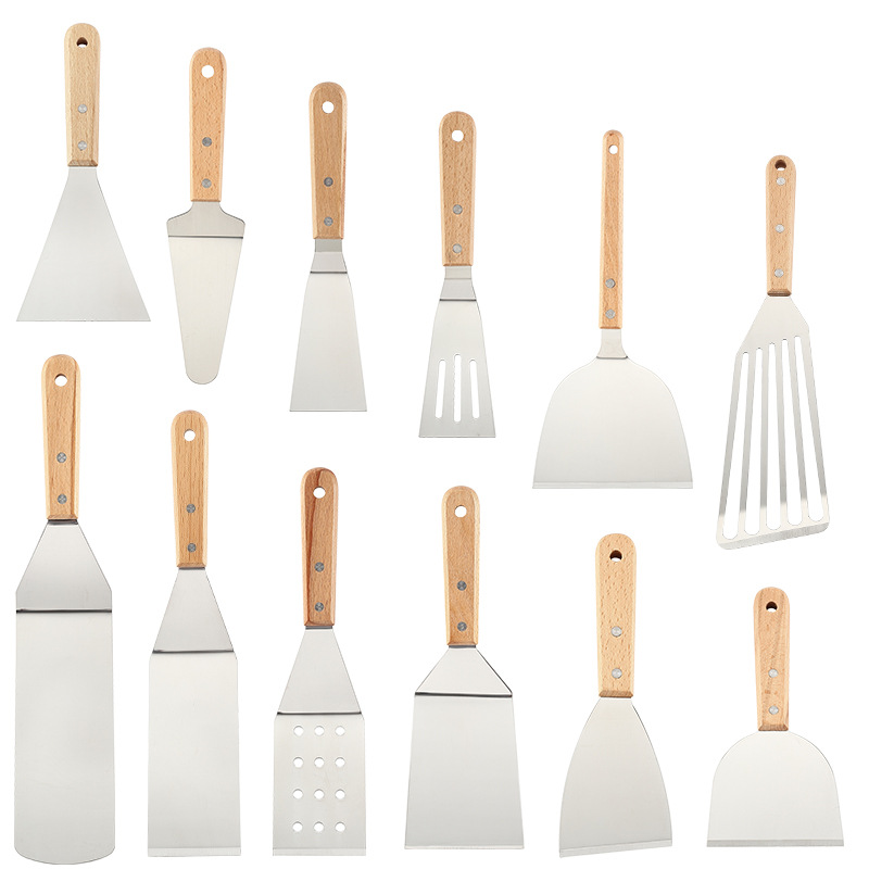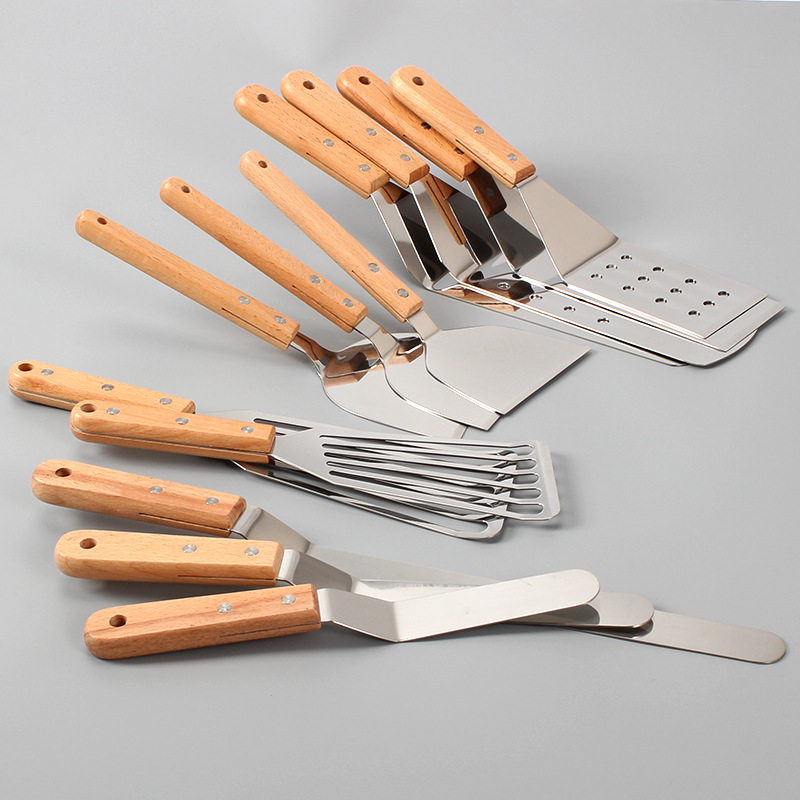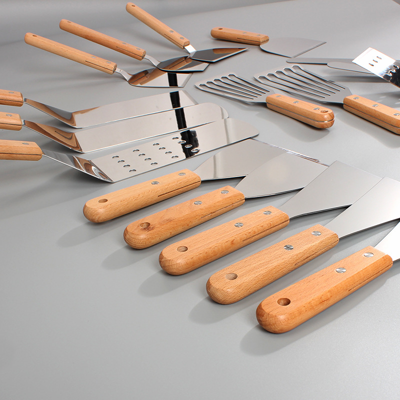 Amazon Буковая ручка лопатка для приготовления пищи из нержавеющей стали лопата для жарки стейка теппаньяки блин фруктовый ручной инструмент для торта