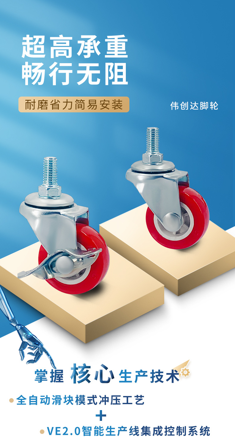 Прямые продажи с фабрики маленькое красное колесо 1,5-дюймовое 2-дюймовое промышленное рицинус универсальное колесо Универсальный винтовой стержень тормозное колесо мебельное колесо