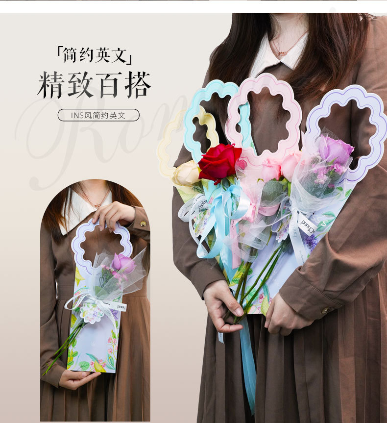 Упаковочный пакет для одиночного букета на Рождество, для роз, ручной работы, для цветочных открыток, на Китайский День святого Валентина, для свежих цветов, флористические упаковочные материалы