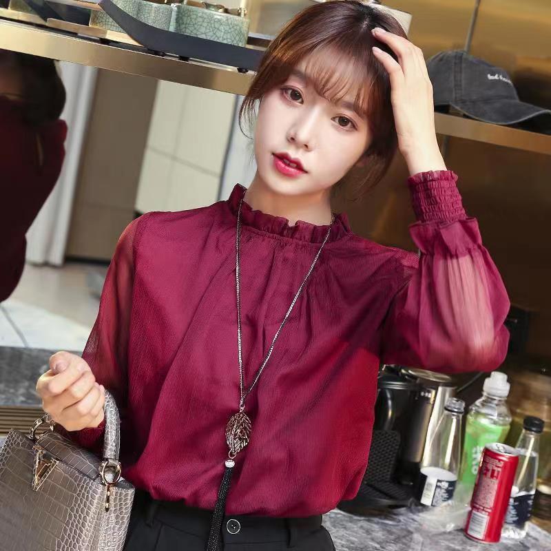 Рубашка с длинным рукавом для женщин 2023 Весна и осень Новый дизайн чувство ниши воротник-стойка Ретро рубашка в западном стиле пригородного темперамента