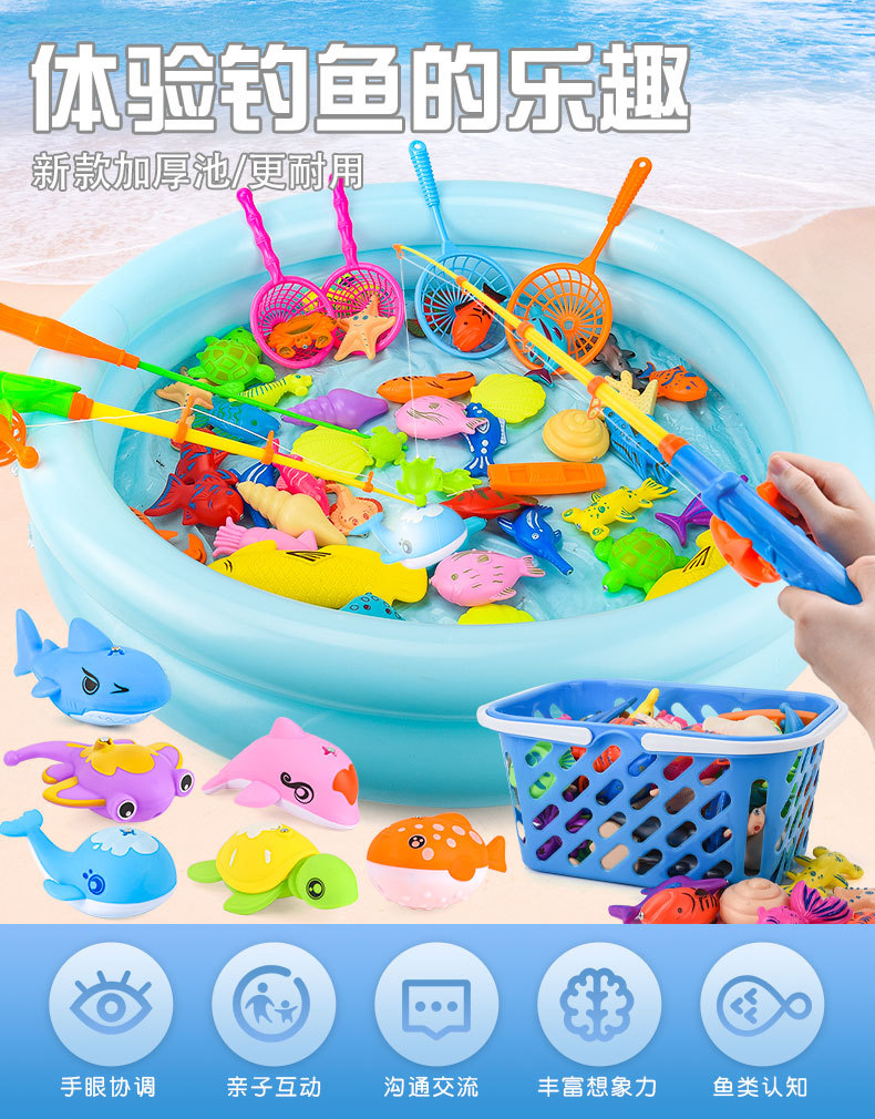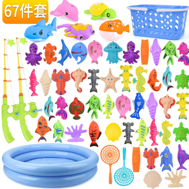 Amazon Summer Water Магнитная игрушка для рыбалки Домашнее животное Трехмерная удочка для рыбы Круглый бассейн 67 предметов Пакет игрушек