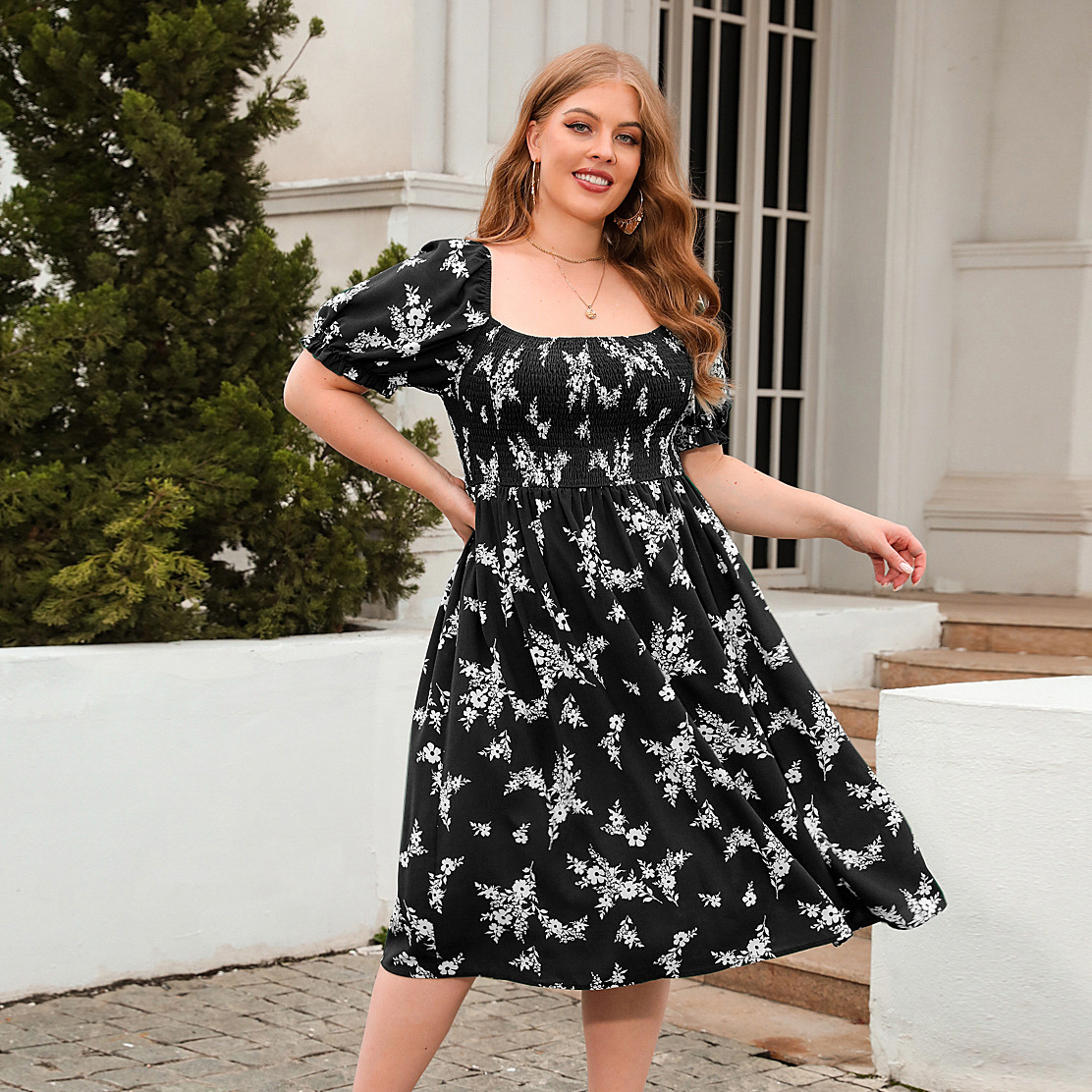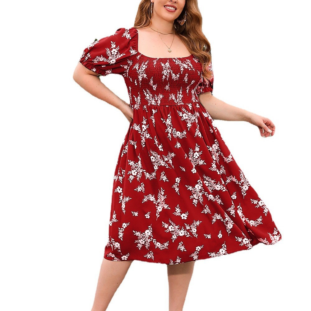 Трансграничное платье больших размеров Женское Повседневное платье для отпуска с принтом больших размеров Богемное французское элегантное платье миди