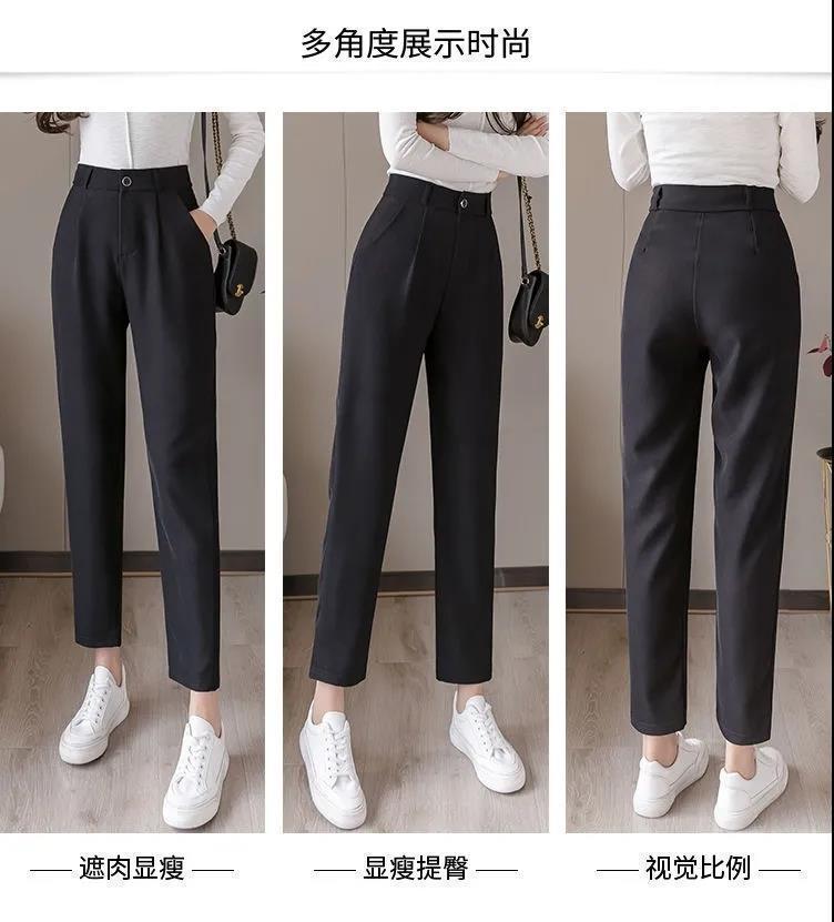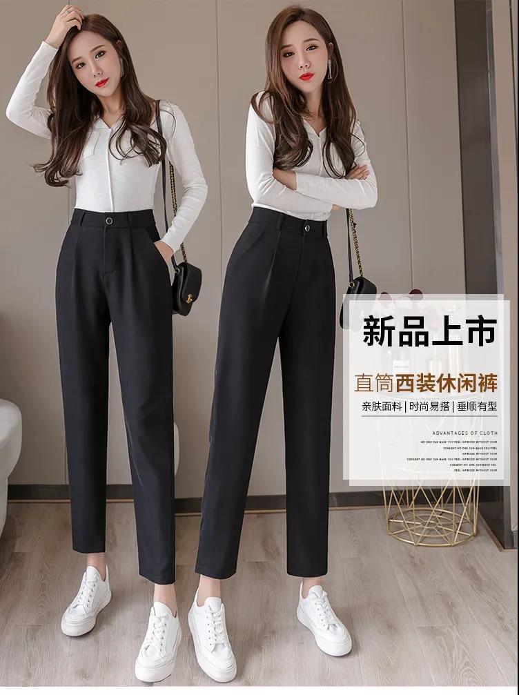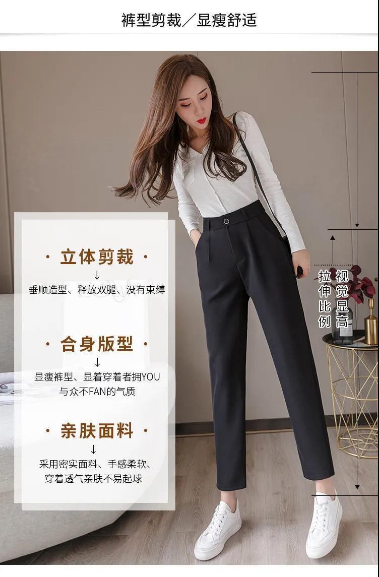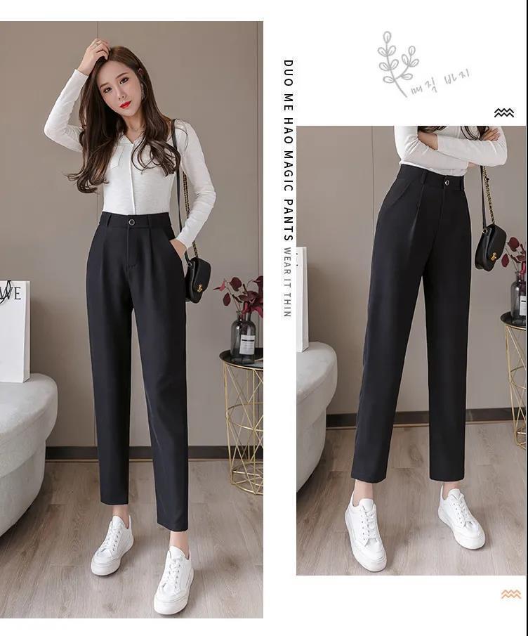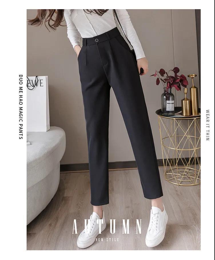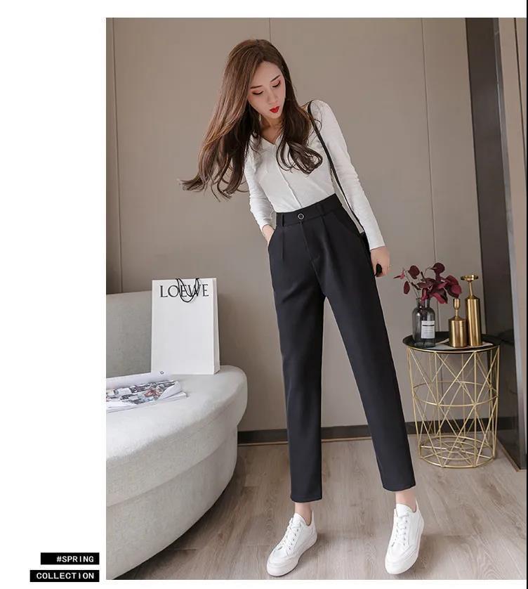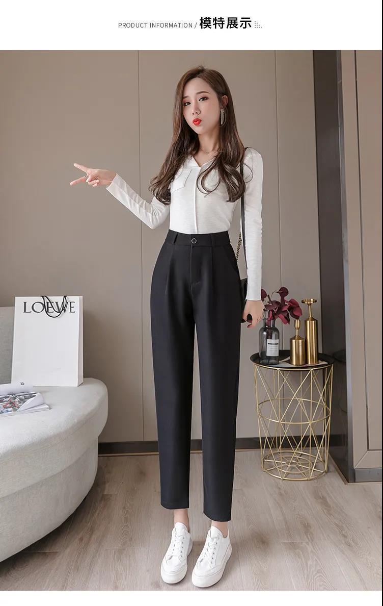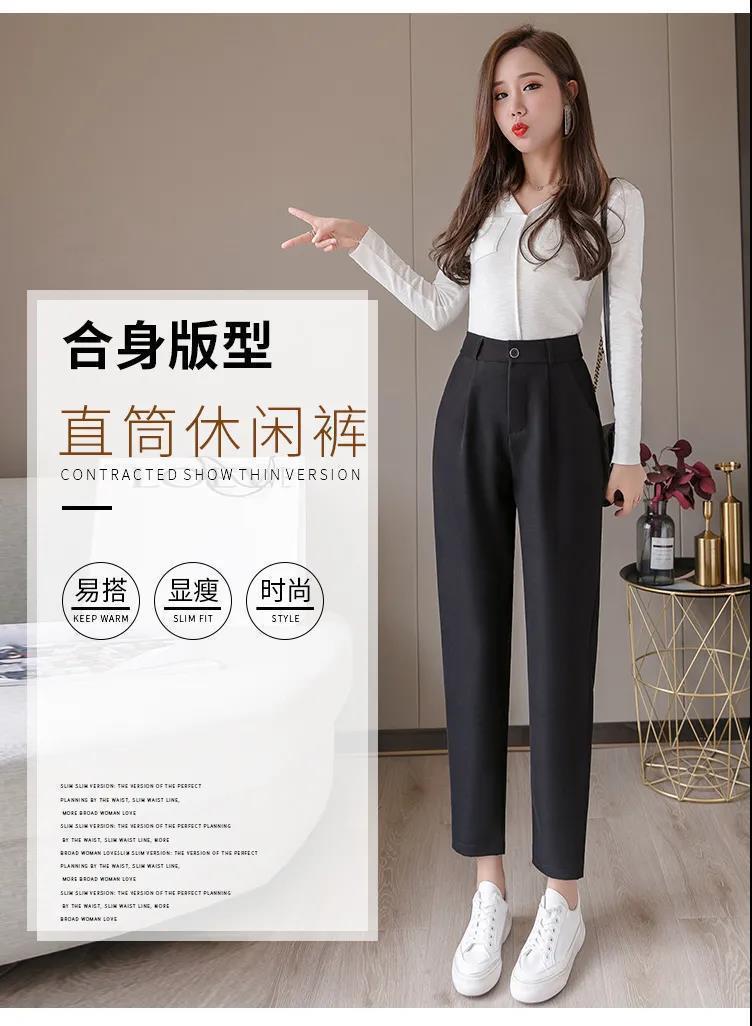 Костюм Брюки Женские Прямые Корейские Свободные Брюки Сигареты Весна-Осень Повседневные Прямые Брюки Harlan Черные Брюки до щиколотки