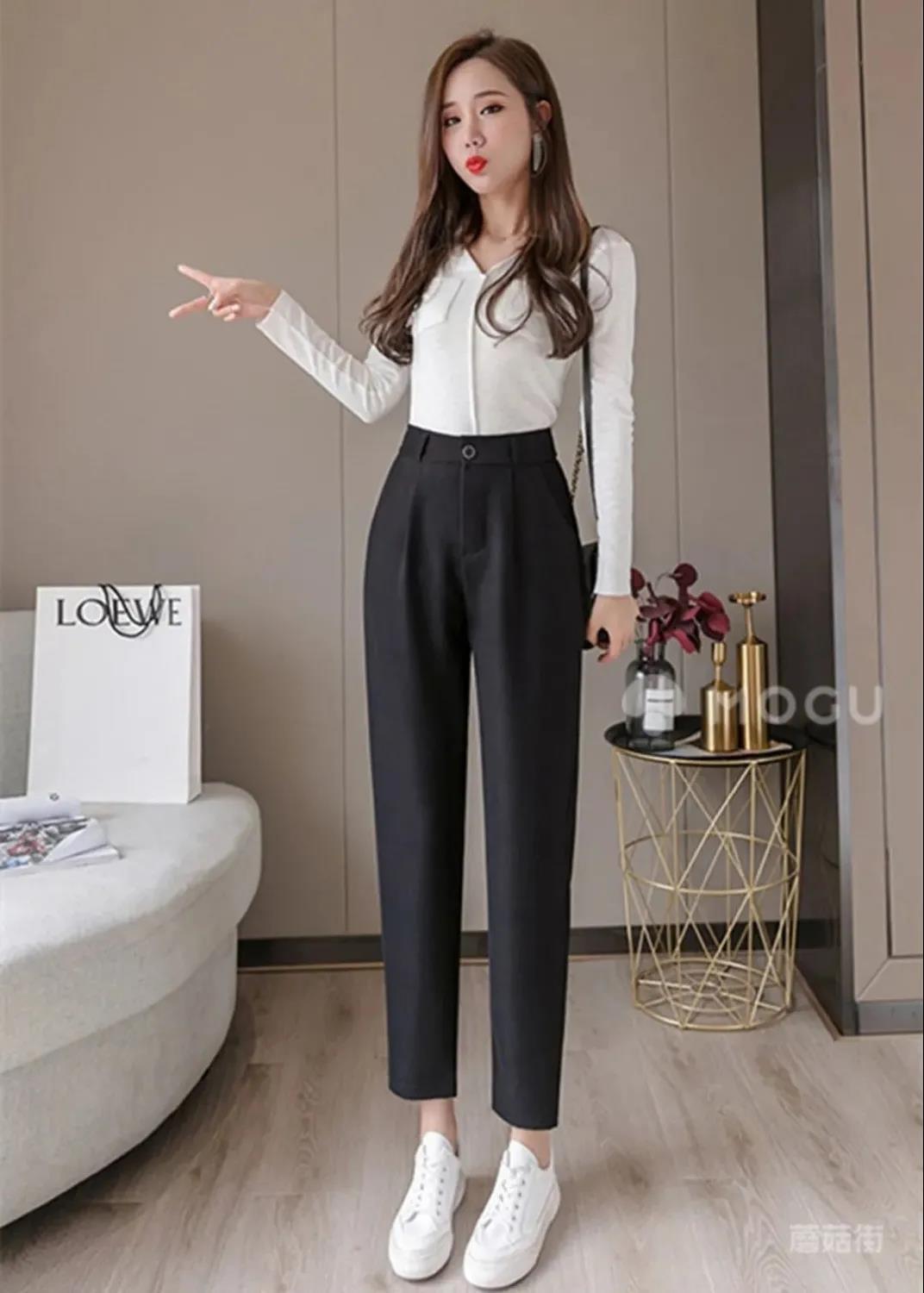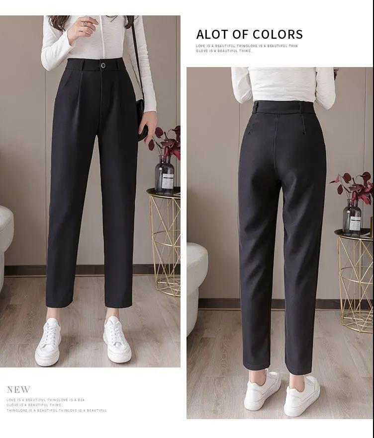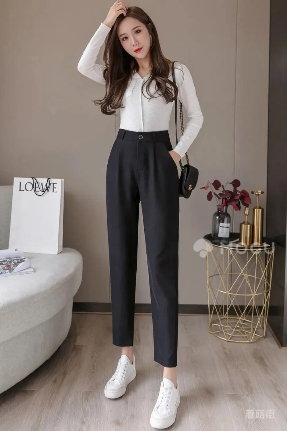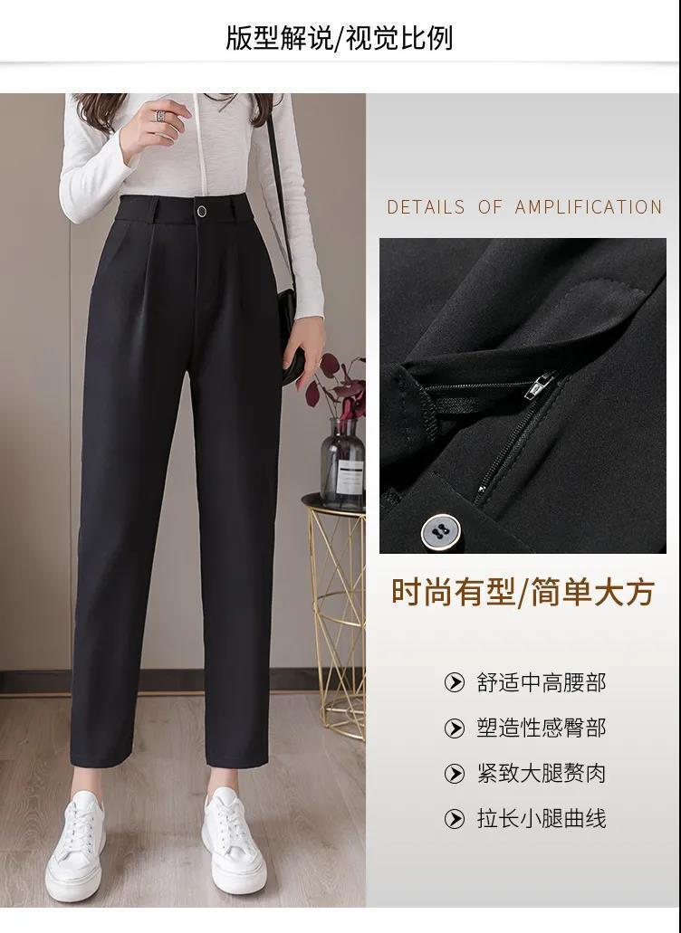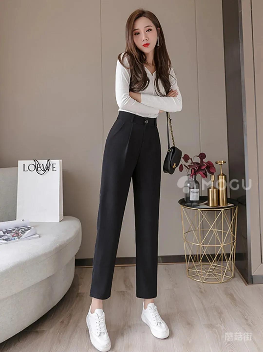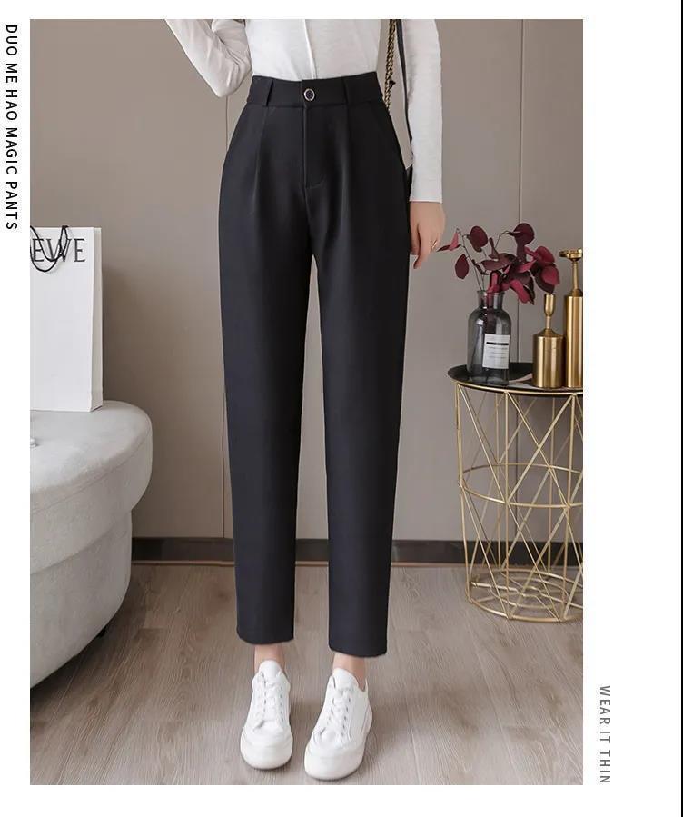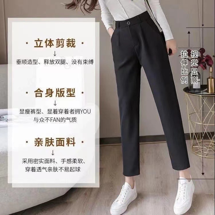 Костюм Брюки Женские Прямые Корейские Свободные Брюки Сигареты Весна-Осень Повседневные Прямые Брюки Harlan Черные Брюки до щиколотки