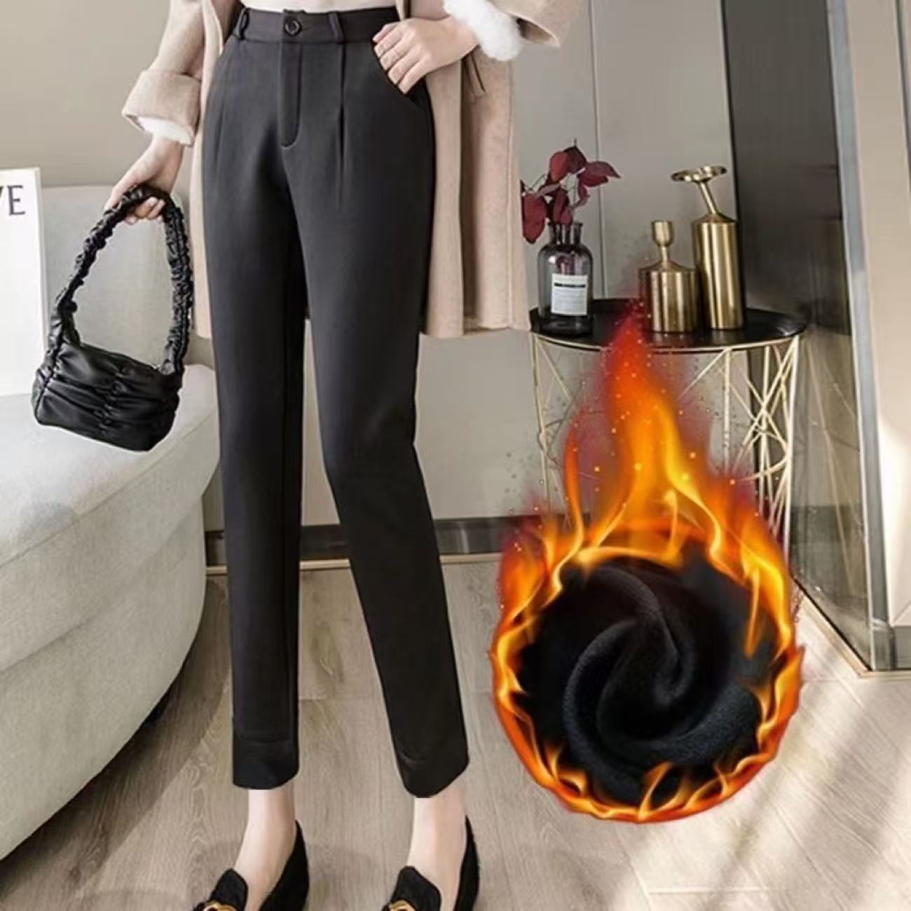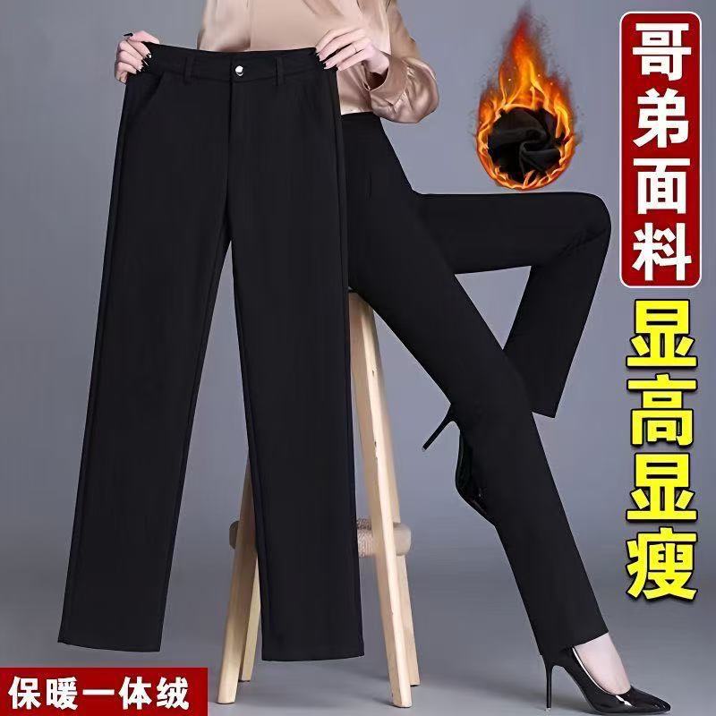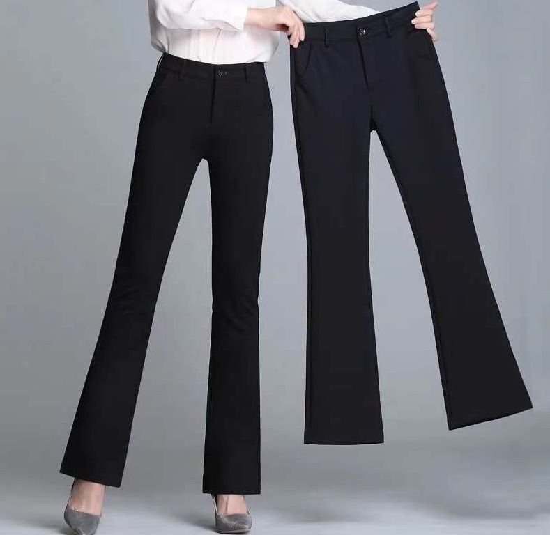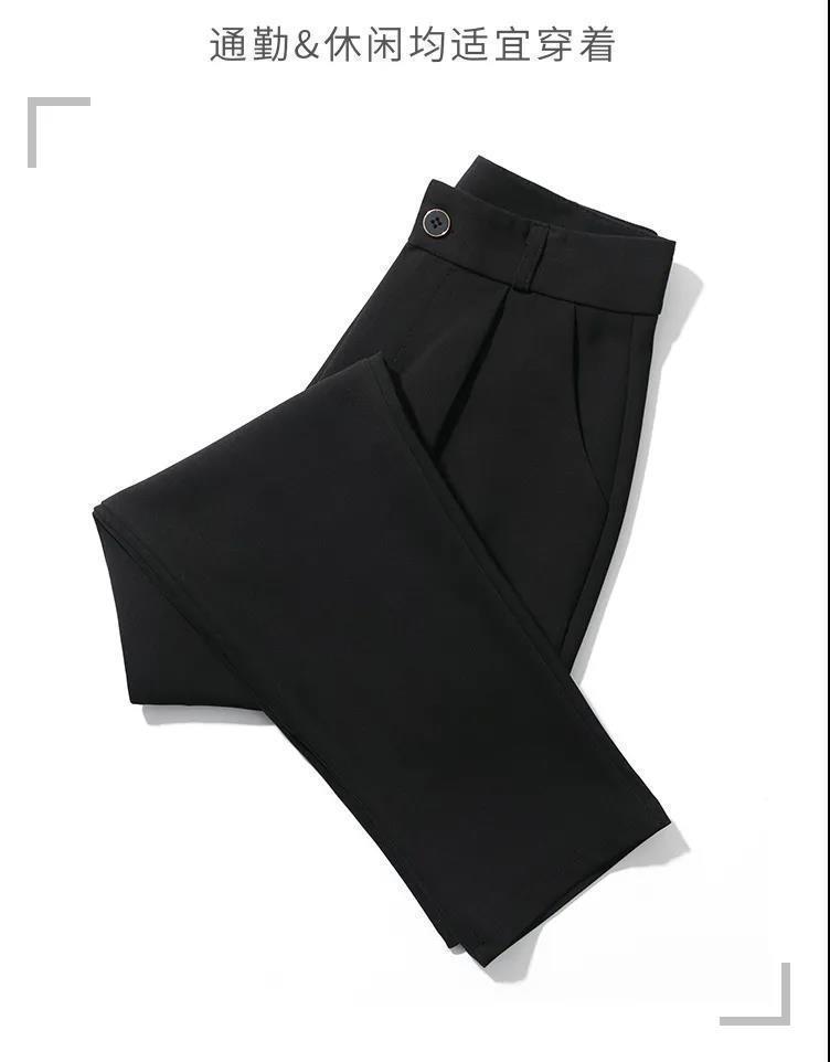 Черные прямые брюки [эластичные, не мнутся и не скатываются]; Черные брюки-шаровары с девятью точками [эластичные, не мнутся и не скатываются]; Темно-синие прямые брюки [эластичные, не мнутся и не скатываются]; Черные брюки с микро-расклешенным краем [эластичные, не мнутся и не скатываются]; Черные брюки прямого кроя на флисовой подкладке [эластичные, не мнущиеся и не скатывающиеся]; Черные укороченные брюки-шаровары на флисовой подкладке [эластичные, устойчивые к морщинам, не скатываются]; Черные микрорасклешенные брюки [резинка на талии сзади]; Черные микрофлисовые брюки с расклешенным кроем и подкладкой из флиса [Эластичный пояс сзади]