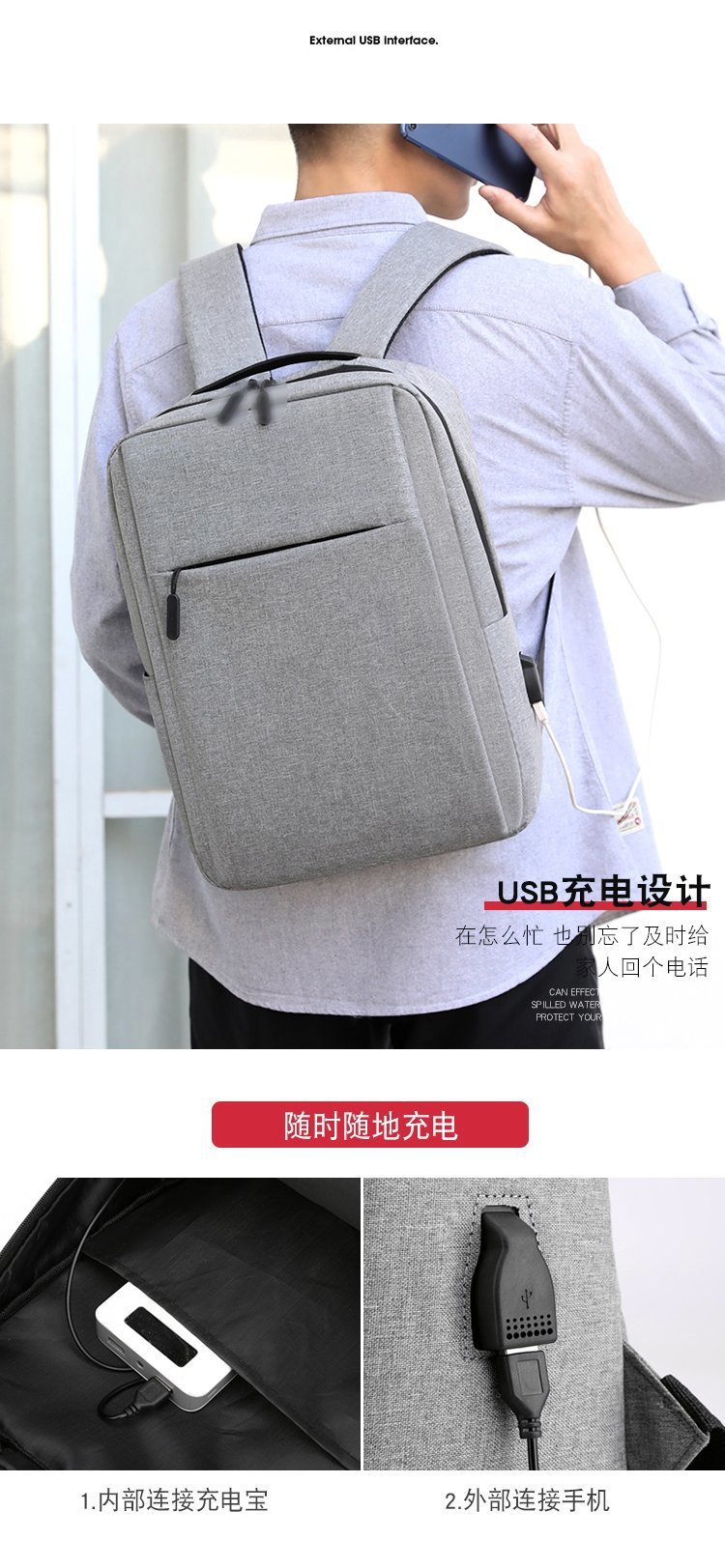 16-дюймовый рюкзак для ноутбука с логотипом для печати USB-повседневный мужской компьютерный дорожный рюкзак большой емкости женский