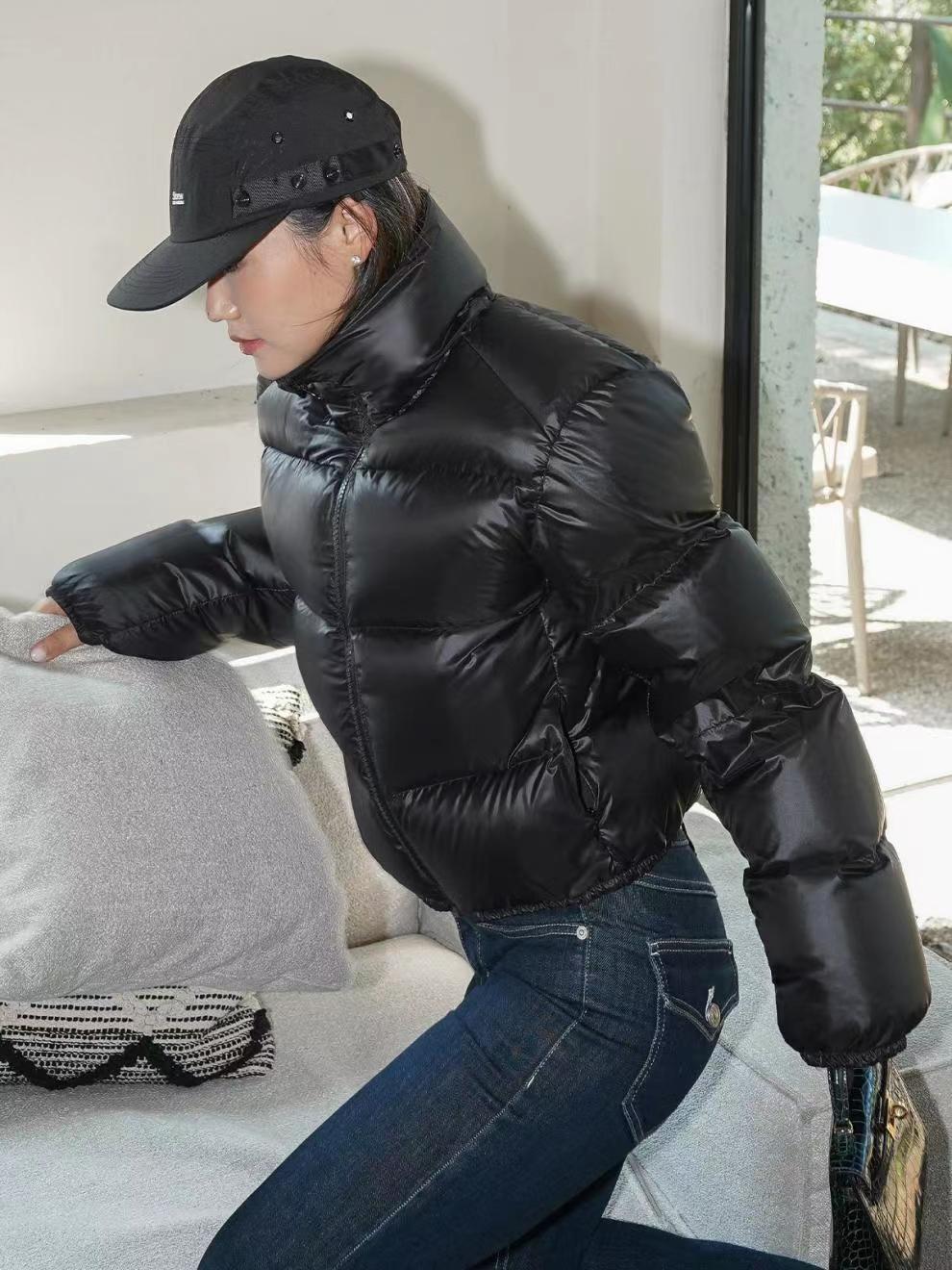 Новинка от Amazon, короткая утолщенная куртка с хлопковой подкладкой с тремя защитными вставками, маленький хлебный костюм с вертикальным воротником, Европейская и американская верхняя одежда, женская одежда