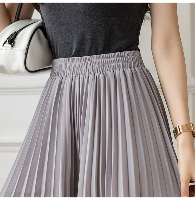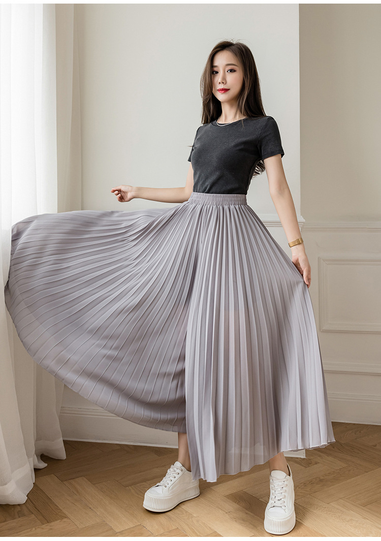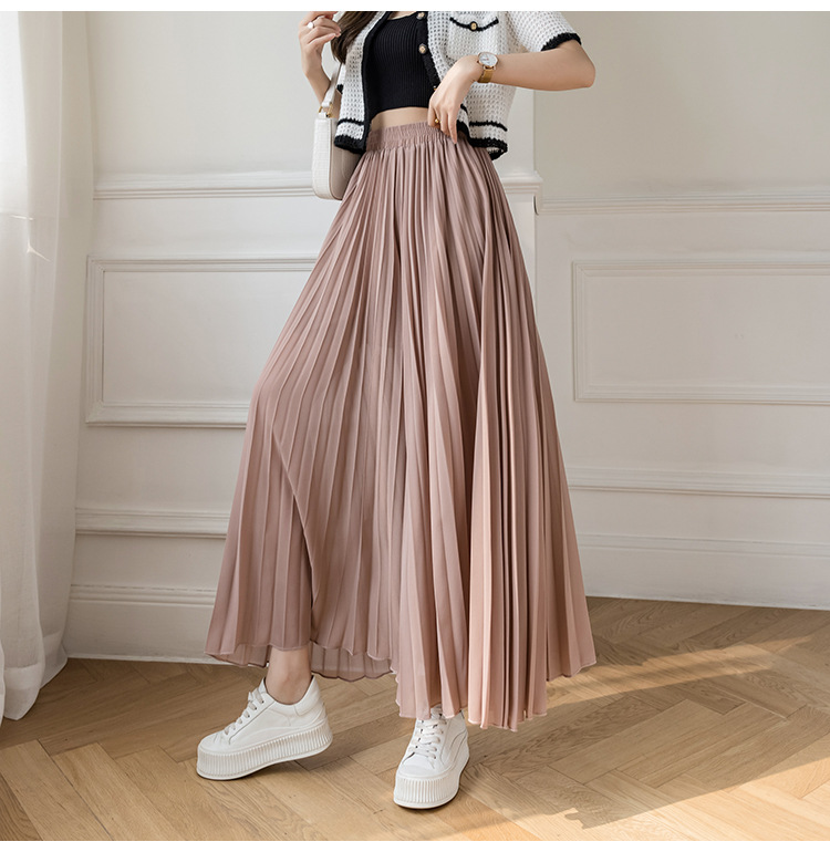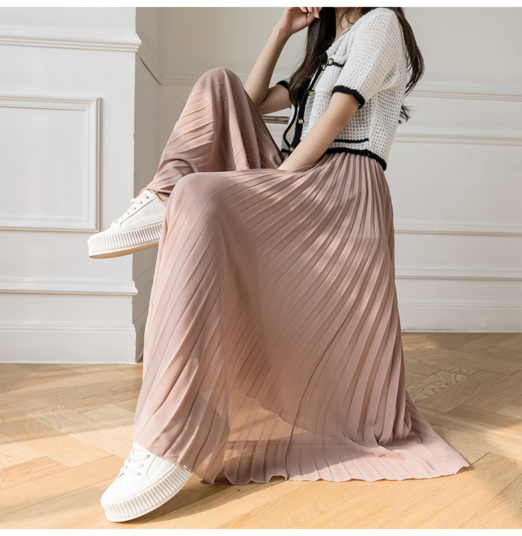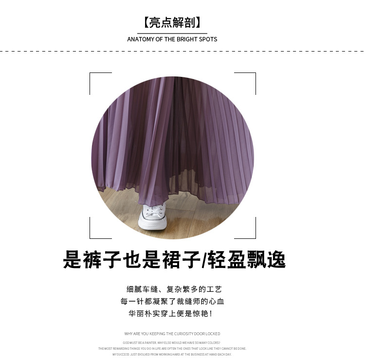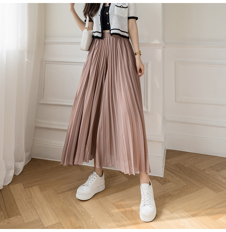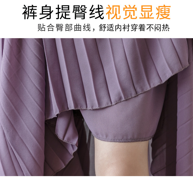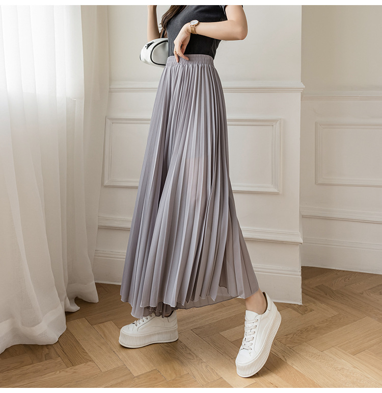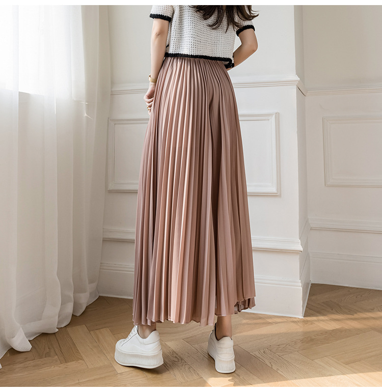 Настоящий снимок летних свободных плиссированных шифоновых широких брюк для женщин, брюк с девятью точками, прямых брюк с юбкой с высокой талией