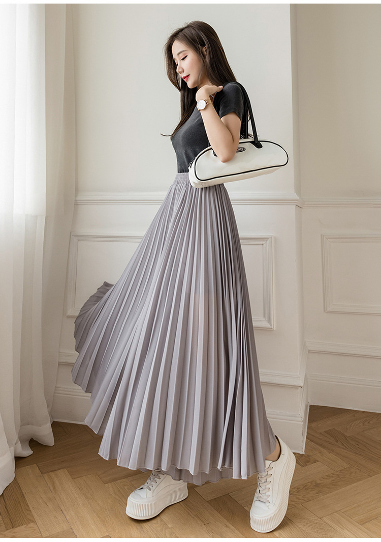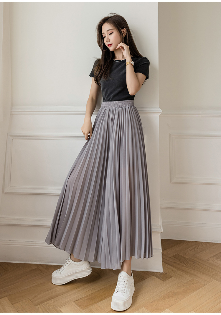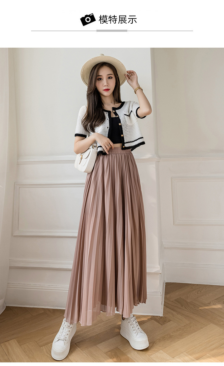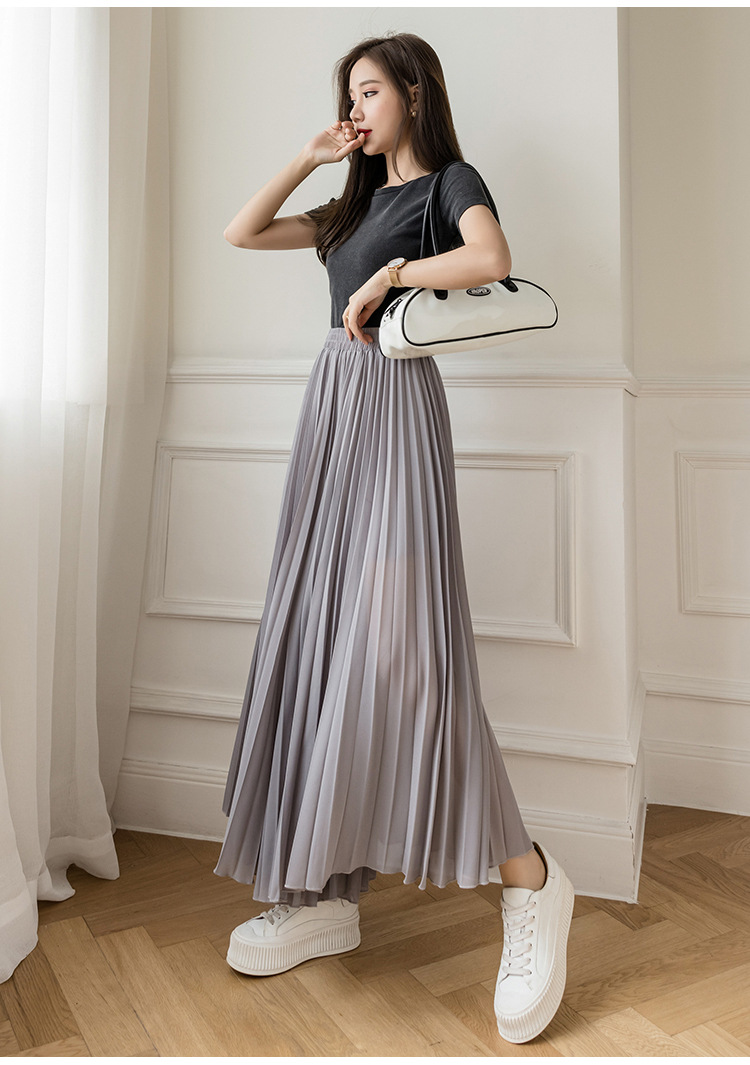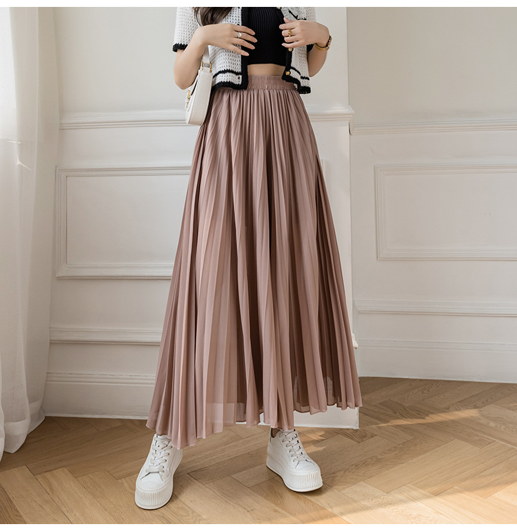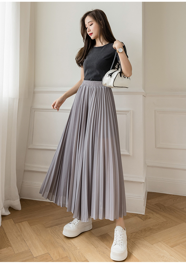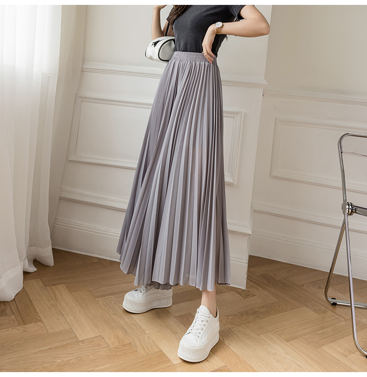 Настоящий снимок летних свободных плиссированных шифоновых широких брюк для женщин, брюк с девятью точками, прямых брюк с юбкой с высокой талией