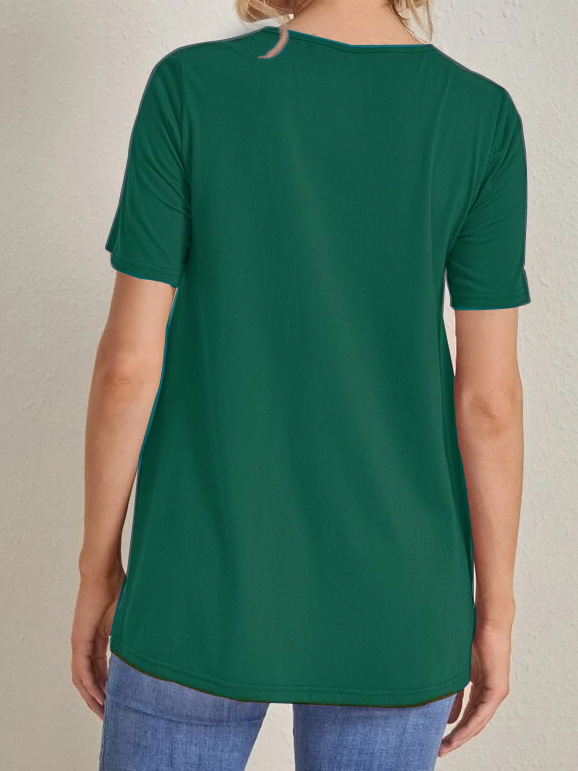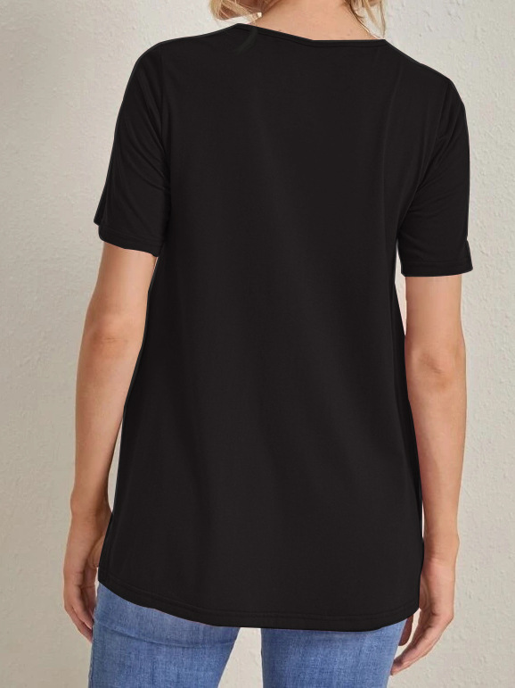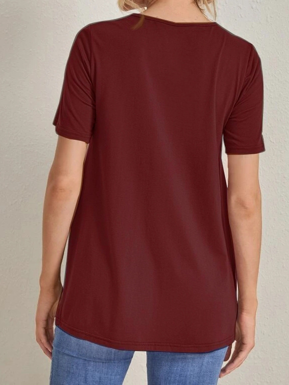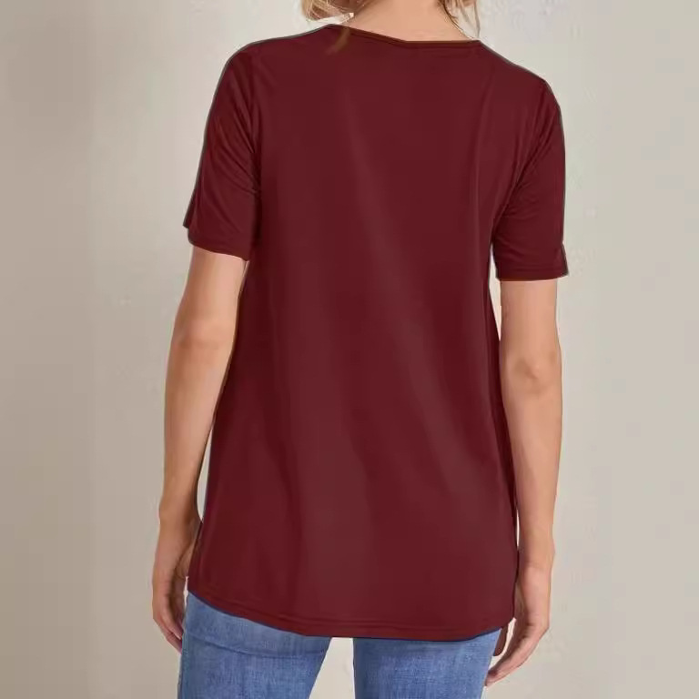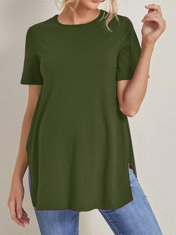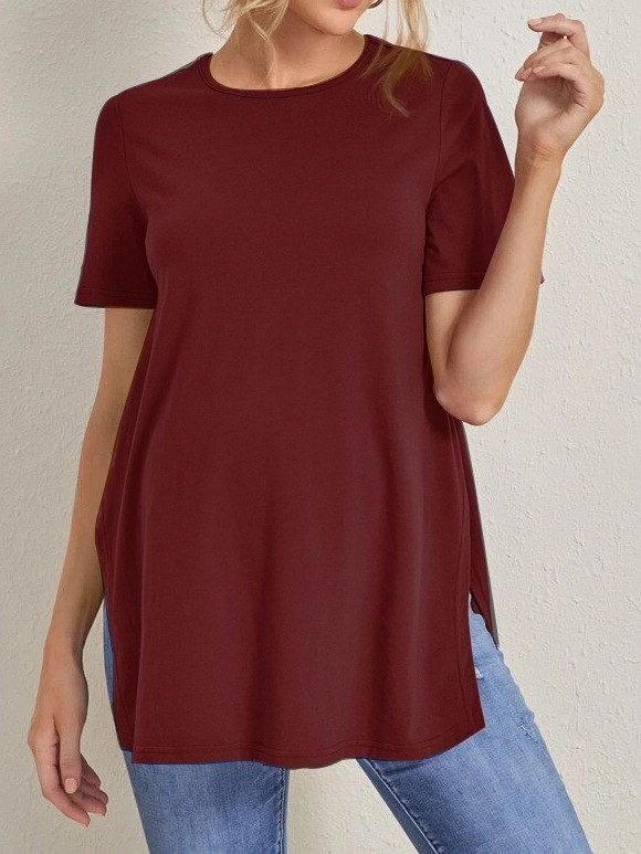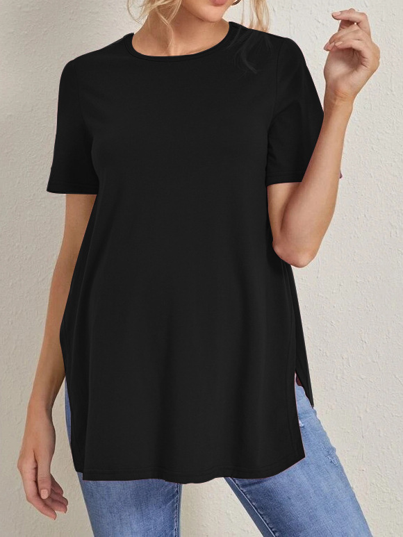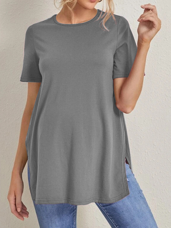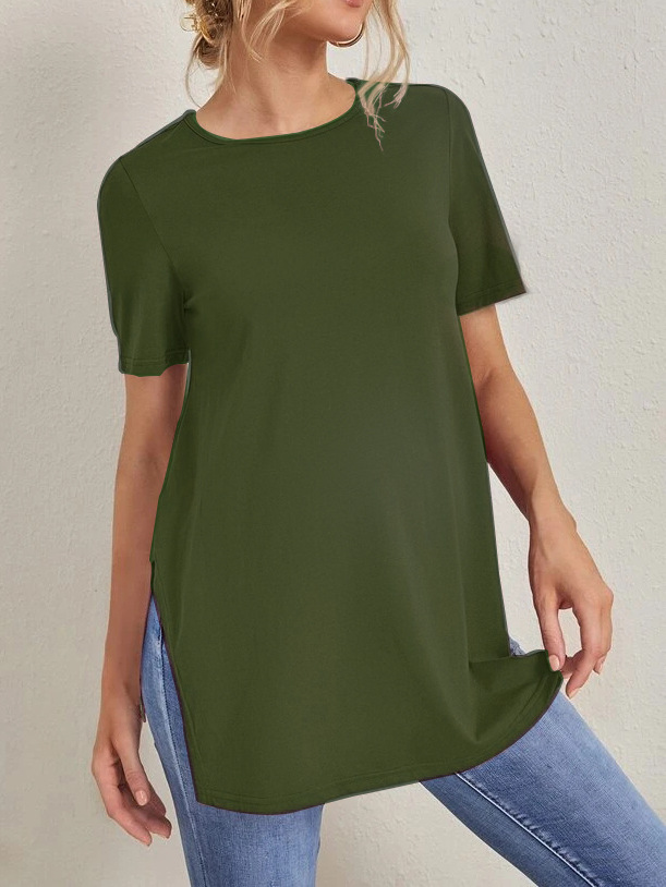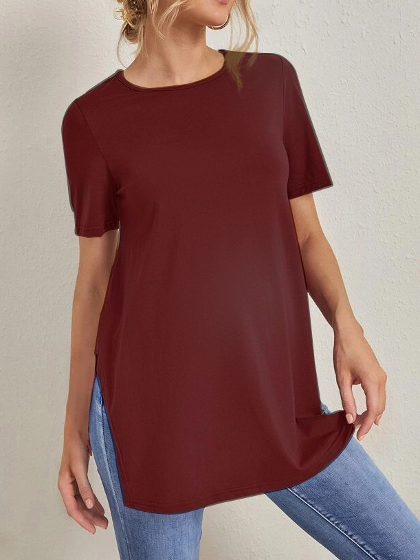 2023 Новый трансграничный модный однотонный топ с круглым вырезом и разрезом Amazon Joker для беременных с короткими рукавами
