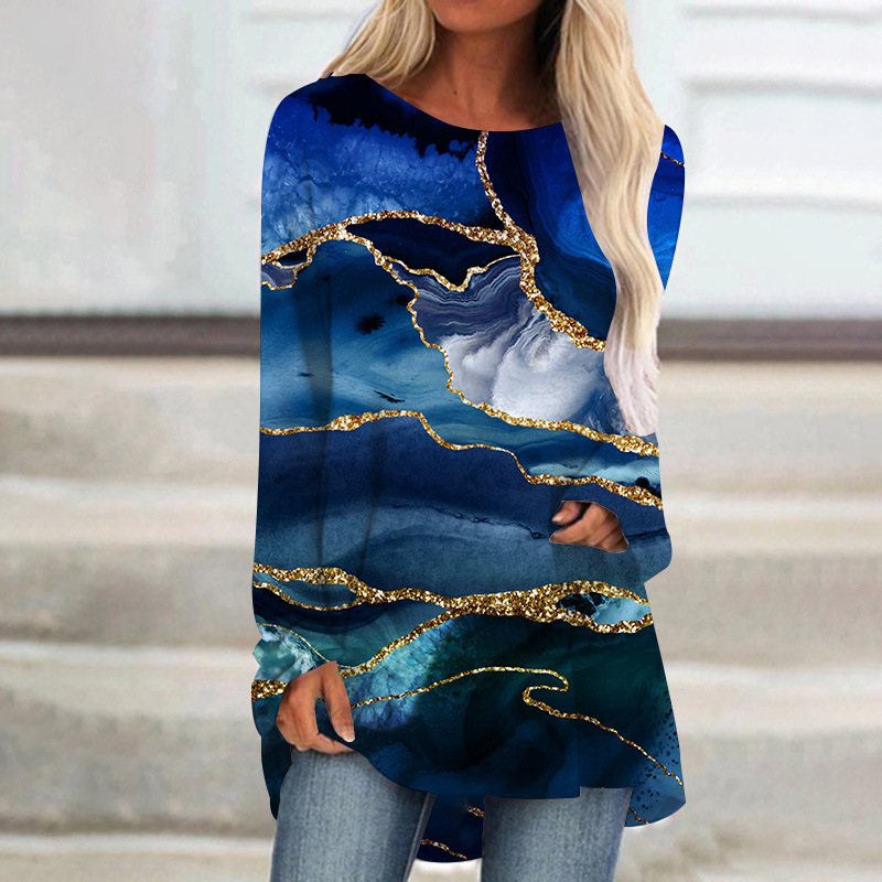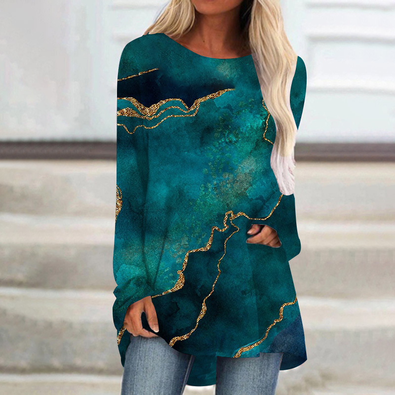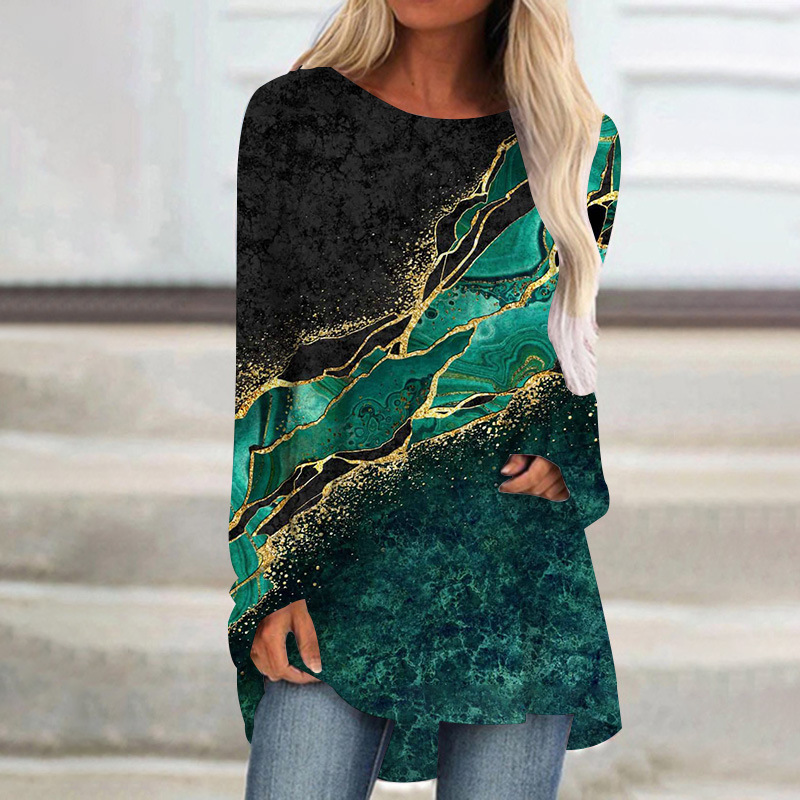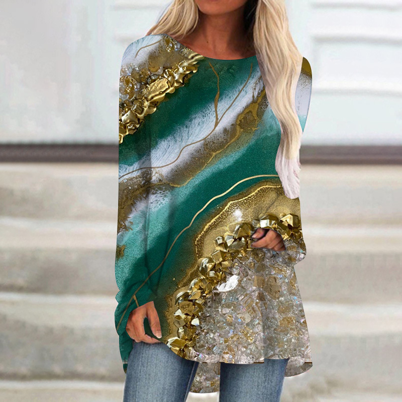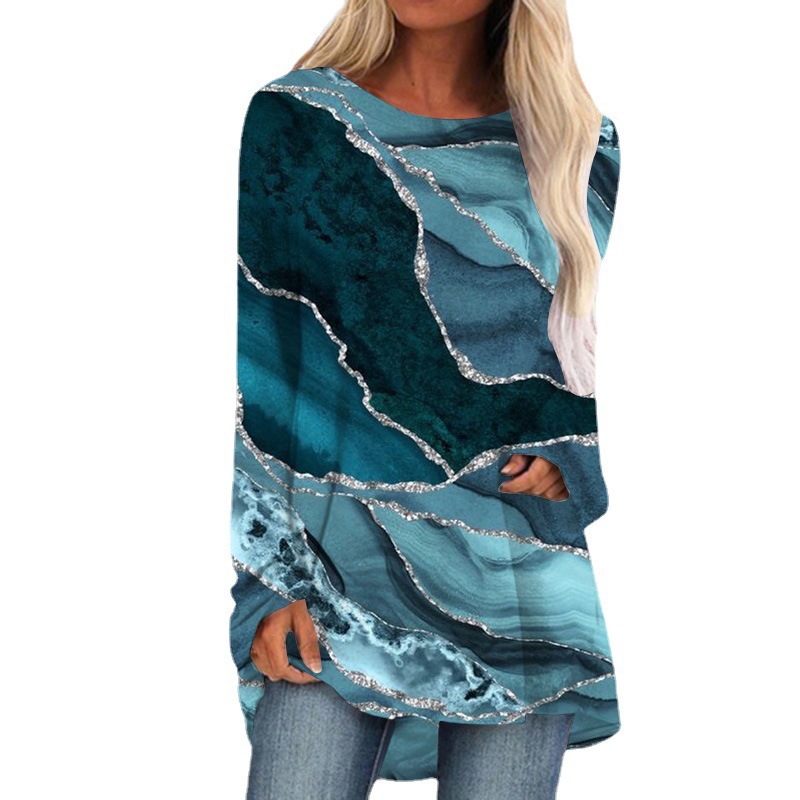 Женский свитер AliExpress с 3D цифровым принтом Amazon на весну и осень, Повседневный свитер с несколькими пейзажными узорами и длинным рукавом и круглым вырезом