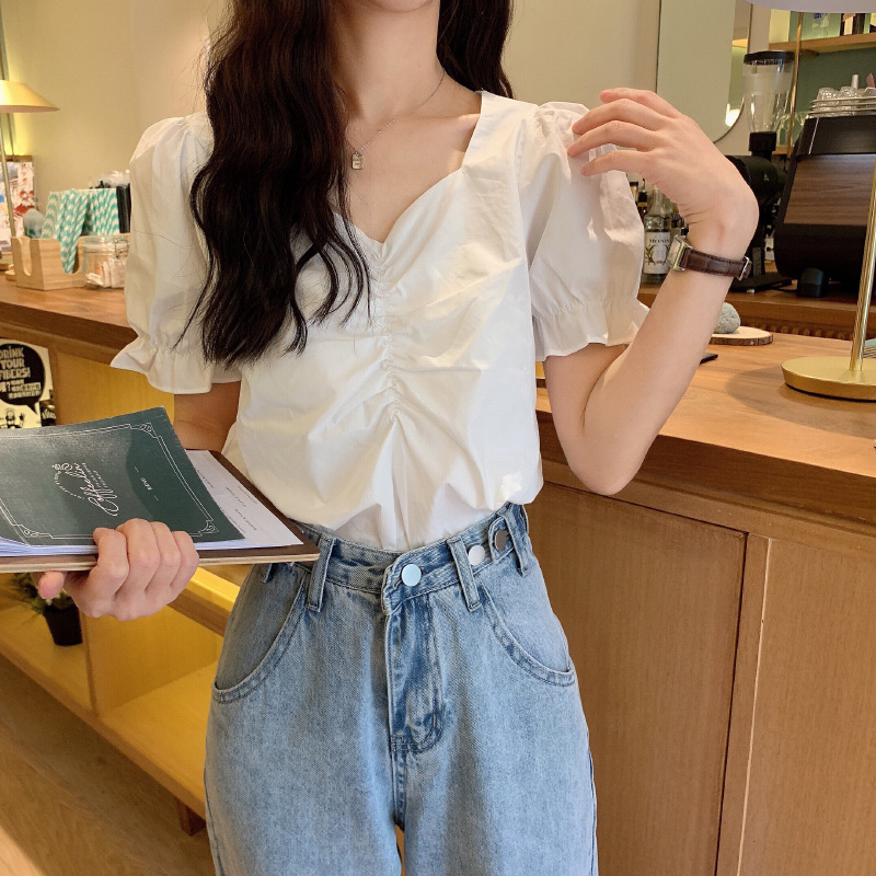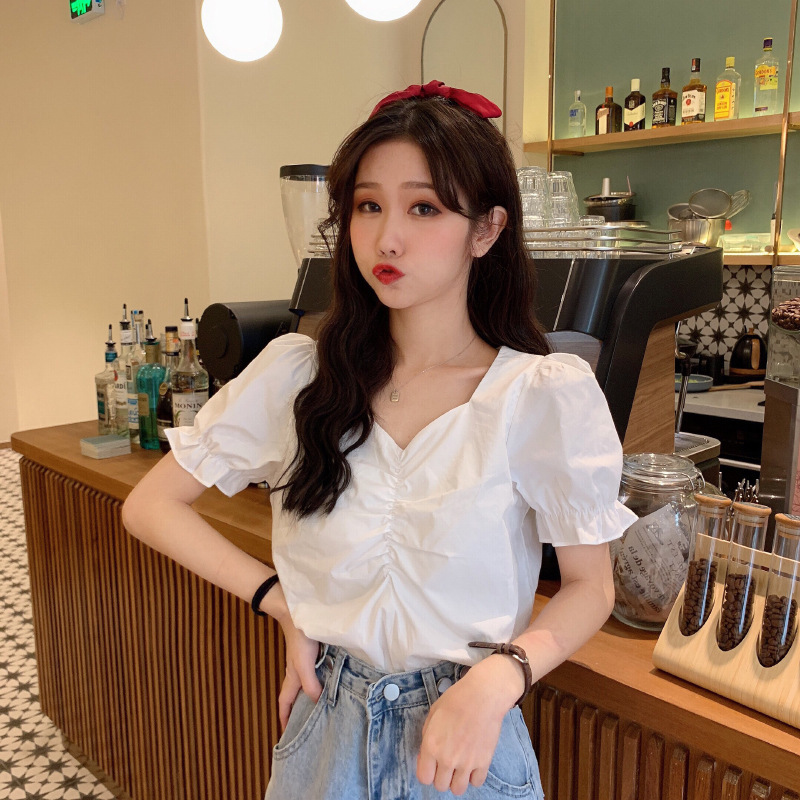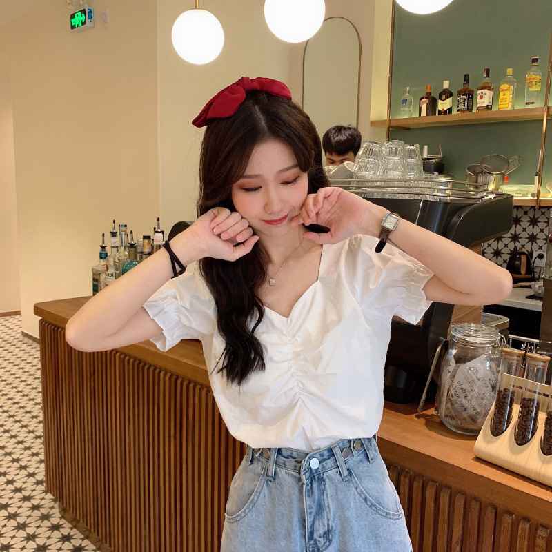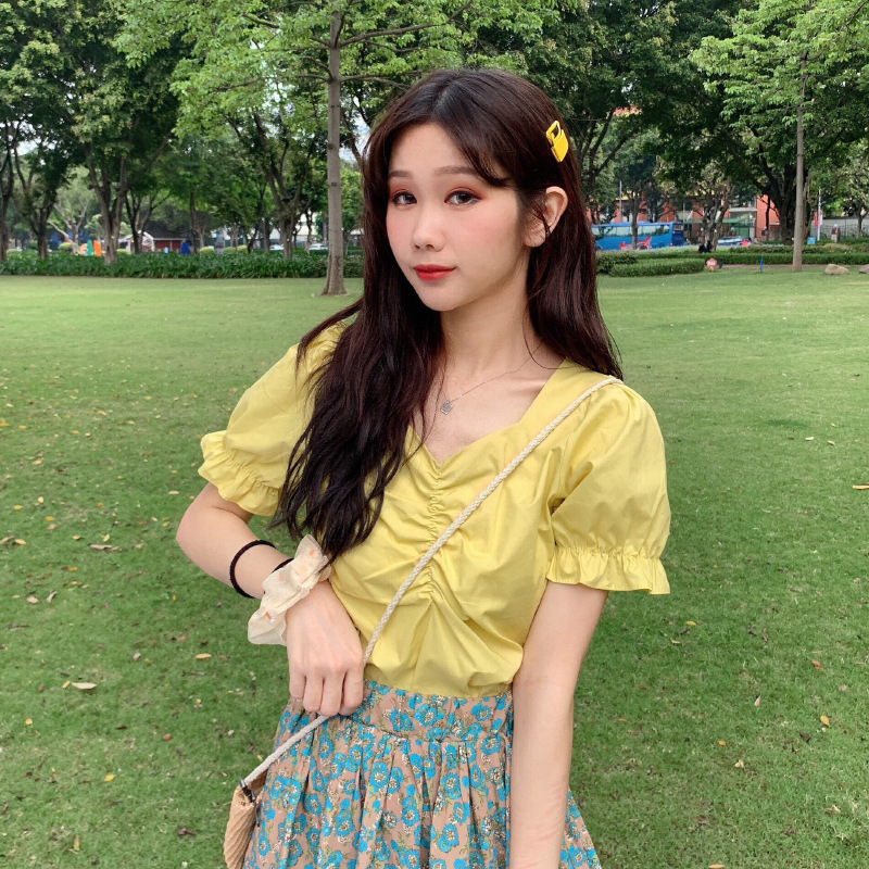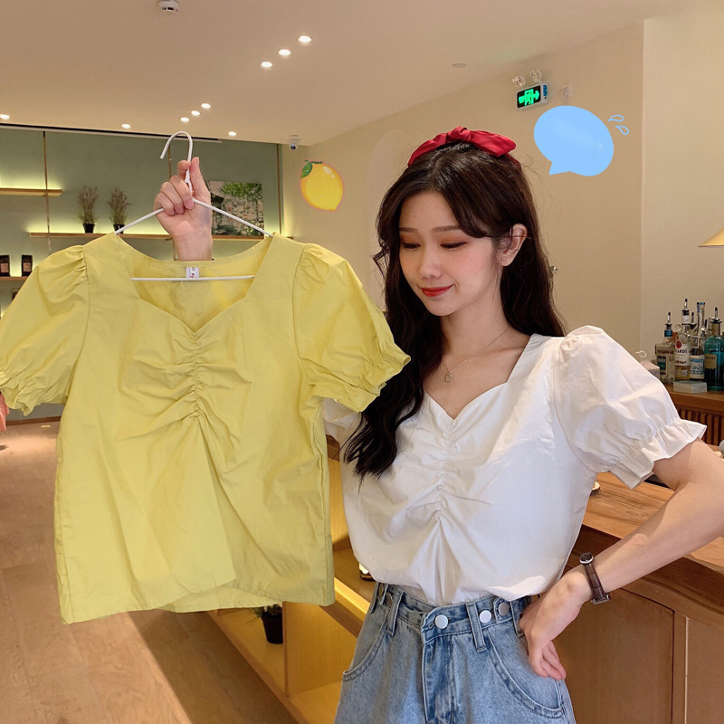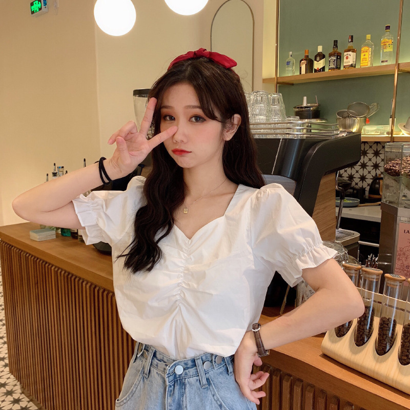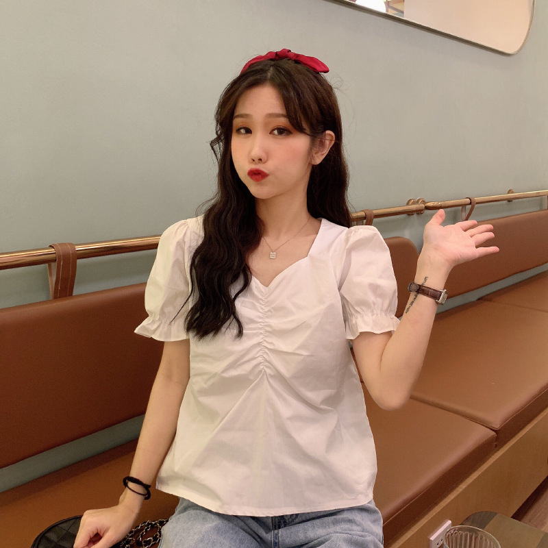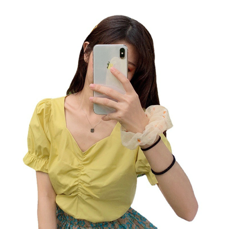 Женская рубашка с первым пенопластовым рукавом, новый дизайн, летняя стильная короткая рубашка из французского шифона, топ для женщин