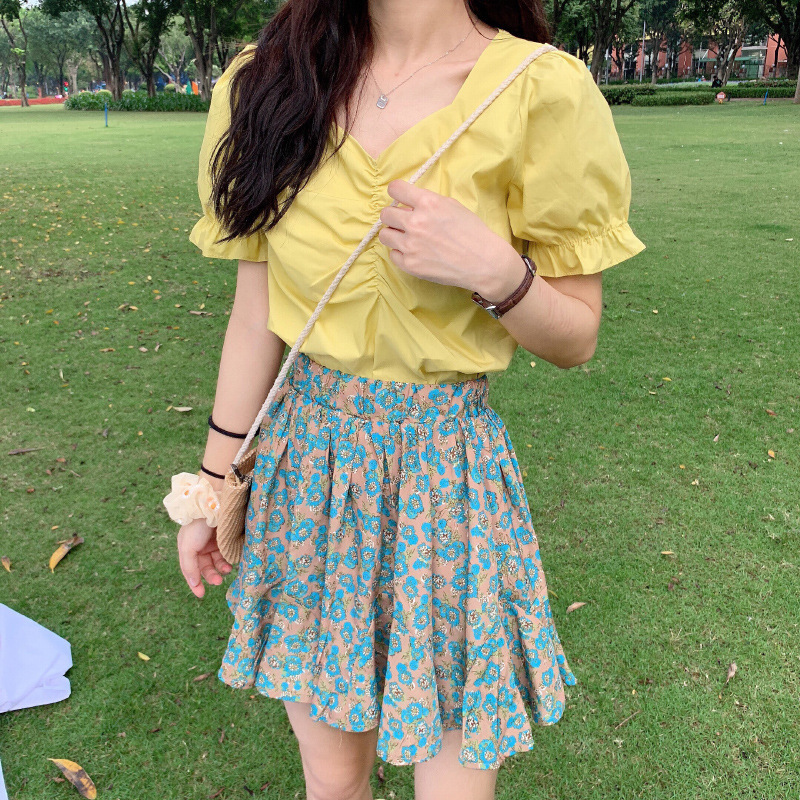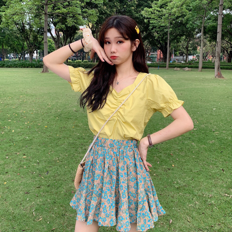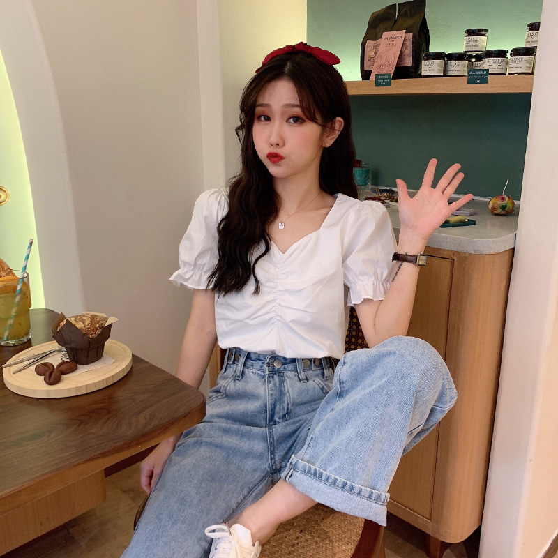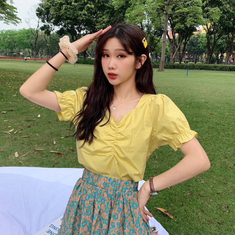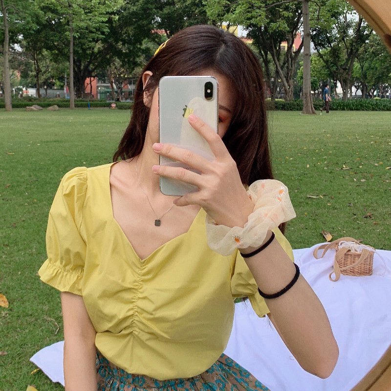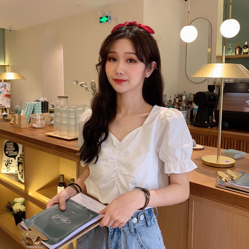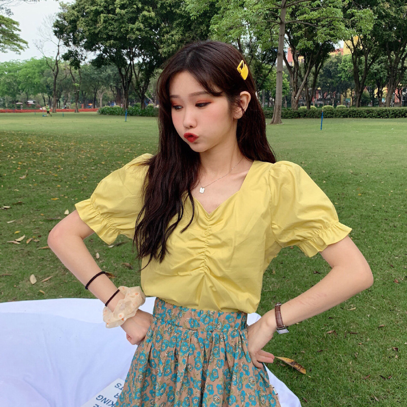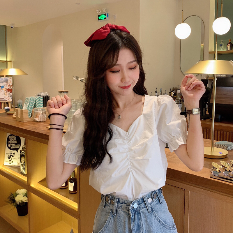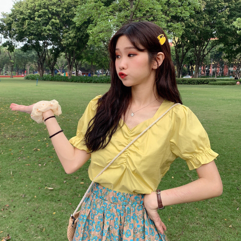Женская рубашка с первым пенопластовым рукавом, новый дизайн, летняя стильная короткая рубашка из французского шифона, топ для женщин