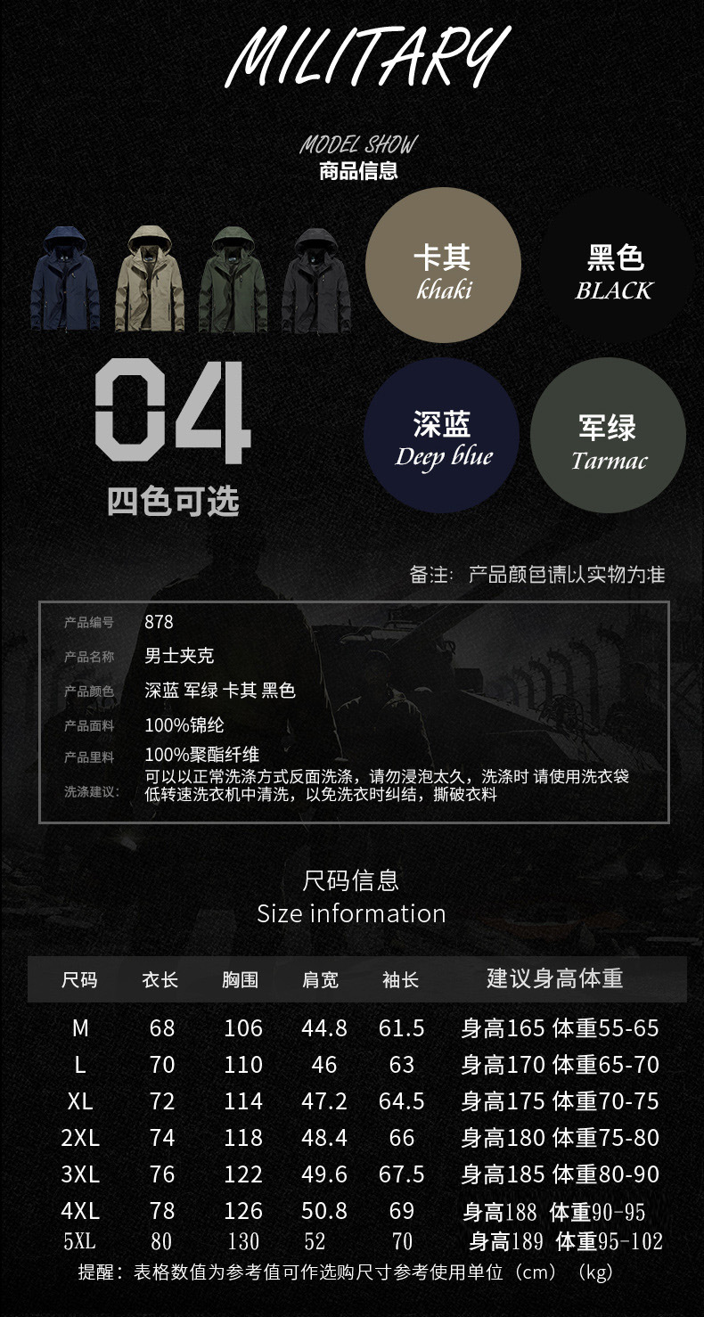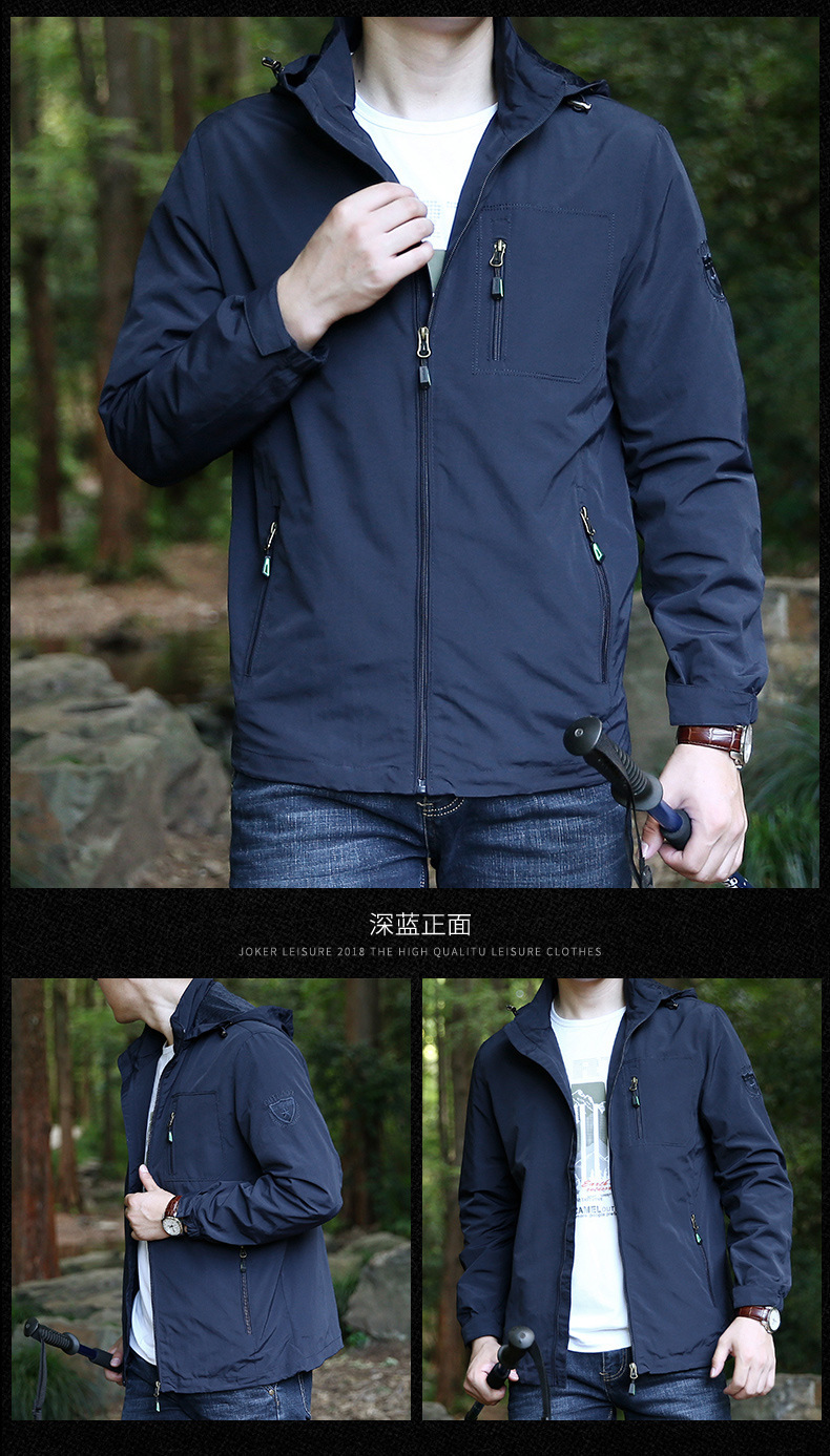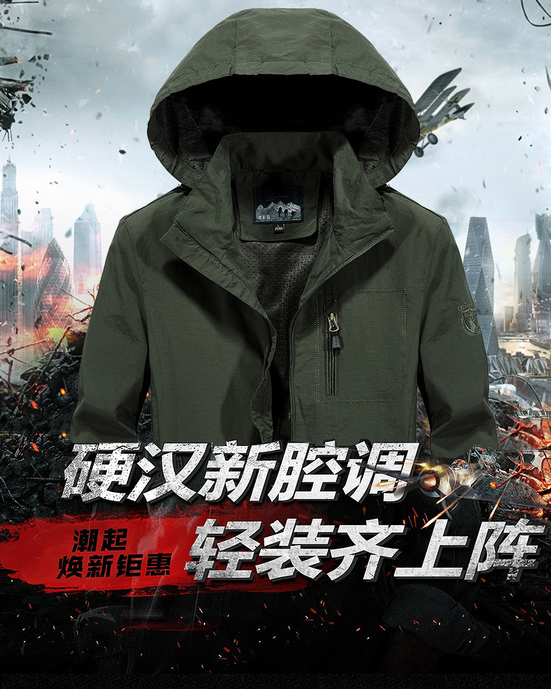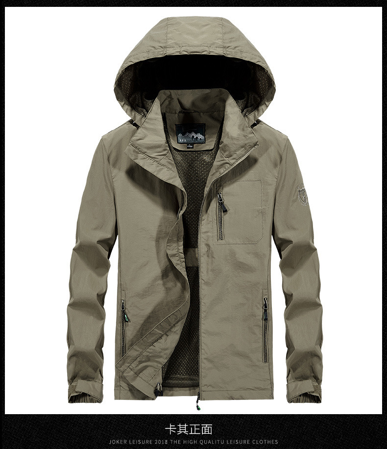 Весна и осень тонкая однотонная вышитая рабочая одежда с капюшоном Военная уличная дорожная куртка для отдыха мужская куртка пальто
