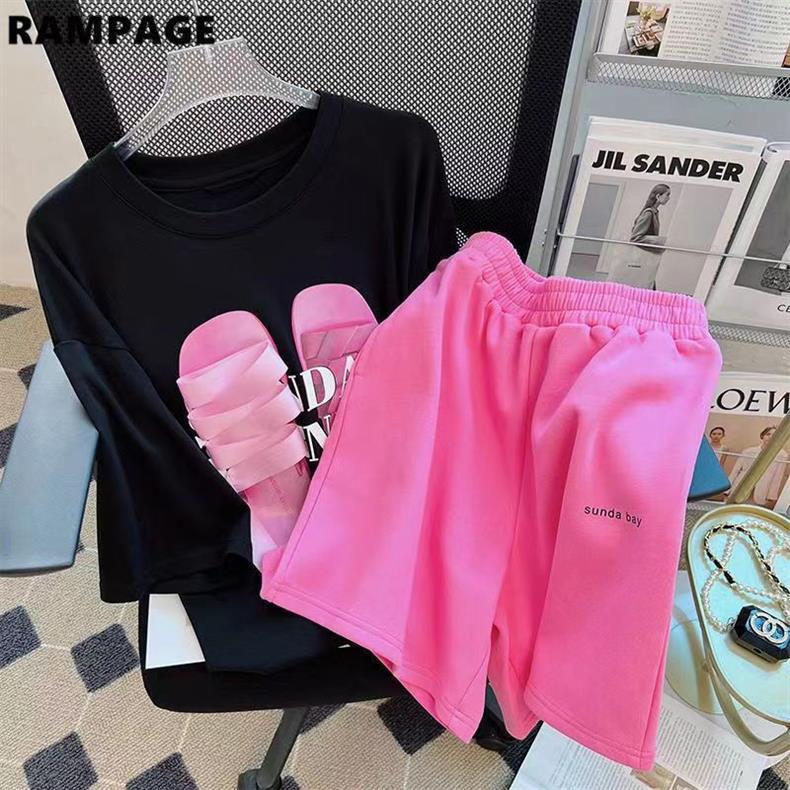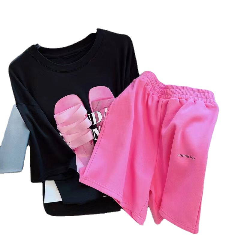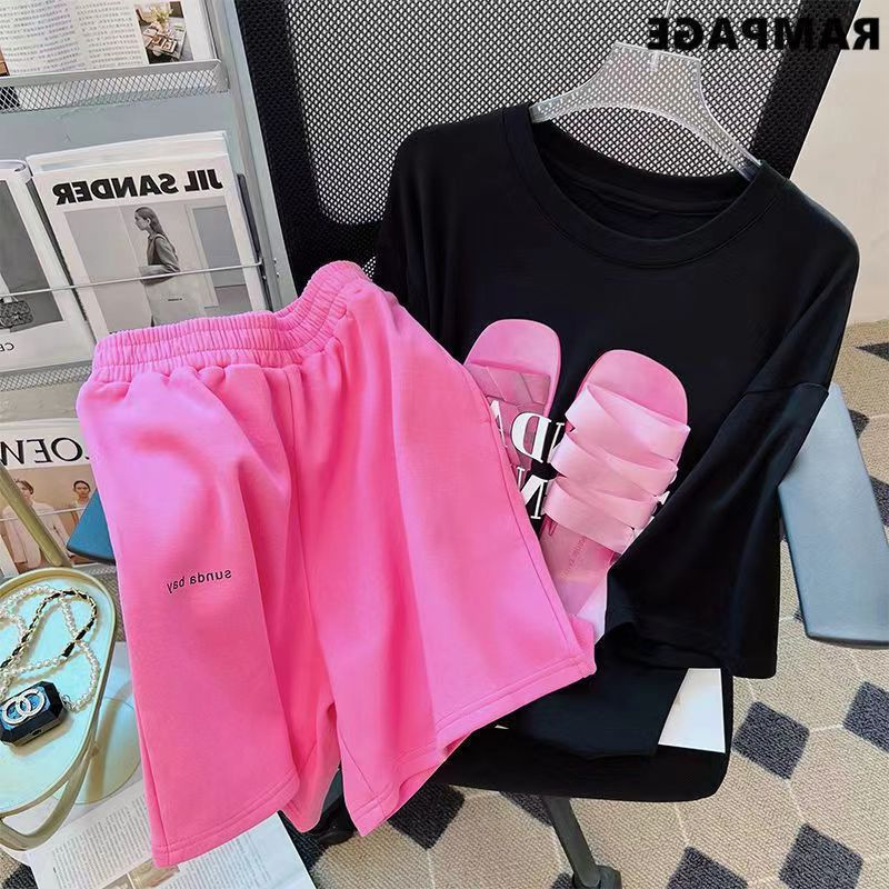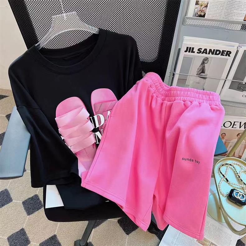 2023 Летний Новый нишевый спортивный костюм в Корейском стиле, повседневные универсальные шорты, с короткими рукавами из двух предметов, модные женские