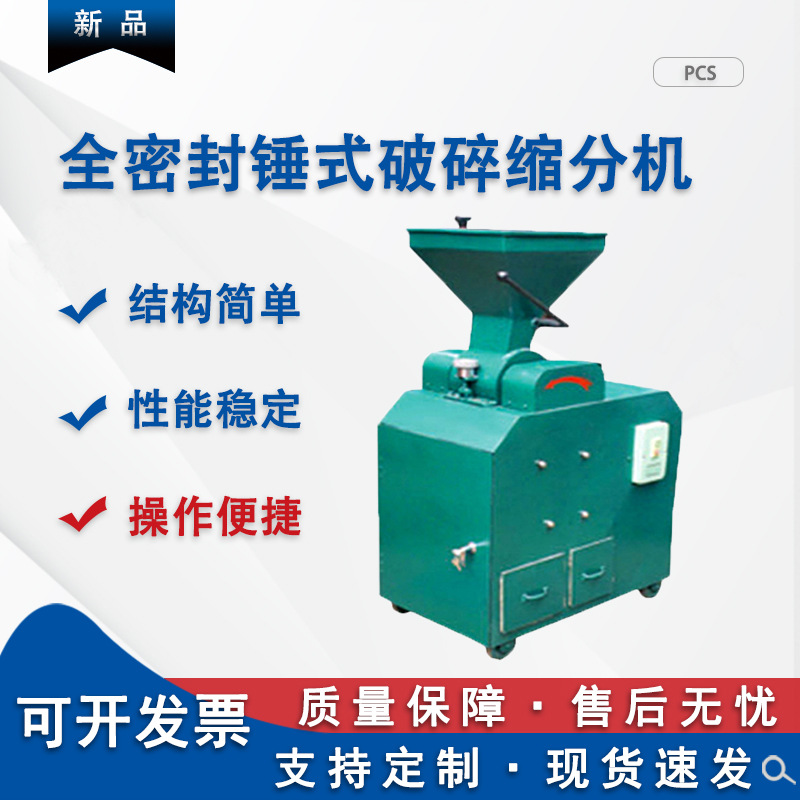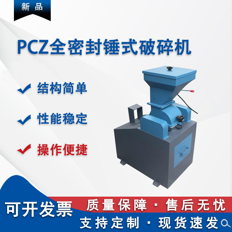 全密封设计,无粉尘污染,符合整洁要求、破碎工作腔为合金结构钢材料,长时间打磨使用,可以防止样品污染和过热、全宽度高锰钢锤头,对物料进行全断面破碎,工作腔不堵塞,无死角存样现象、破碎比大,出料粒度均匀。不损失料样水分、操作、清扫、维护均十分方便,底部有脚轮,移动方便。传动部件有防护设施,符合防护生产要求。