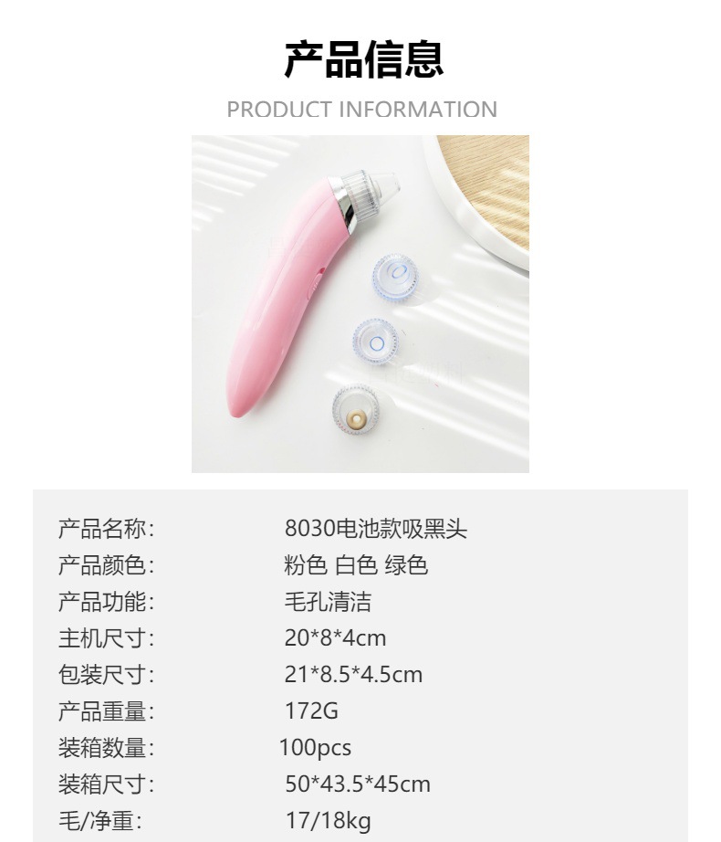 Нос аппаратуры красоты уборщика поры угорь 8030 батарей лицевой очищая лицевое удаление угорь