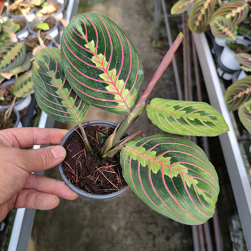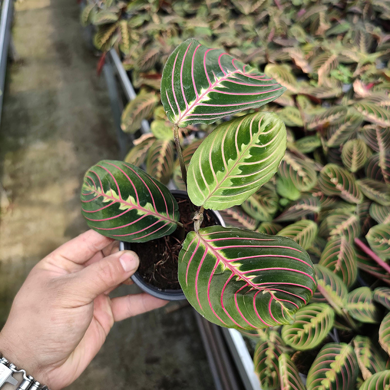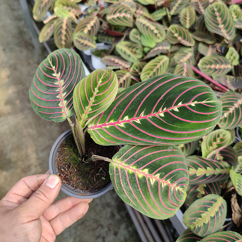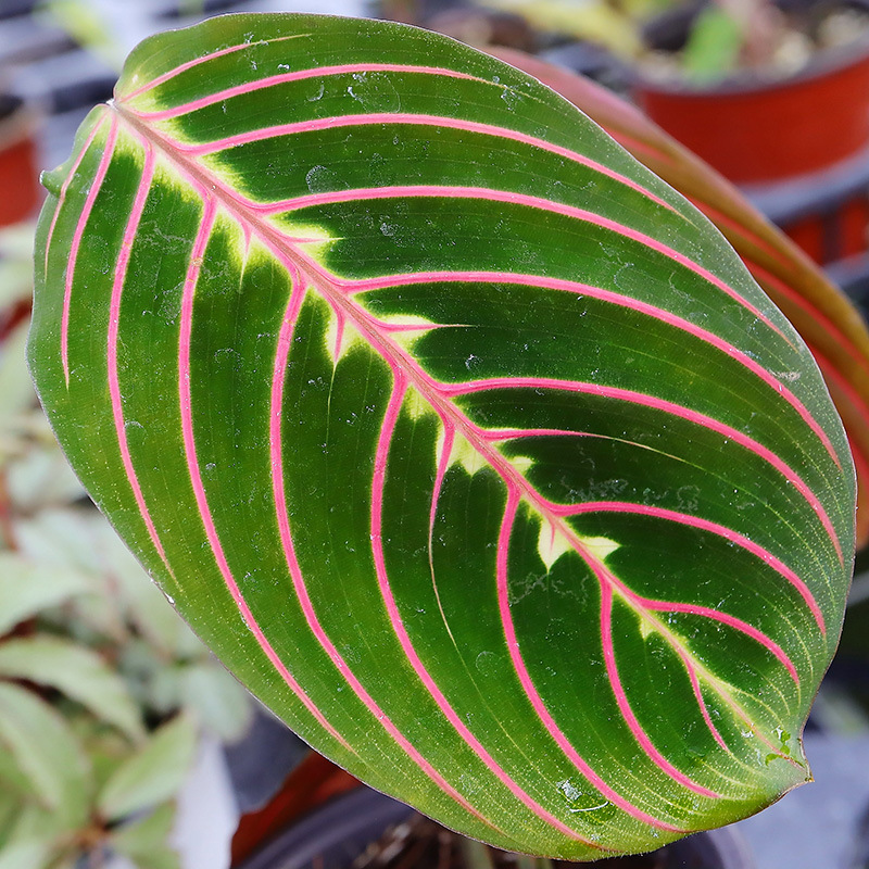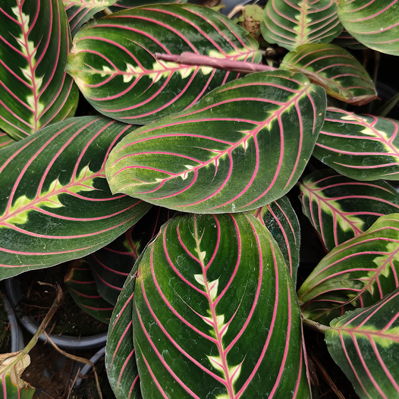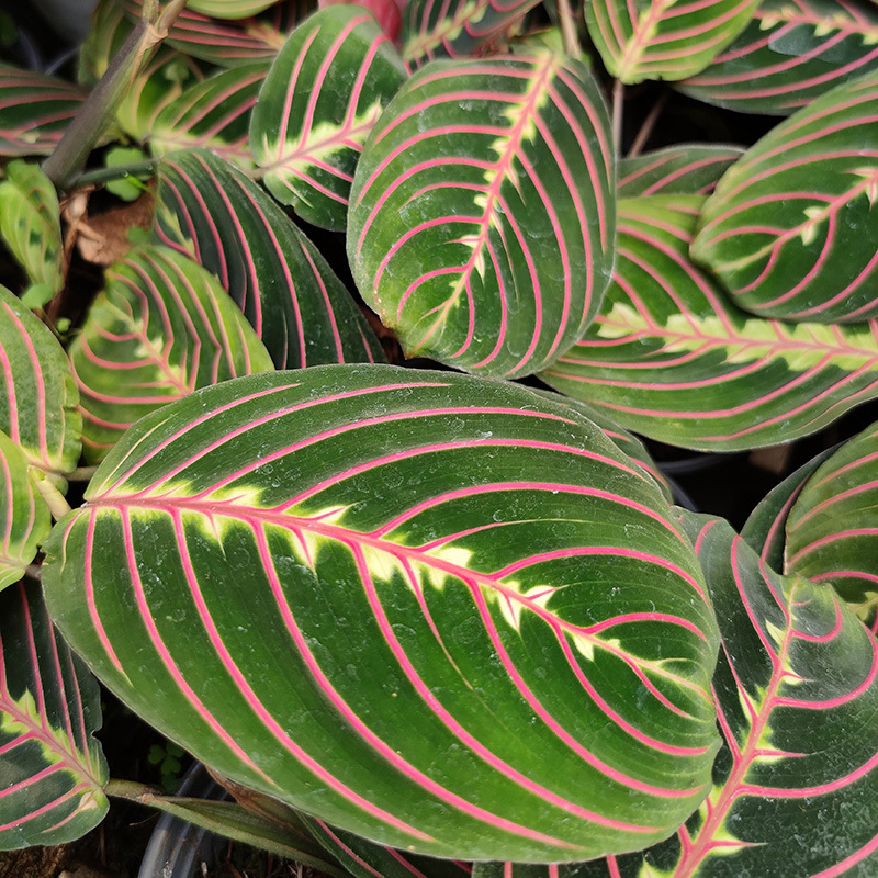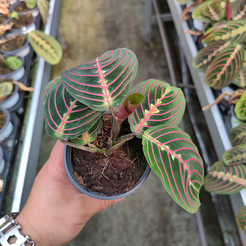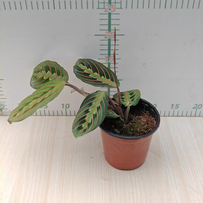 - 叶片:叶蝉竹芋的叶片形似蝉翼,叶面凹凸不平,具有独特的质感。叶片上通常有鲜红的红色叶脉,搭配着深绿色、翠绿色和碧绿色的斑纹,颜色鲜艳且具有较高的观赏性。