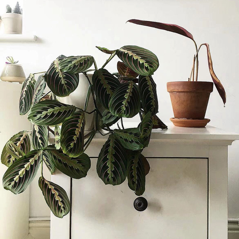 - 植株:叶蝉竹芋是竹芋品类中较为少见的匍匐生长类植物,茎叶会匍匐在土面上生长,也可将它悬挂起来,养成吊盆植物。