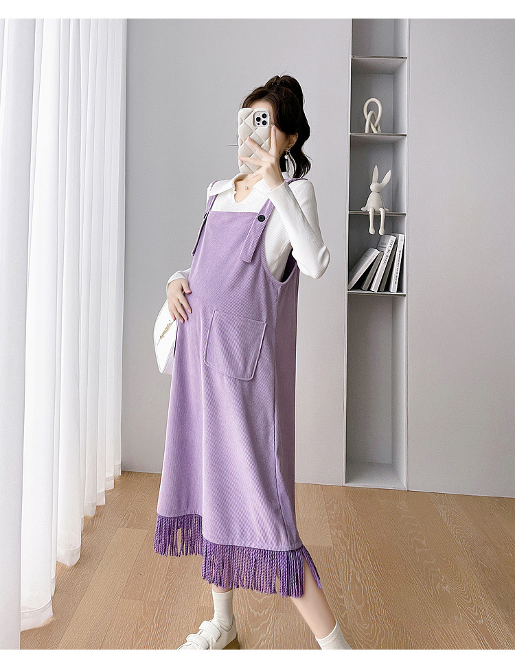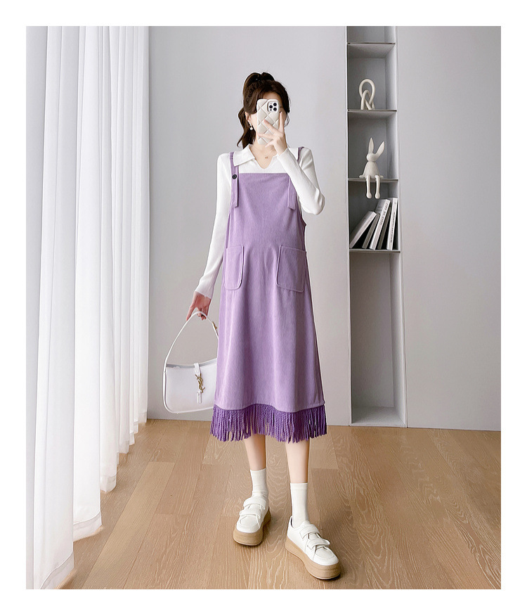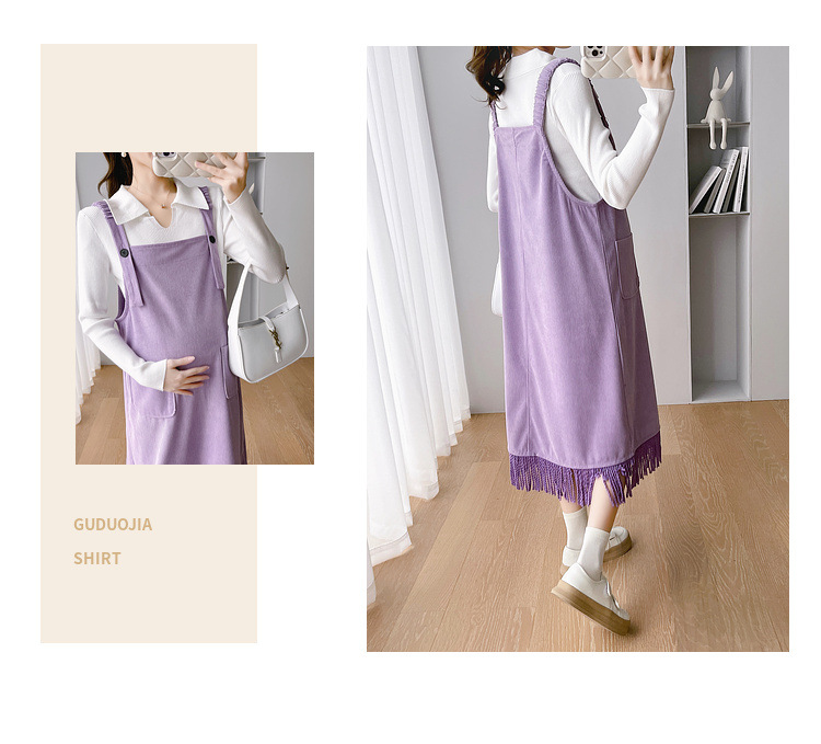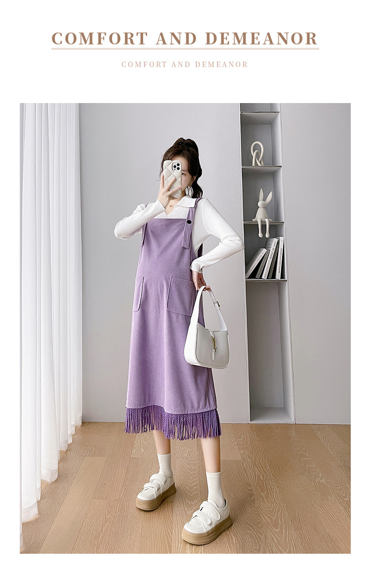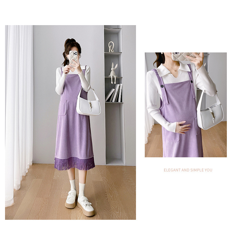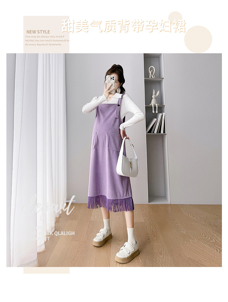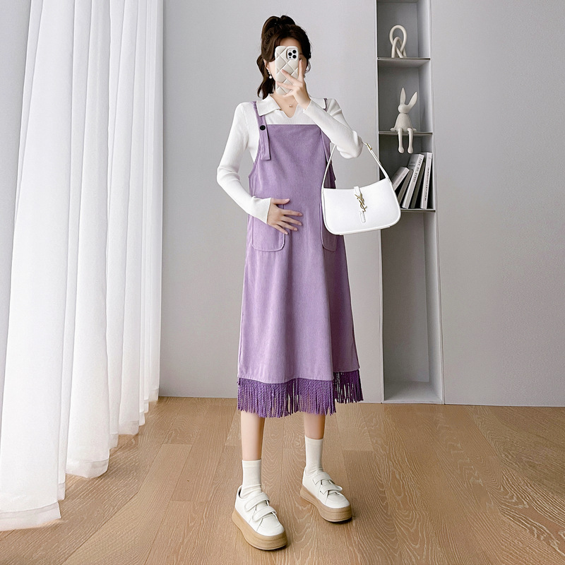 Одежда для беременных Весенняя одежда костюм платье Модное приталенное модное платье для мамы на весну и осень Модное платье из двух частей на подтяжках
