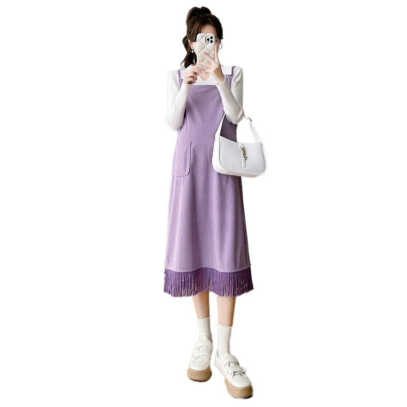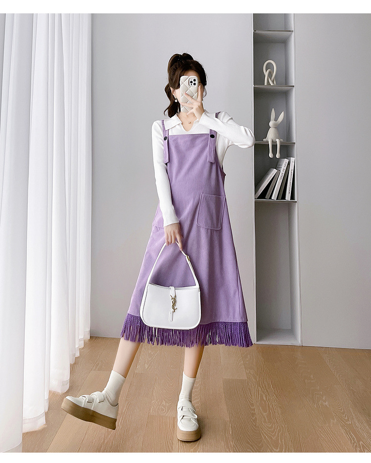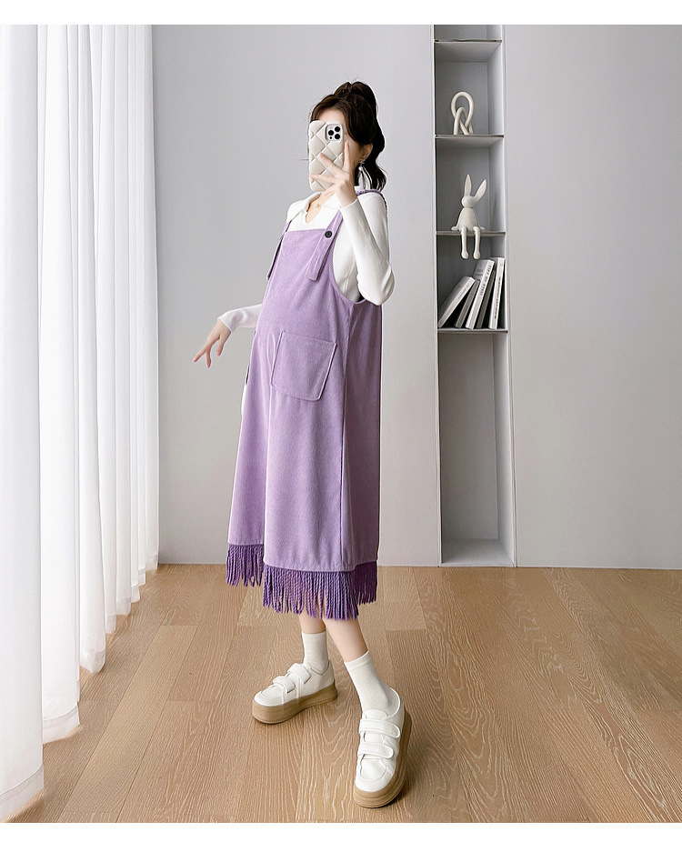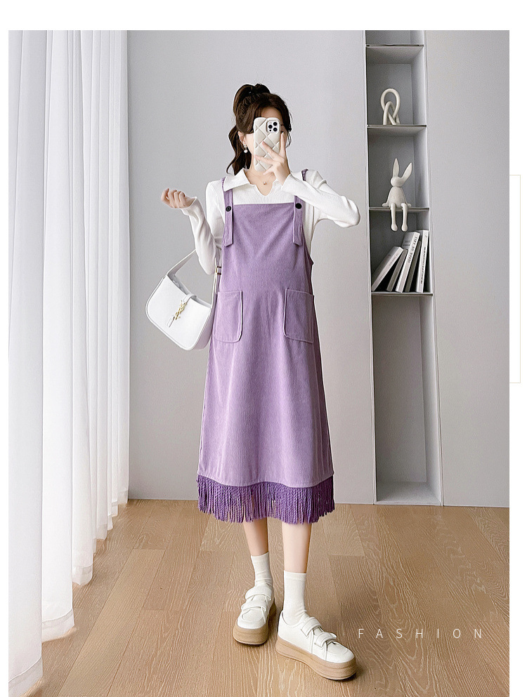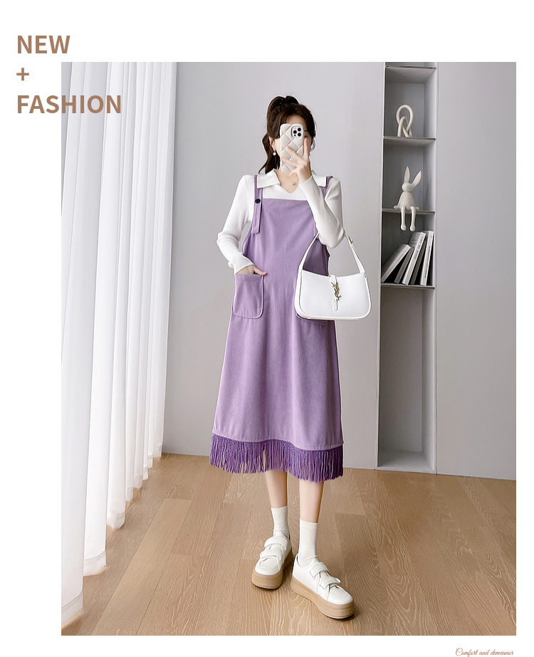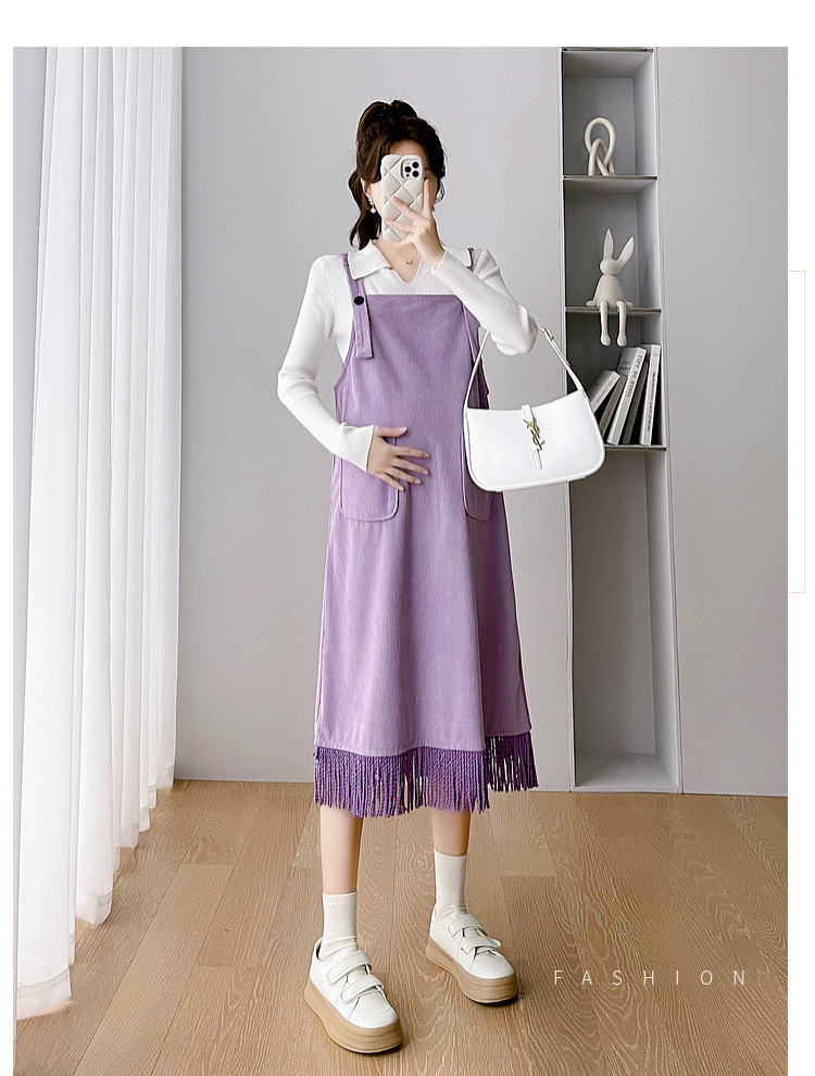 Одежда для беременных Весенняя одежда костюм платье Модное приталенное модное платье для мамы на весну и осень Модное платье из двух частей на подтяжках
