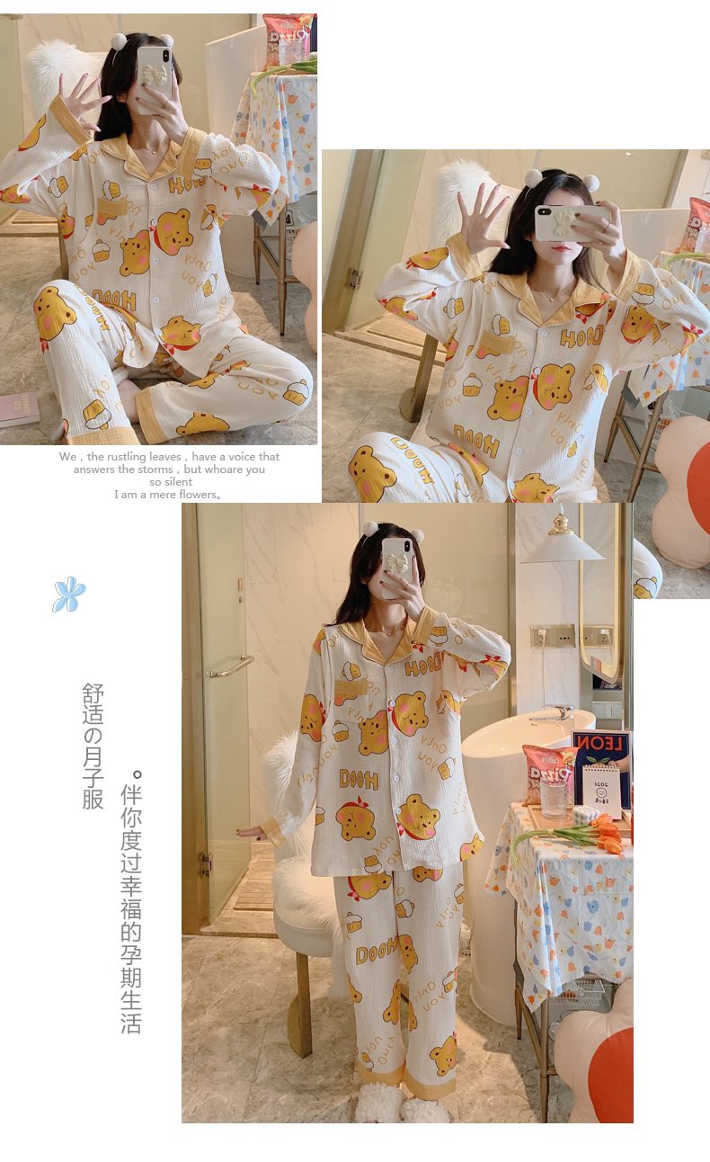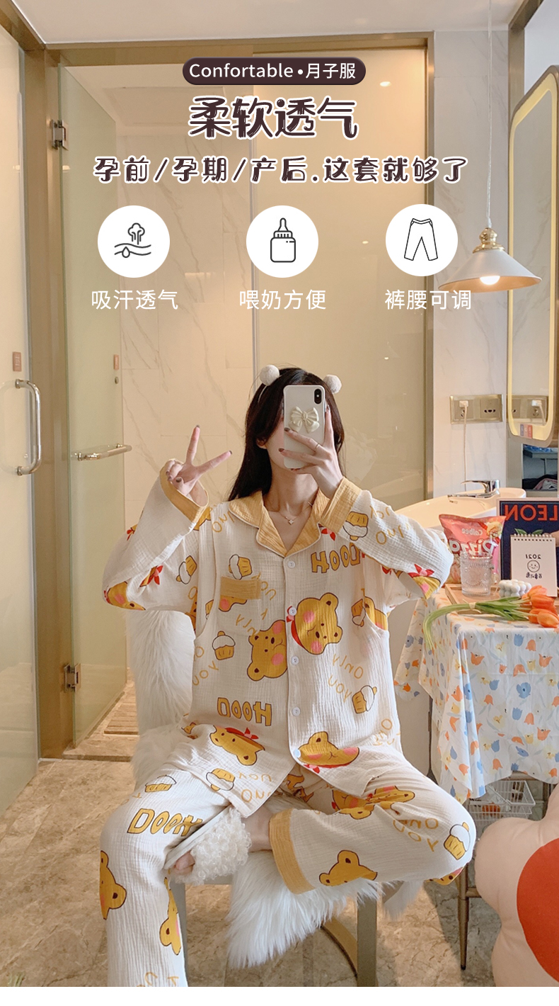 Пижама для беременных летняя тонкая марлевая месячная одежда весна-осень чистый хлопок Март беременность Послеродовая лактация 4 родильницы