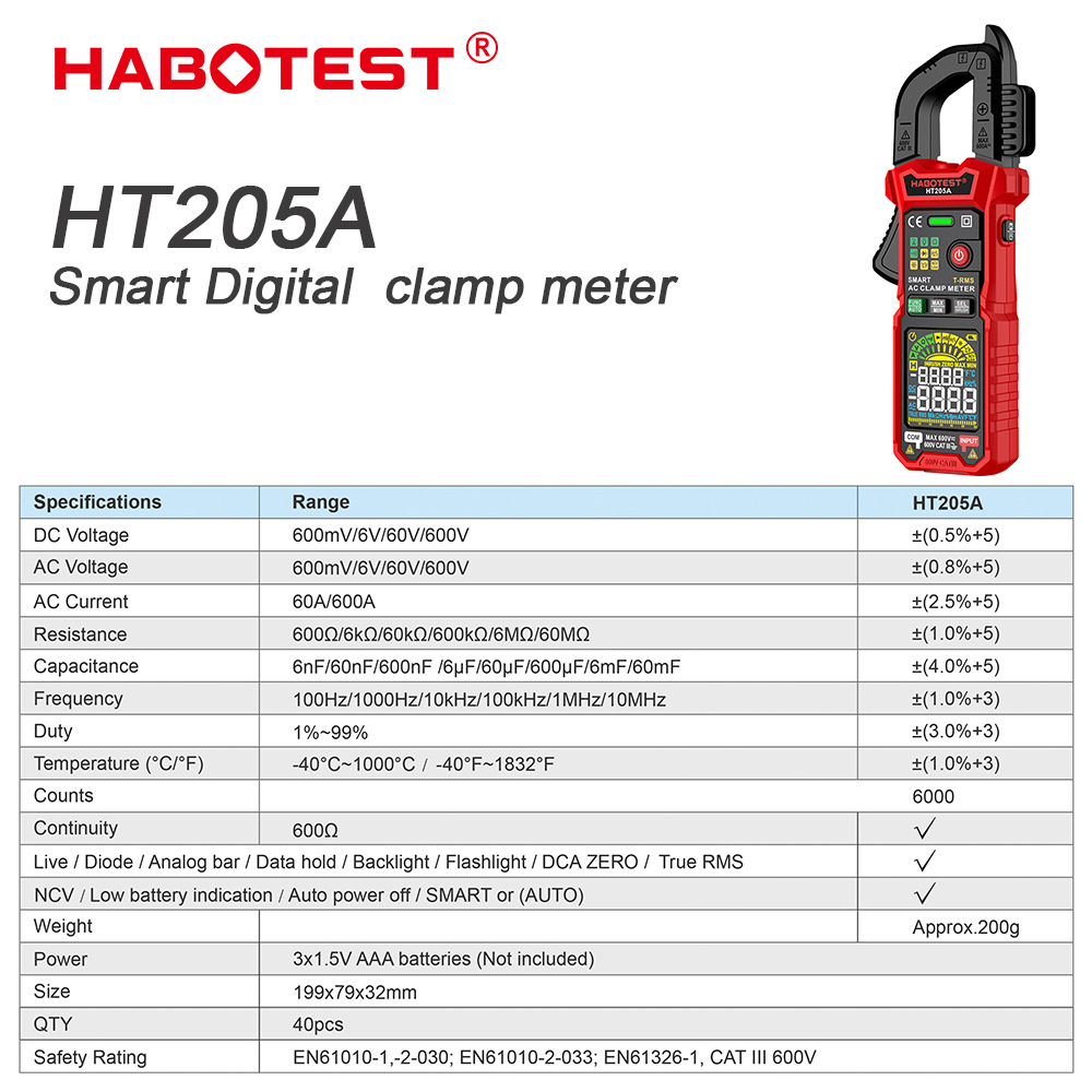 HABOTEST Заводской магазин HT205A зажимные часы Высокая точность истинного эффективного значения Интеллектуальный антигоревший многофункциональный зажимный стол