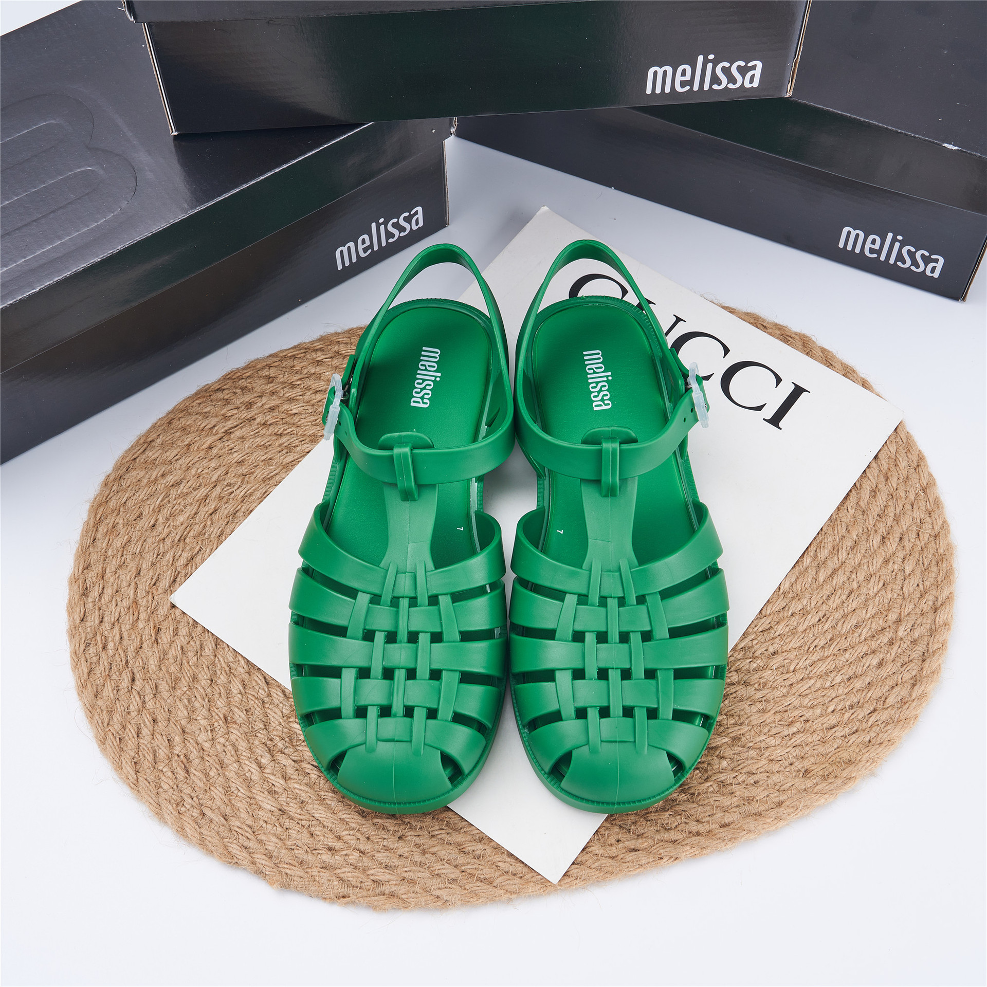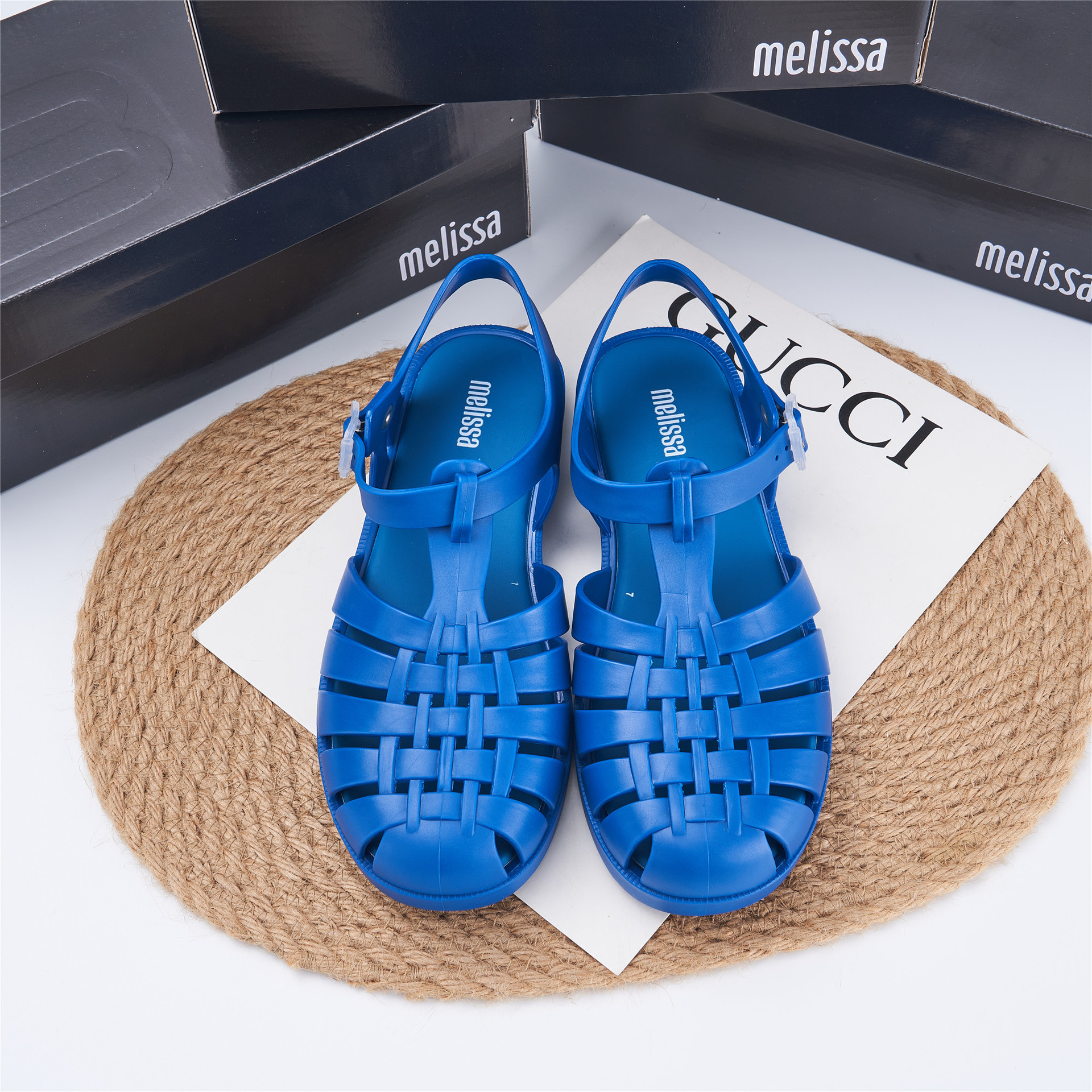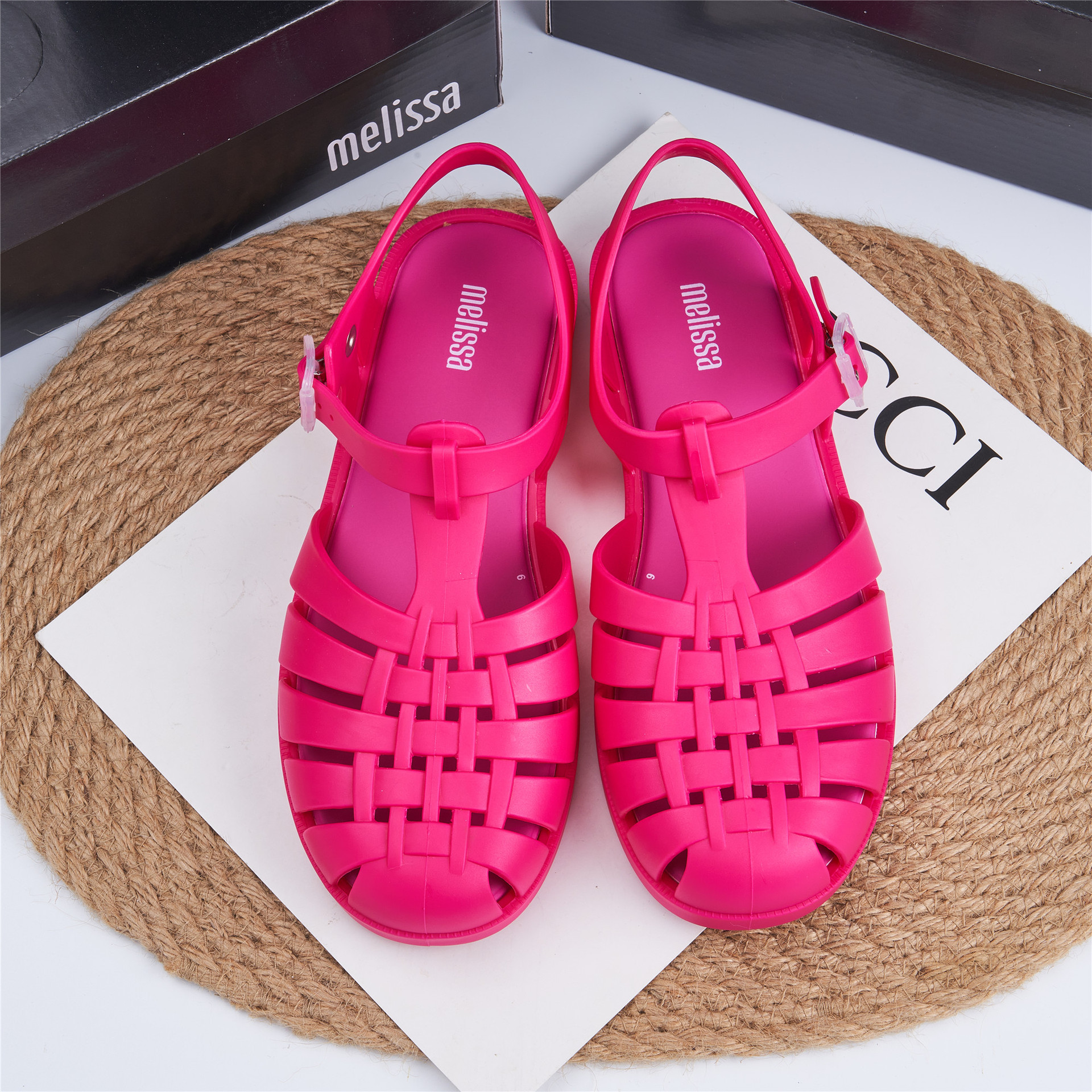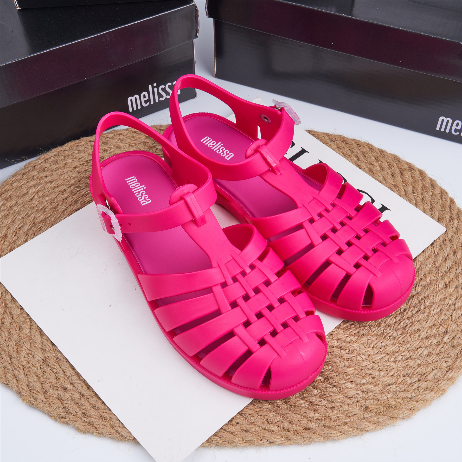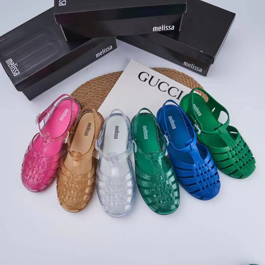 2023 Сандалии Melissa Римские плетеные сандалии с круглым носком и вырезами, женская обувь, пляжная обувь