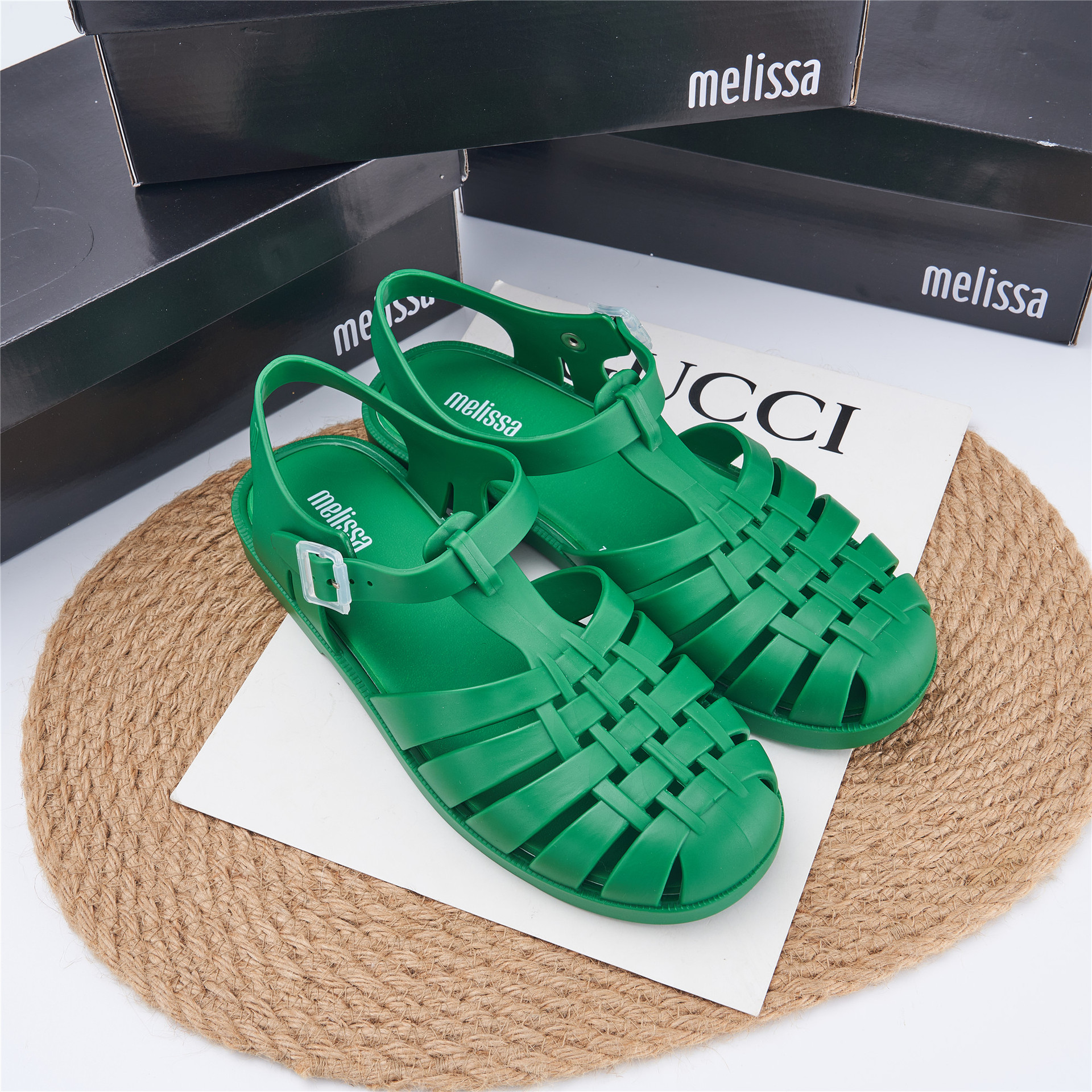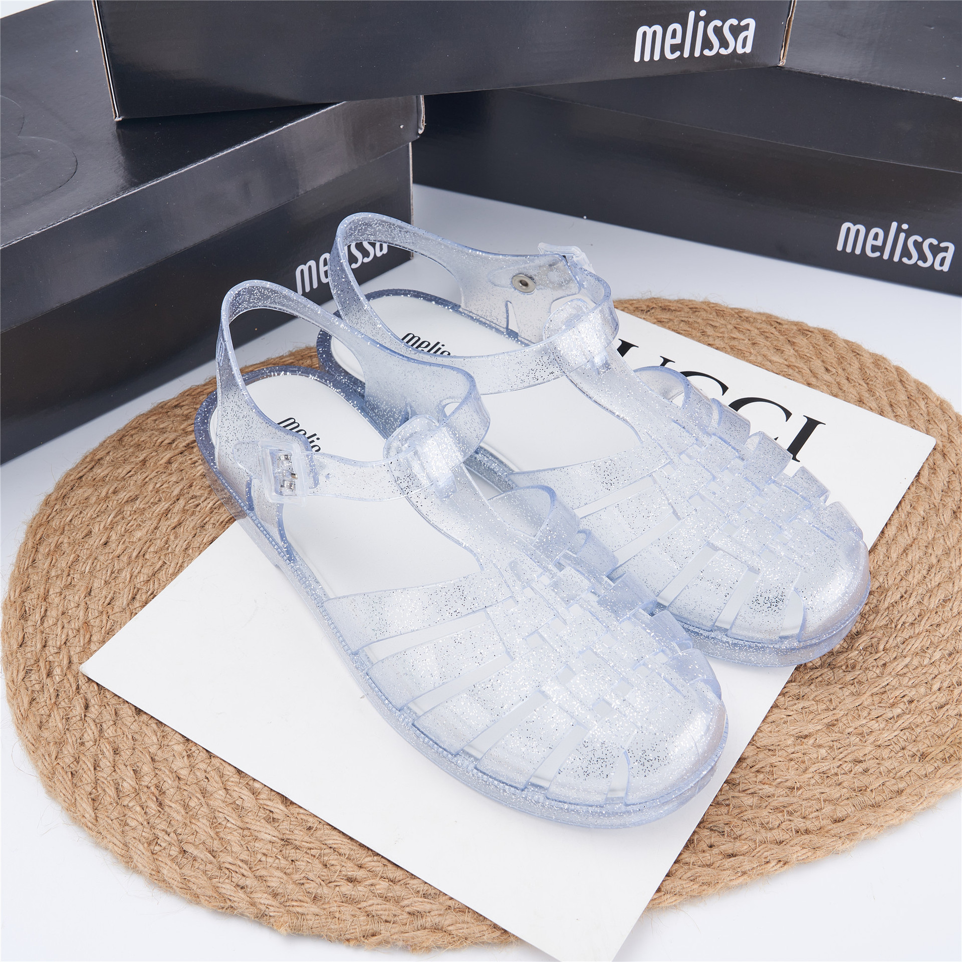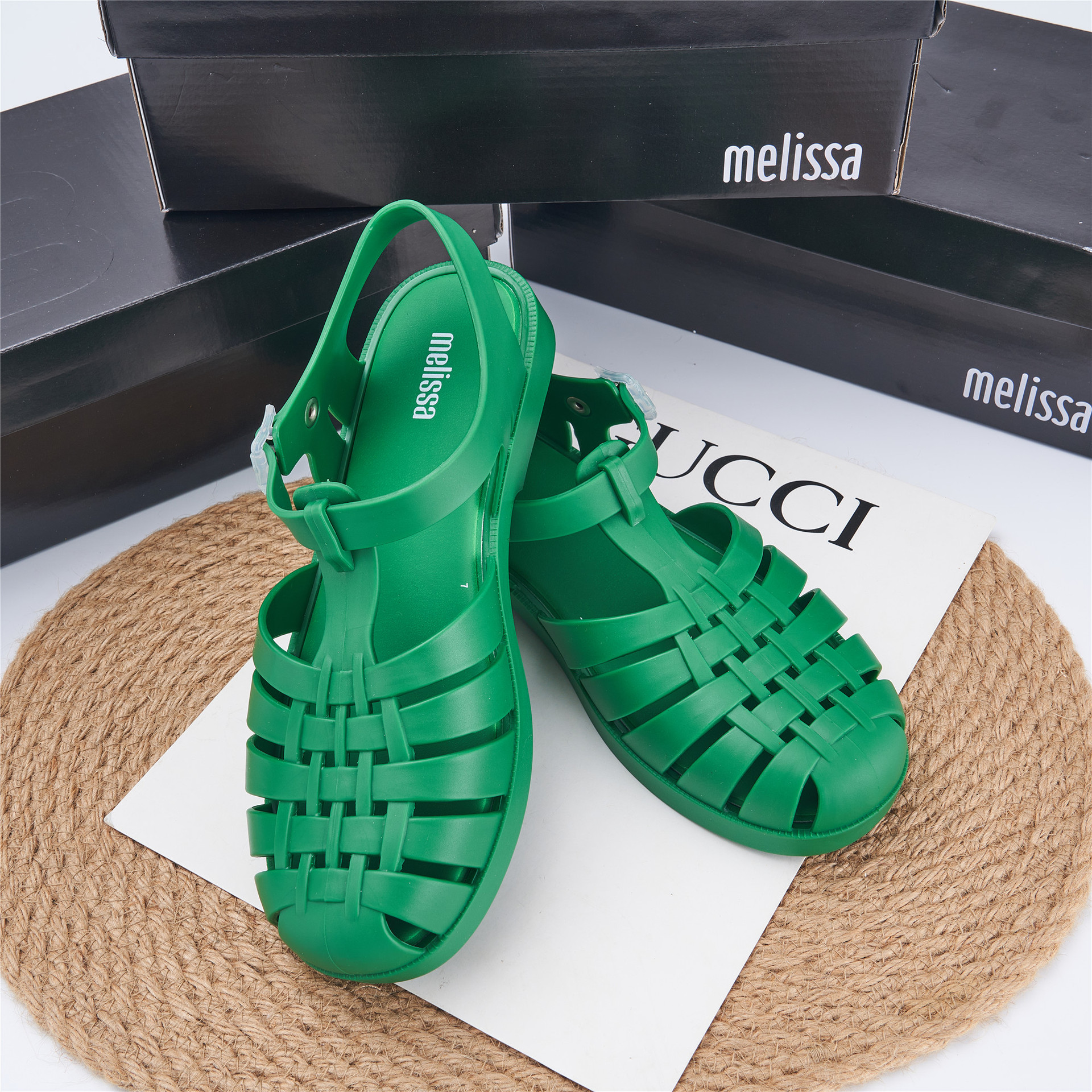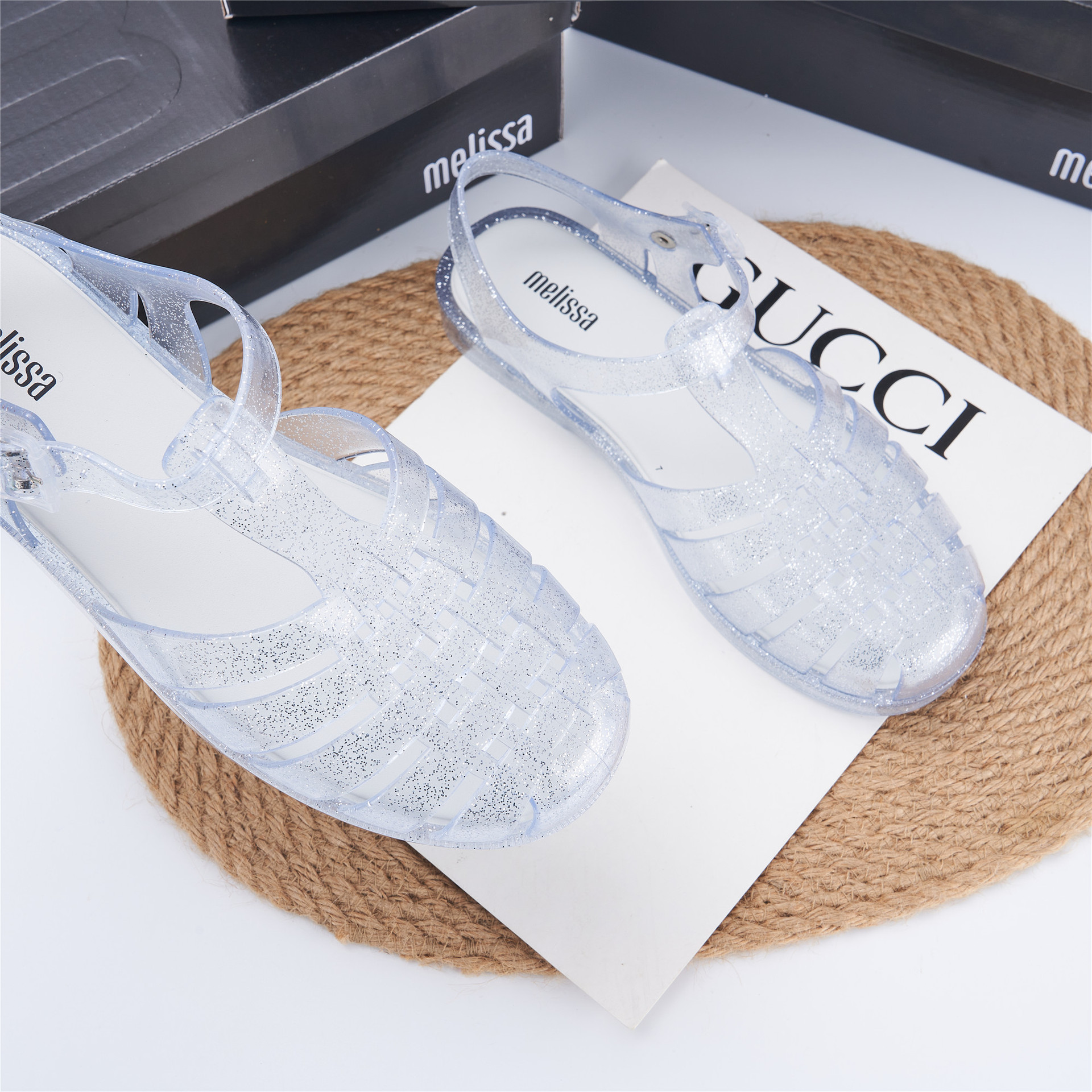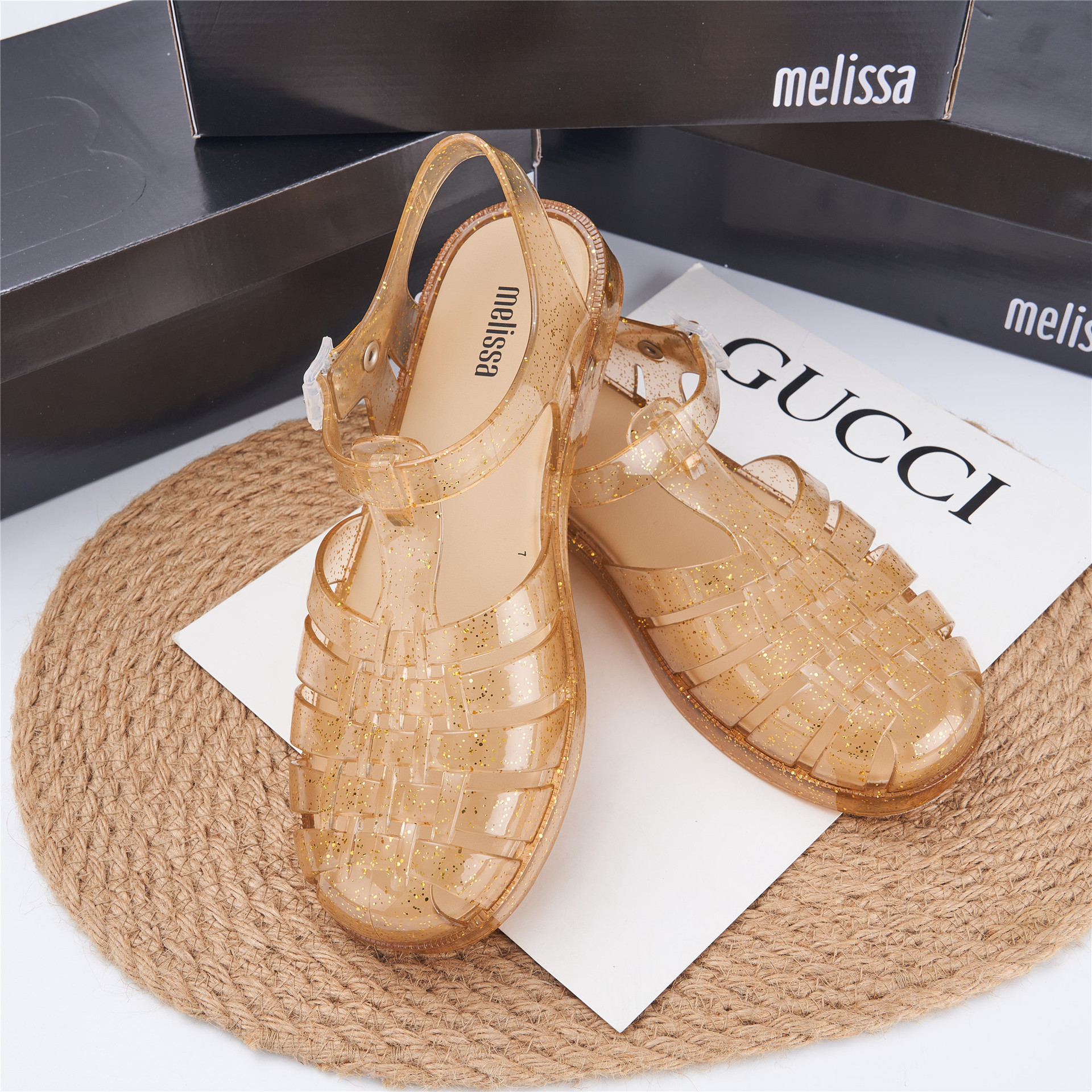 2023 Сандалии Melissa Римские плетеные сандалии с круглым носком и вырезами, женская обувь, пляжная обувь