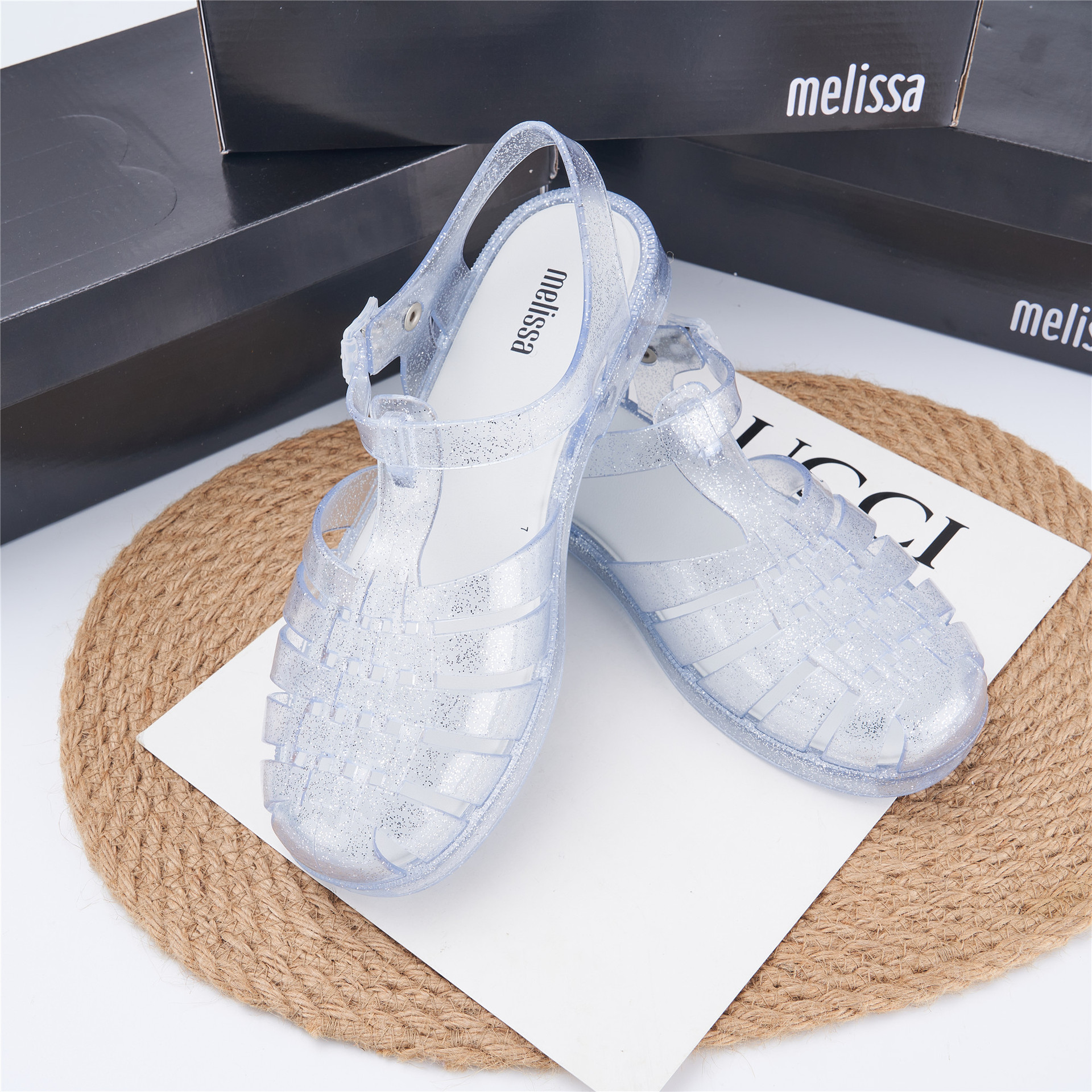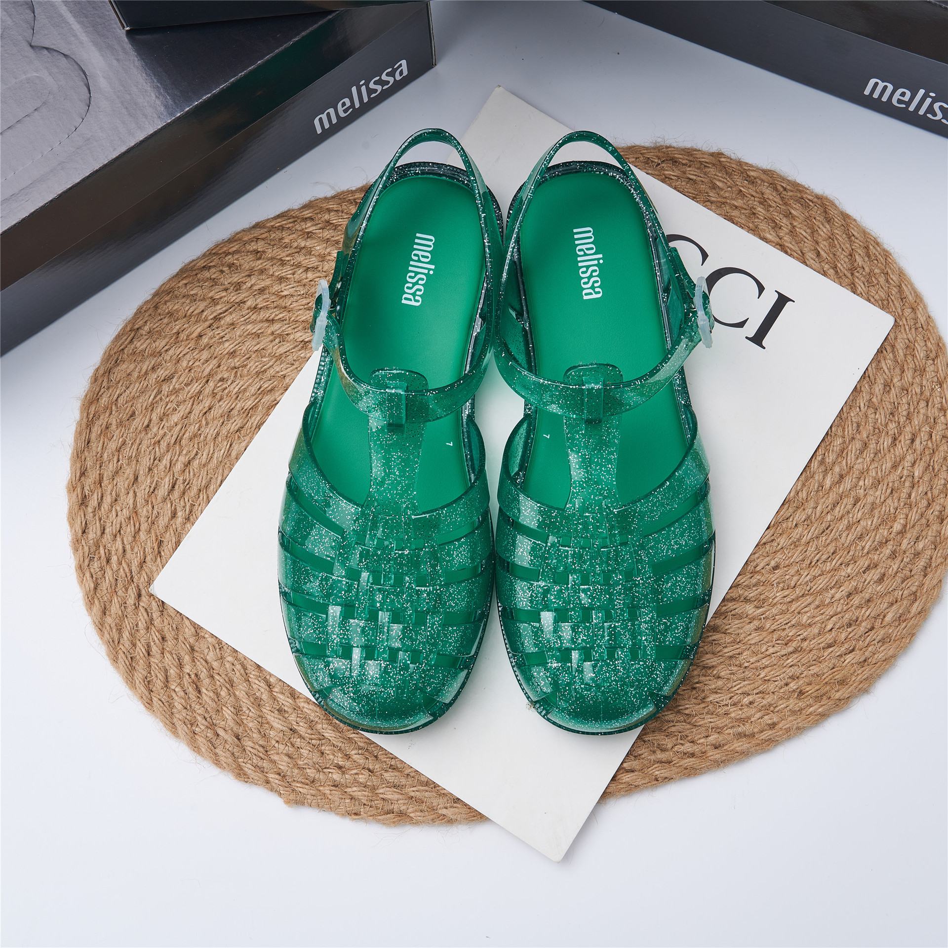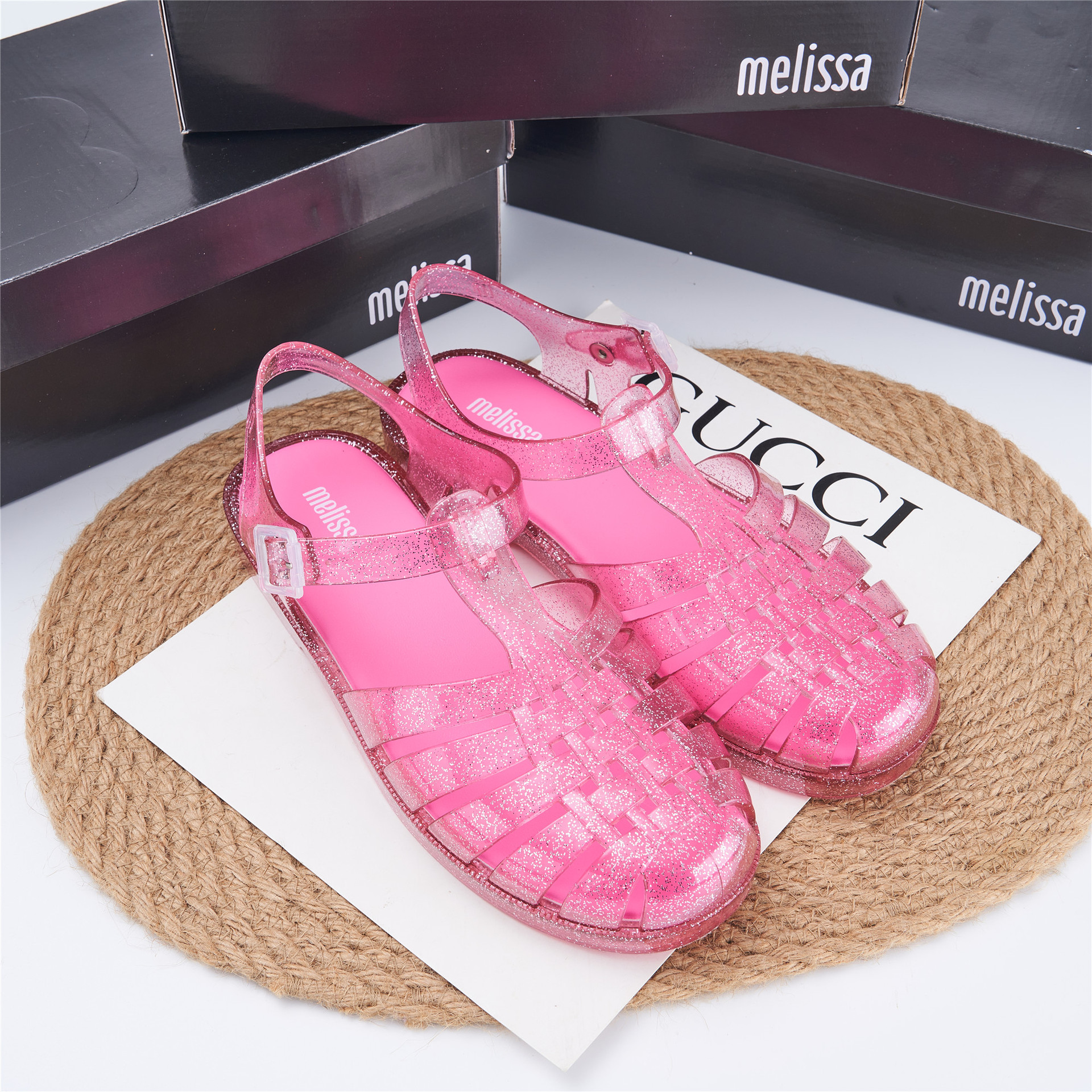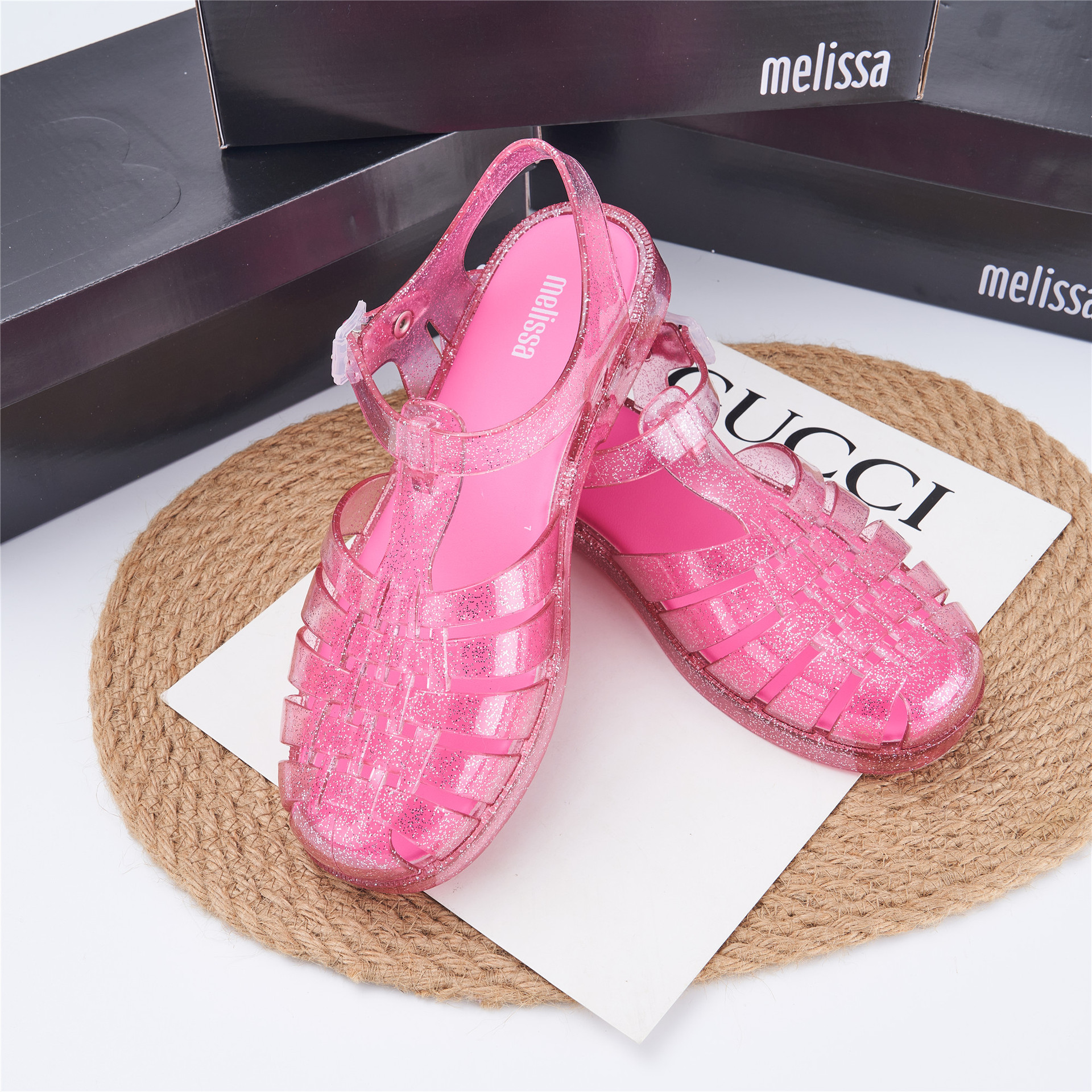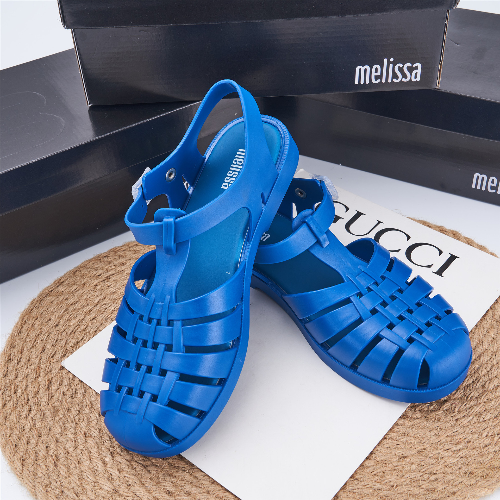 2023 Сандалии Melissa Римские плетеные сандалии с круглым носком и вырезами, женская обувь, пляжная обувь