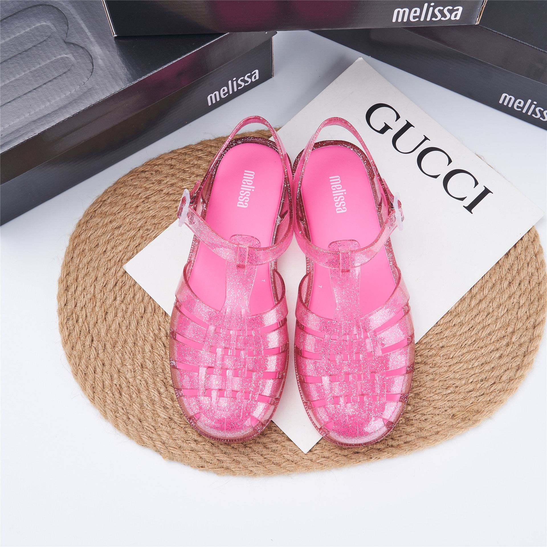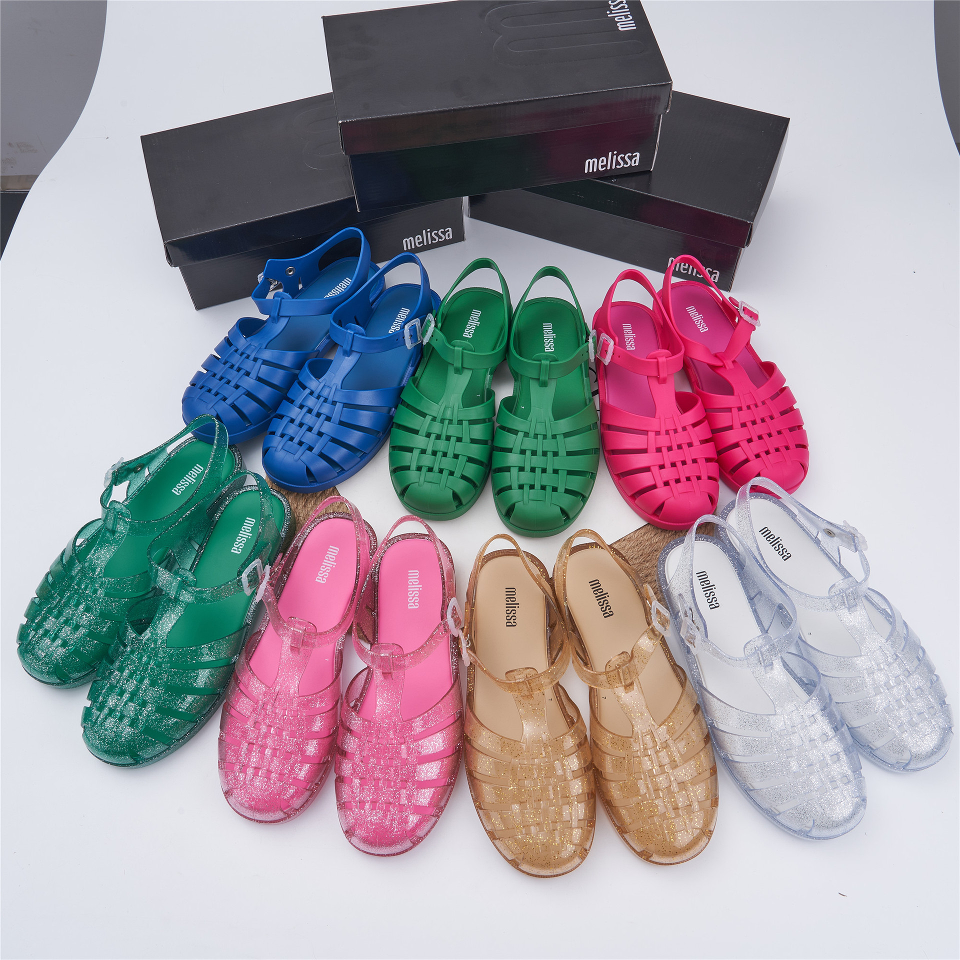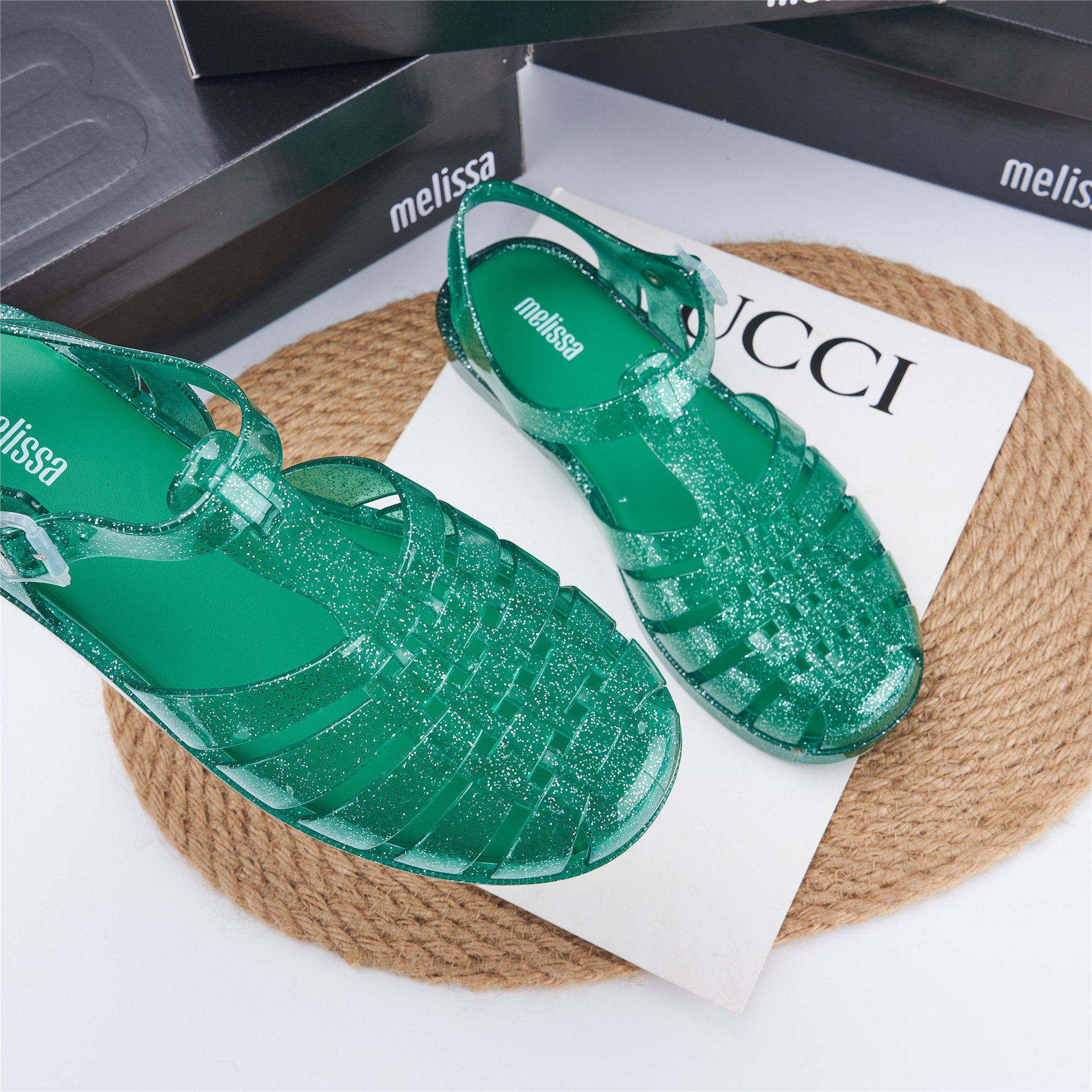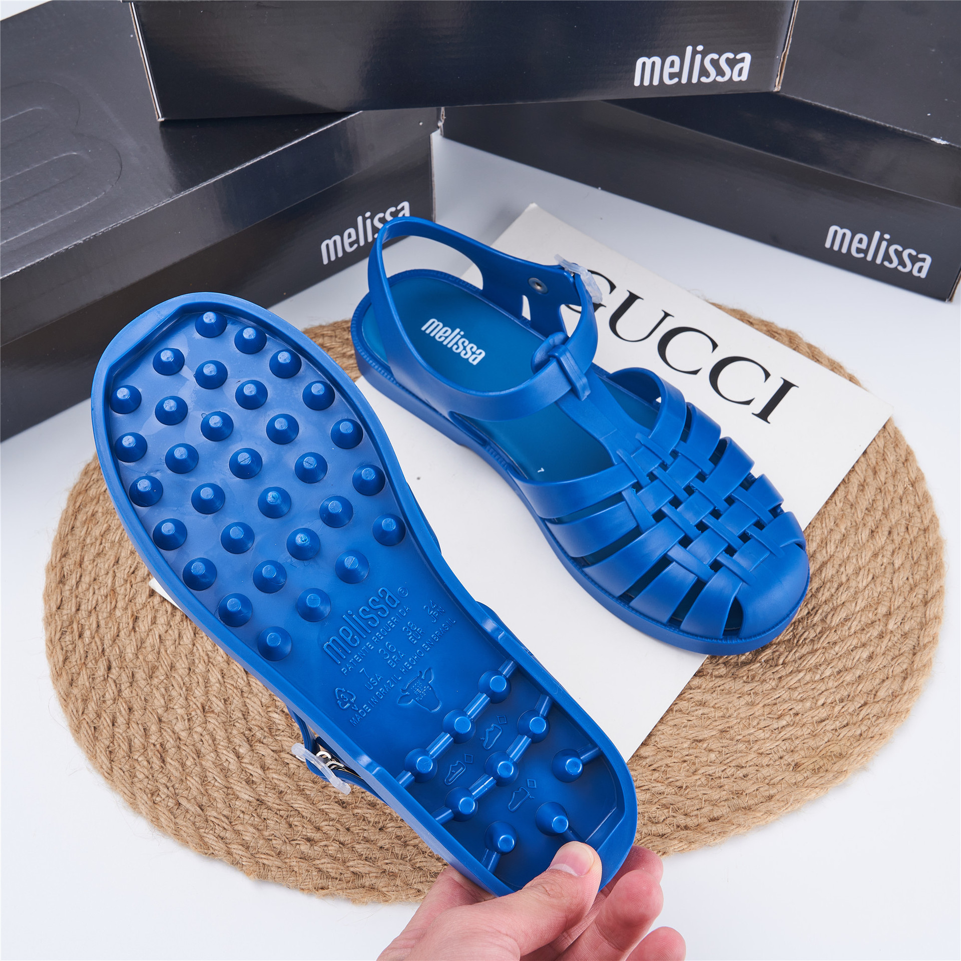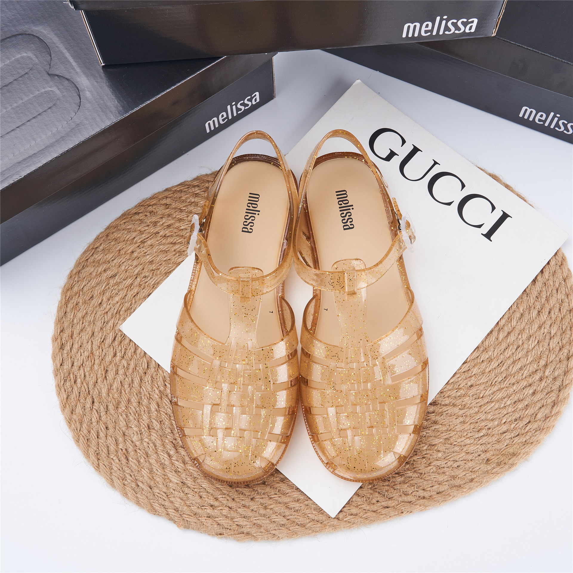 2023 Сандалии Melissa Римские плетеные сандалии с круглым носком и вырезами, женская обувь, пляжная обувь
