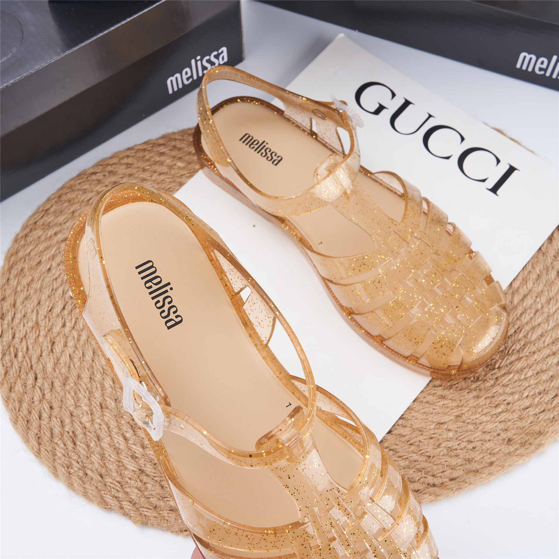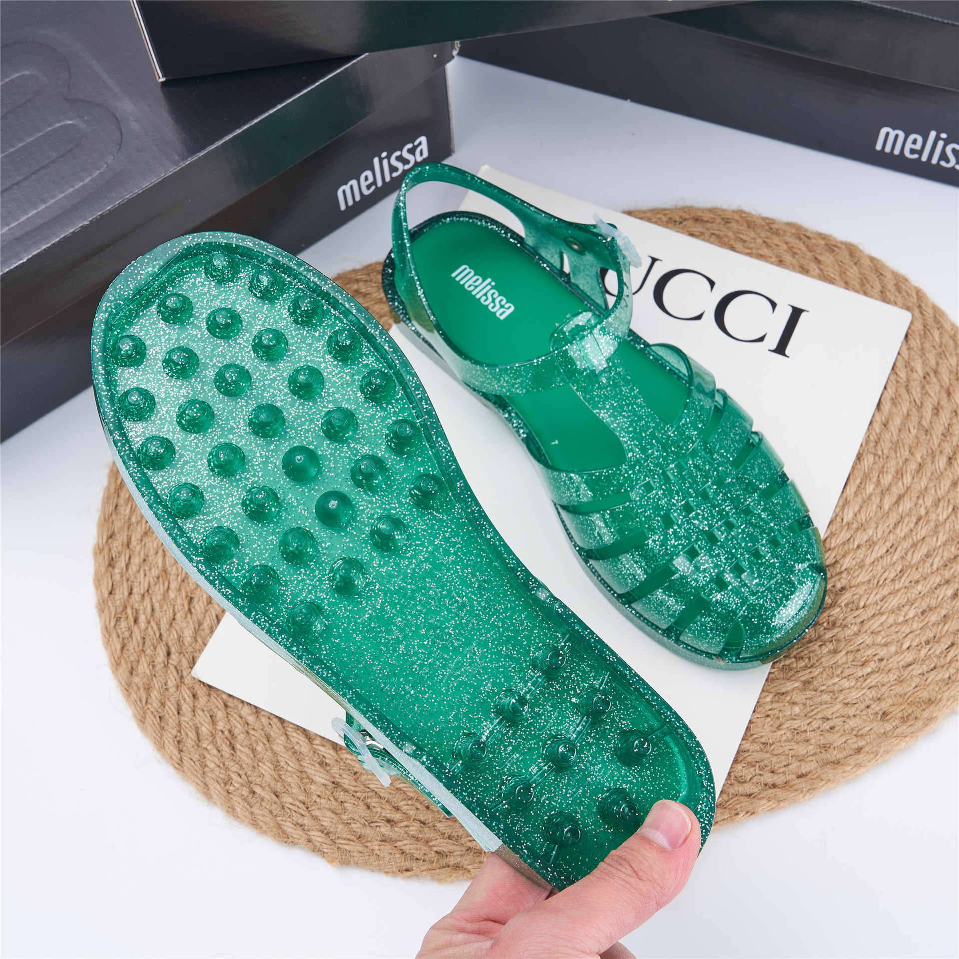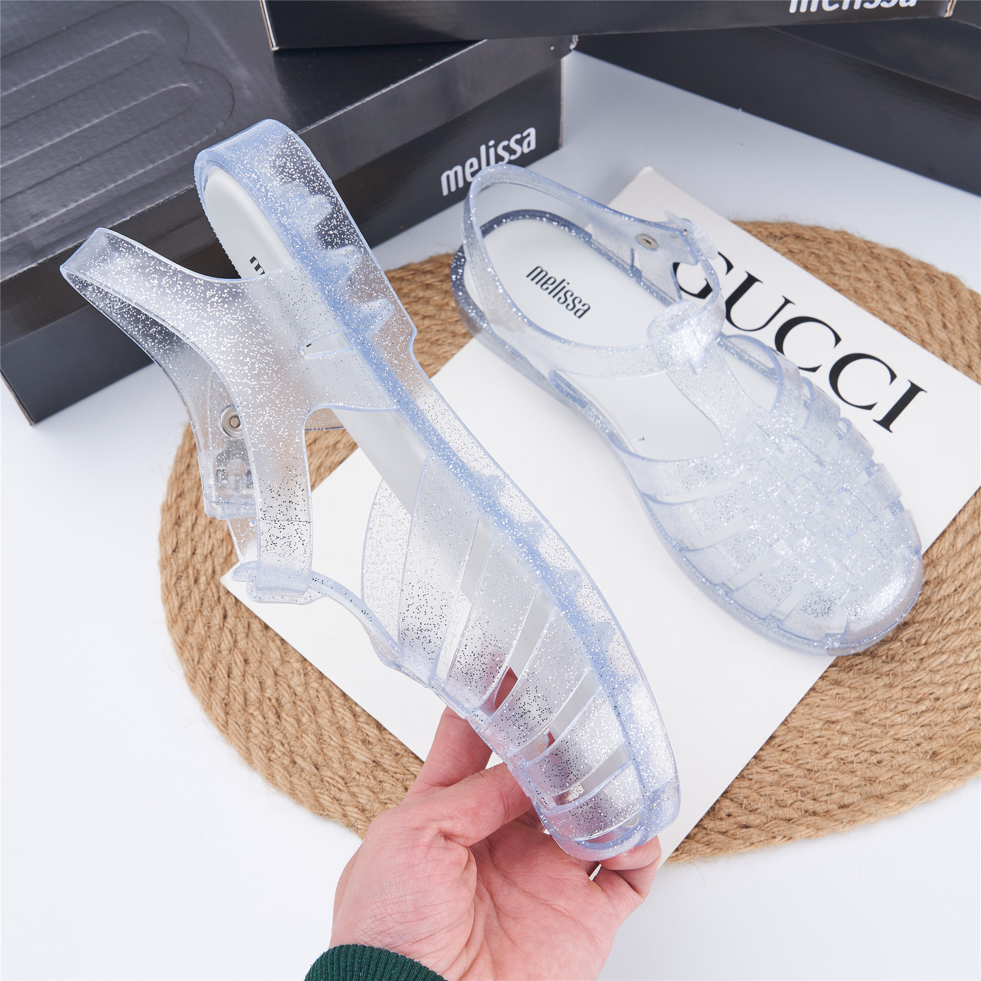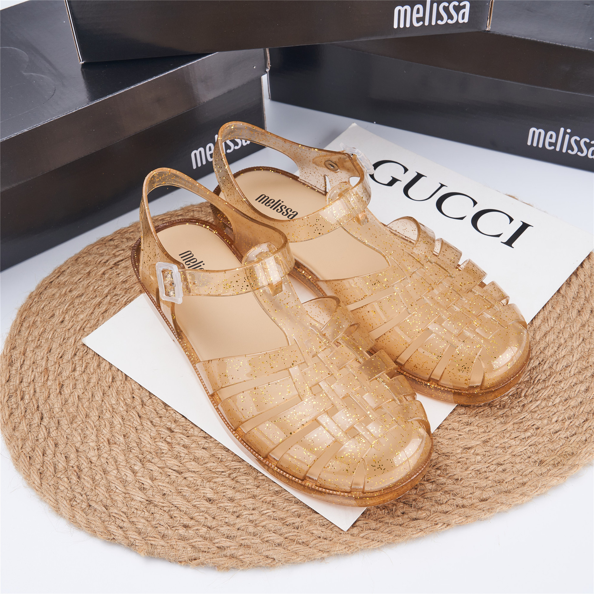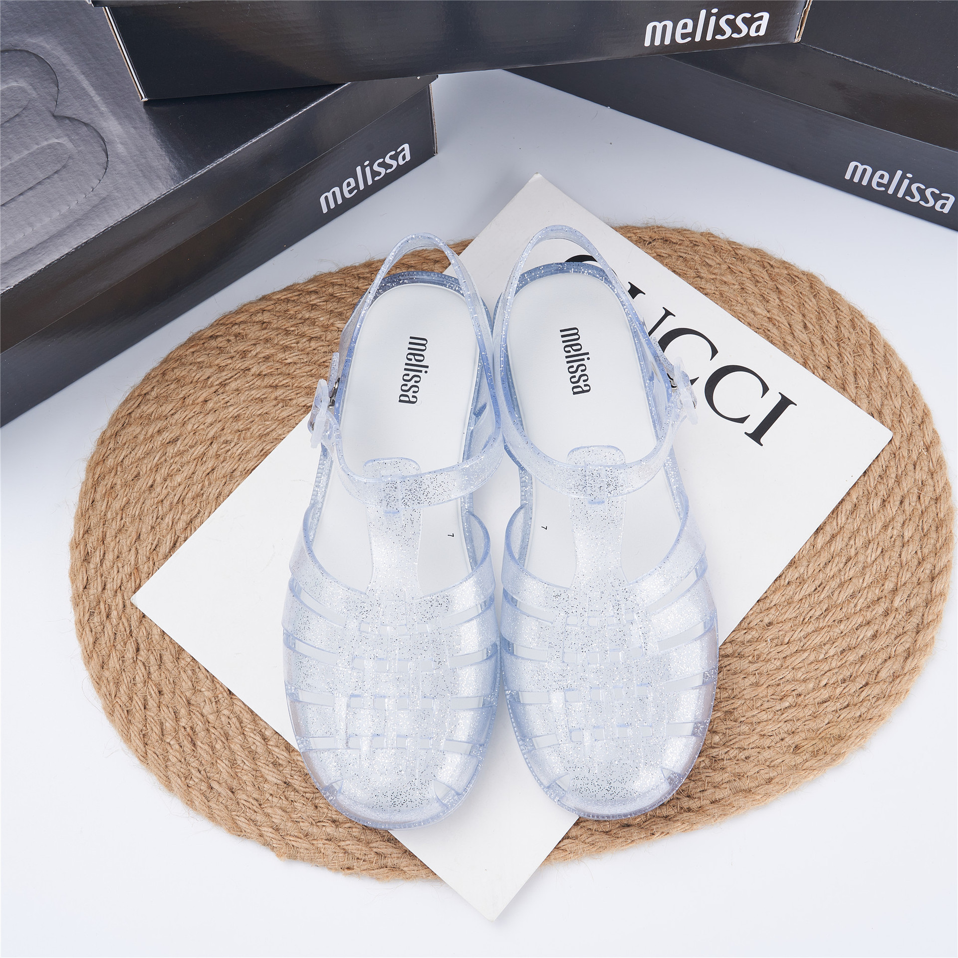 2023 Сандалии Melissa Римские плетеные сандалии с круглым носком и вырезами, женская обувь, пляжная обувь