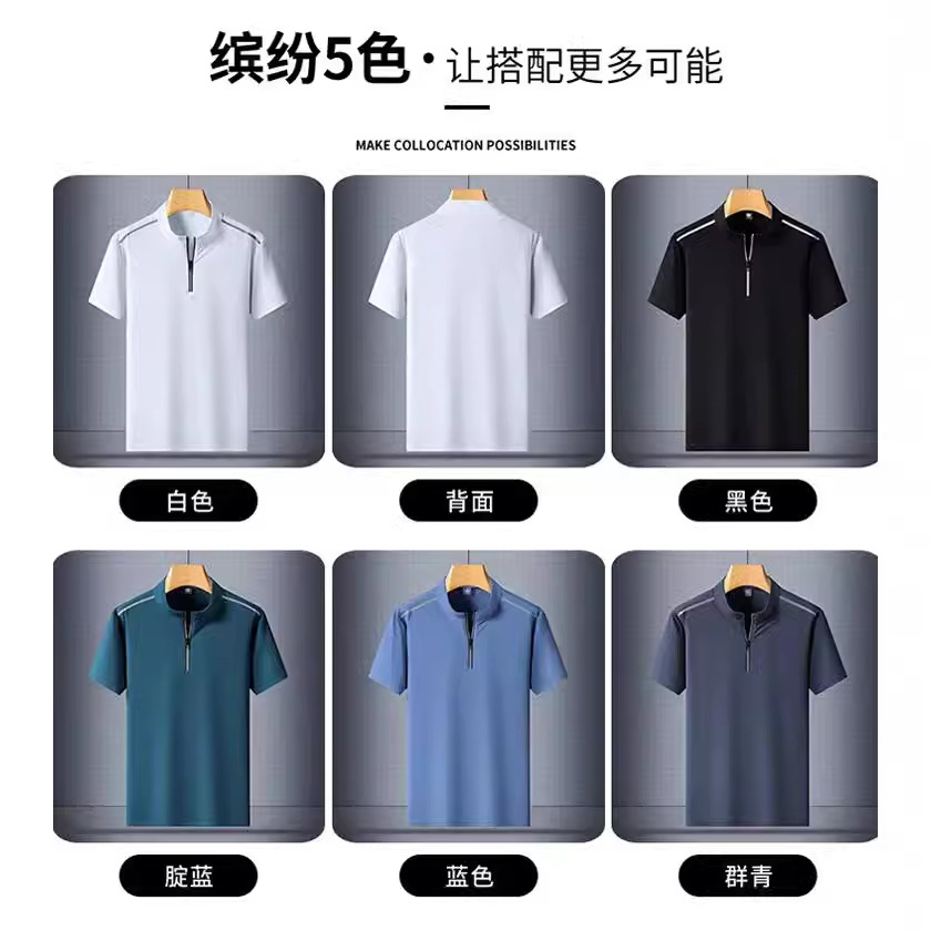 Спортивный гольф повседневная футболка с короткими рукавами для мужчин лето ледяной шелк T быстрый сухой воротник с полукругом рубашка с полукругом