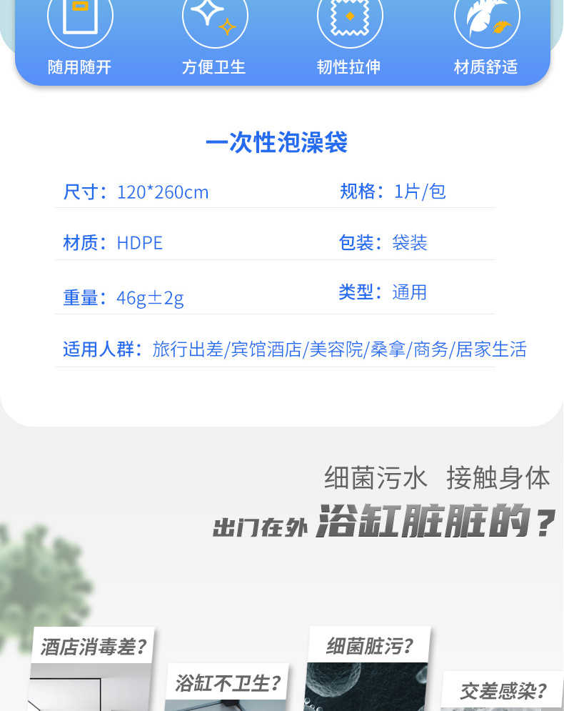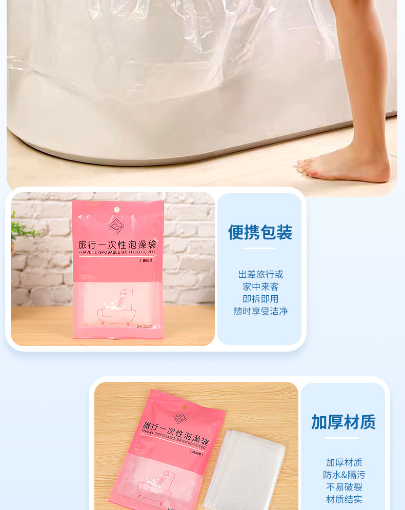 Одноразовая Сумка для ванны Гостиничная Крышка для ванны Сумка для ванны Утолщенная независимая упаковка Дорожная пластиковая фабрика в наличии