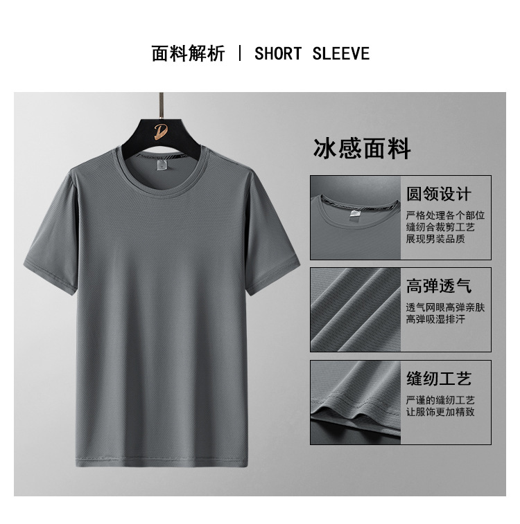 Летняя быстросохнущая футболка с короткими рукавами из ледяного шелка, Мужская свободная толстая футболка больших размеров, мужской спортивный топ с коротким рукавом, ощущение льда, футболка