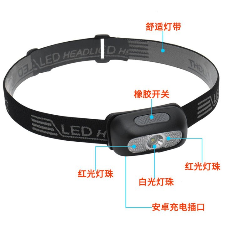 Открытый свет фары Портативный USB зарядка на голове ночной бег специальное освещение водонепроницаемый красный свет лампы производителей оптом