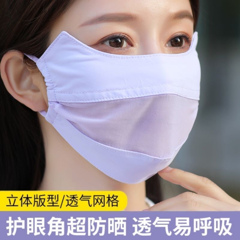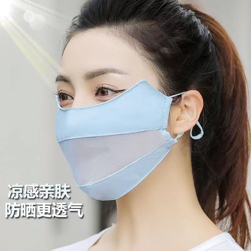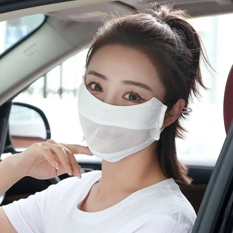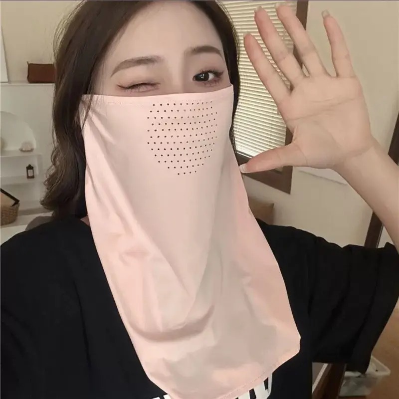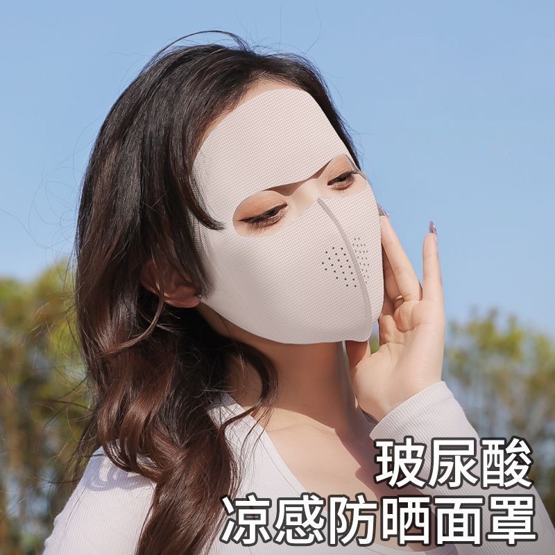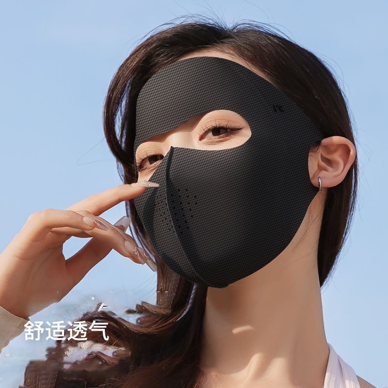 Солнцезащитная маска для женщин, покрывающая лицо с защитой от ультрафиолета, на весну и лето, тонкая открытая дышащая маска для глаз из ледяного шелка