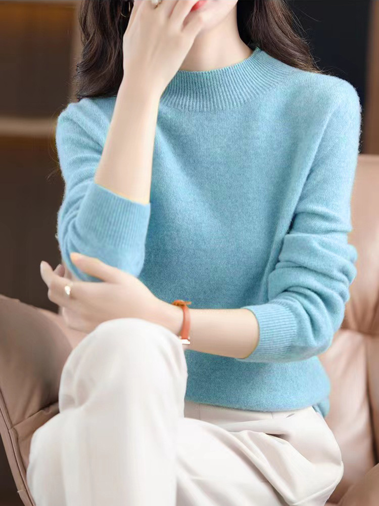 Ранний осенний свитер женский 100 чистый шерстяной свитер кожа ощущение полувысокого воротника тонкий тонкий тонкий, дикий нижний свитер