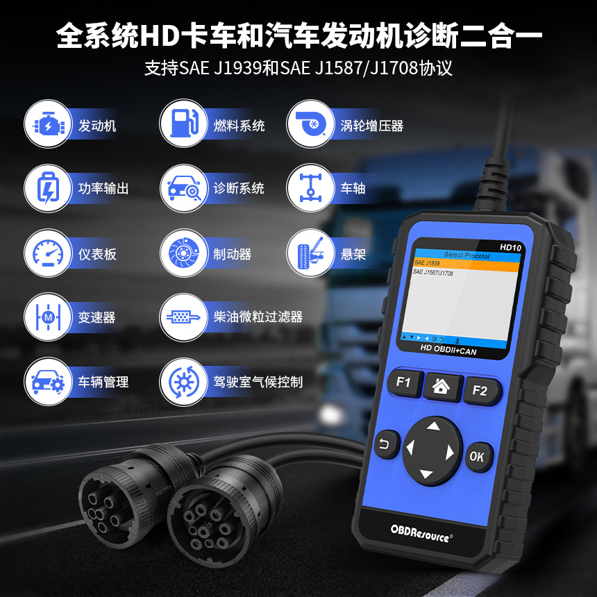 Диагностический сканер OBDResource HD10 для дизельных и бензиновых двигателей, интегрированный считыватель кодов, инструмент для диагностики тяжелых грузовиков, умный детектор OBD HD